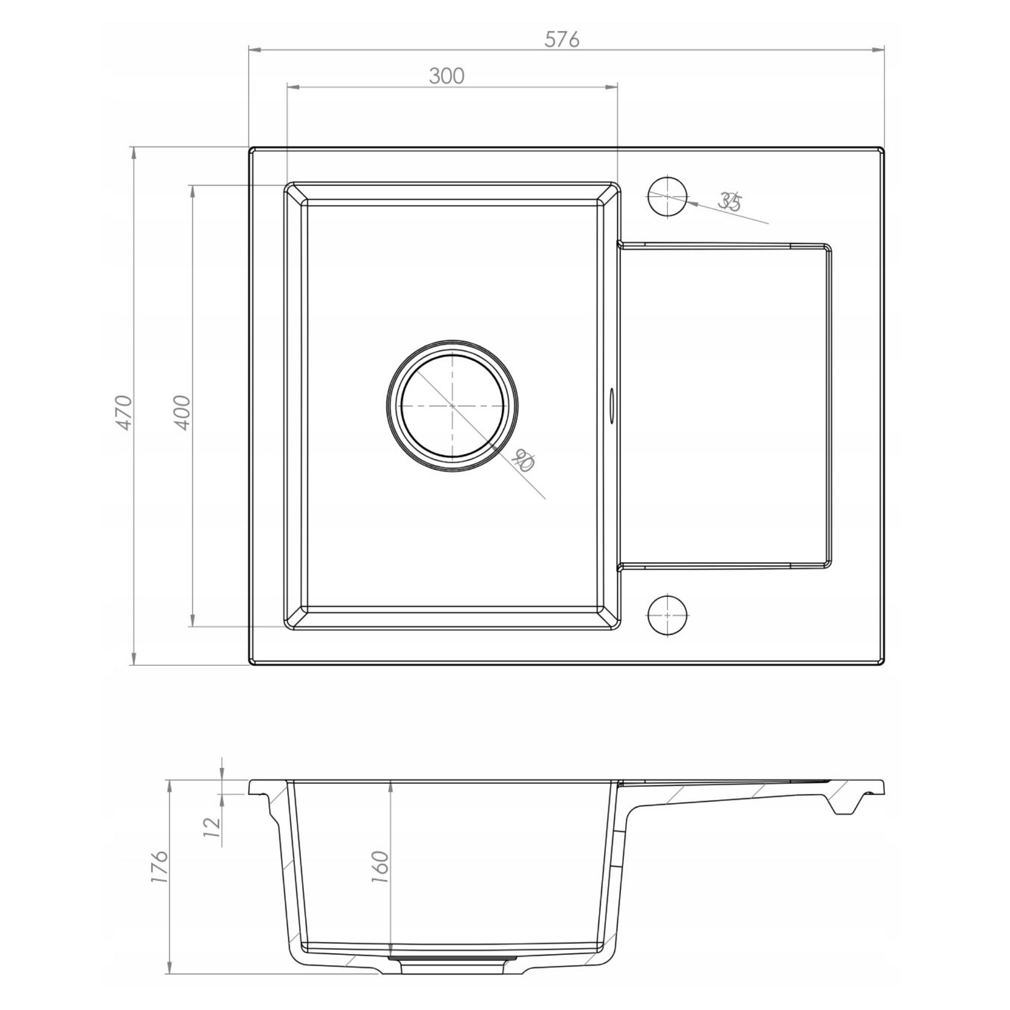 | Materiał zlewu | 80% kruszywo granitowe, 20% żywica |