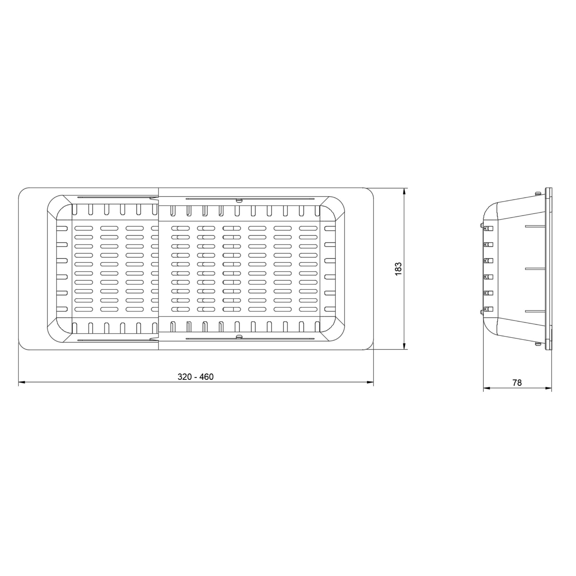 Doskonale sprawdza się podczas płukania warzyw i owoców zapewniając wygodę i higienę użytkowania. Jej uniwersalny design pasuje do większości zlewozmywaków, czyniąc ją praktycznym dodatkiem do codziennych obowiązków. Wkładka posiada regulowaną szerokość od 32 do 46 cm.