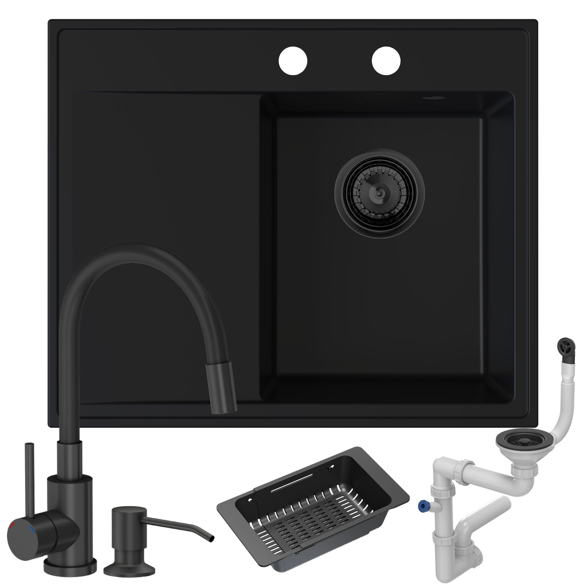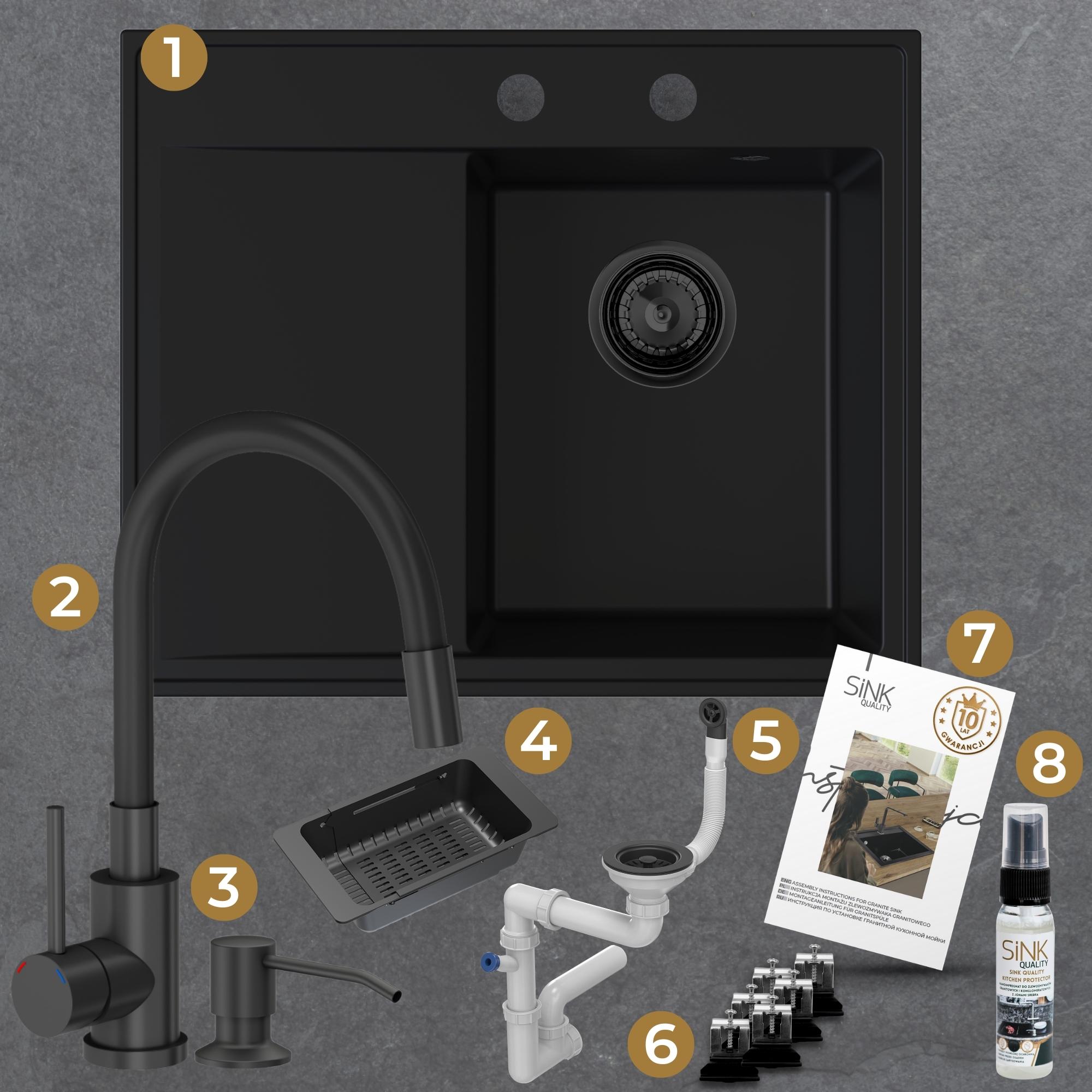 Zestaw | Czarny zlew Stilo 1KKO z czarną baterią Megan