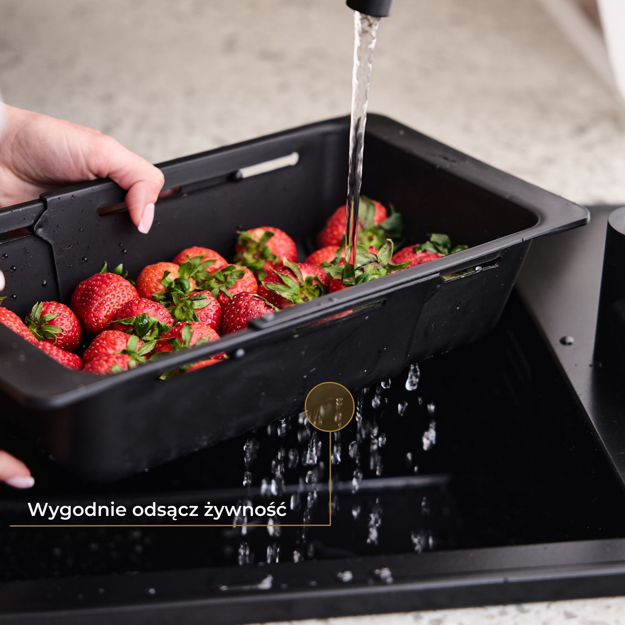 - Dodatkowa przestrzeń robocza dzięki ociekaczowi idealnemu do suszenia naczyń lub odkładania produktów podczas gotowania