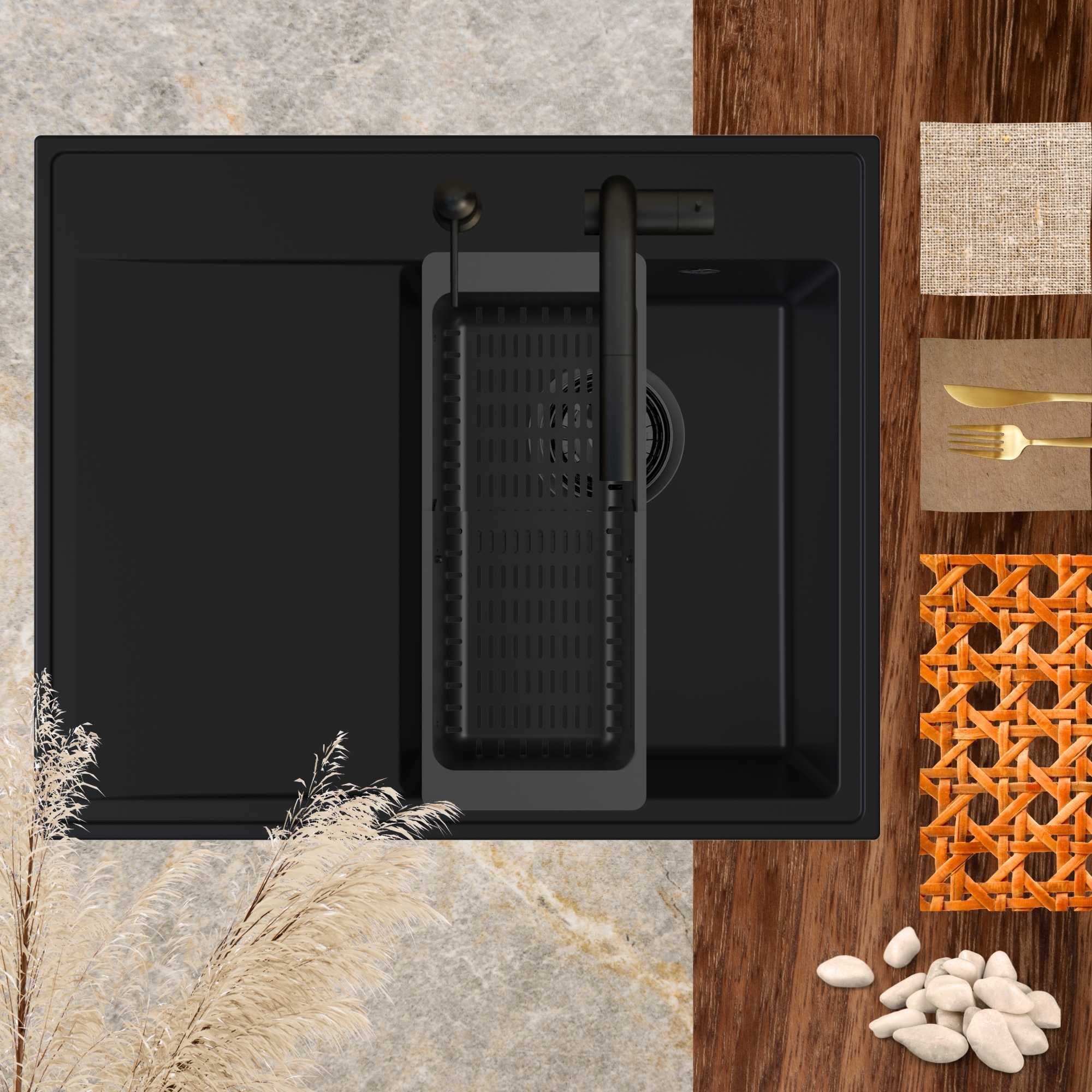- Zlewozmywak granitowy STILO 1KKO w czarnym kolorze