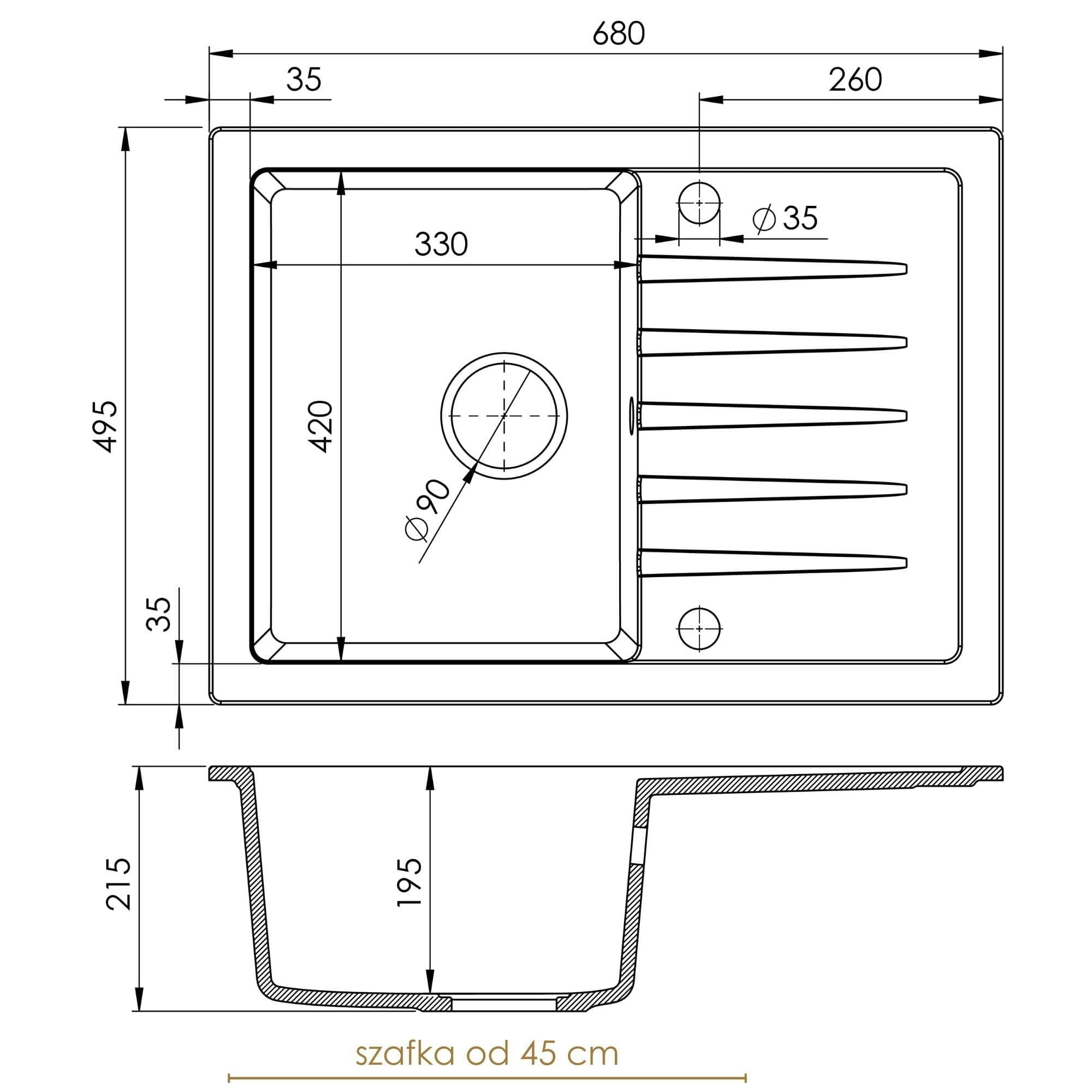 - Otrzymaj gratisy: impregnat do zlewu, który minimalizuje powstawanie zacieków i wkładka regulowana przedłużająca blat roboczy.