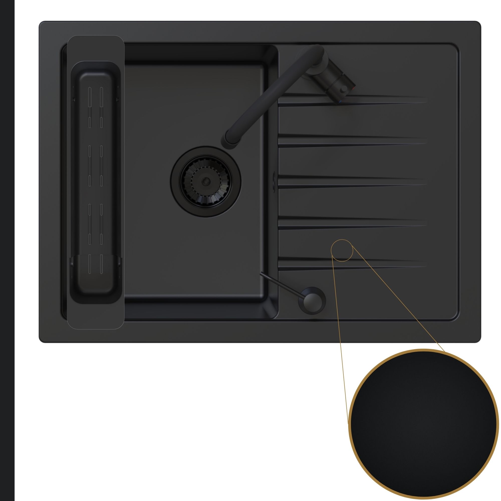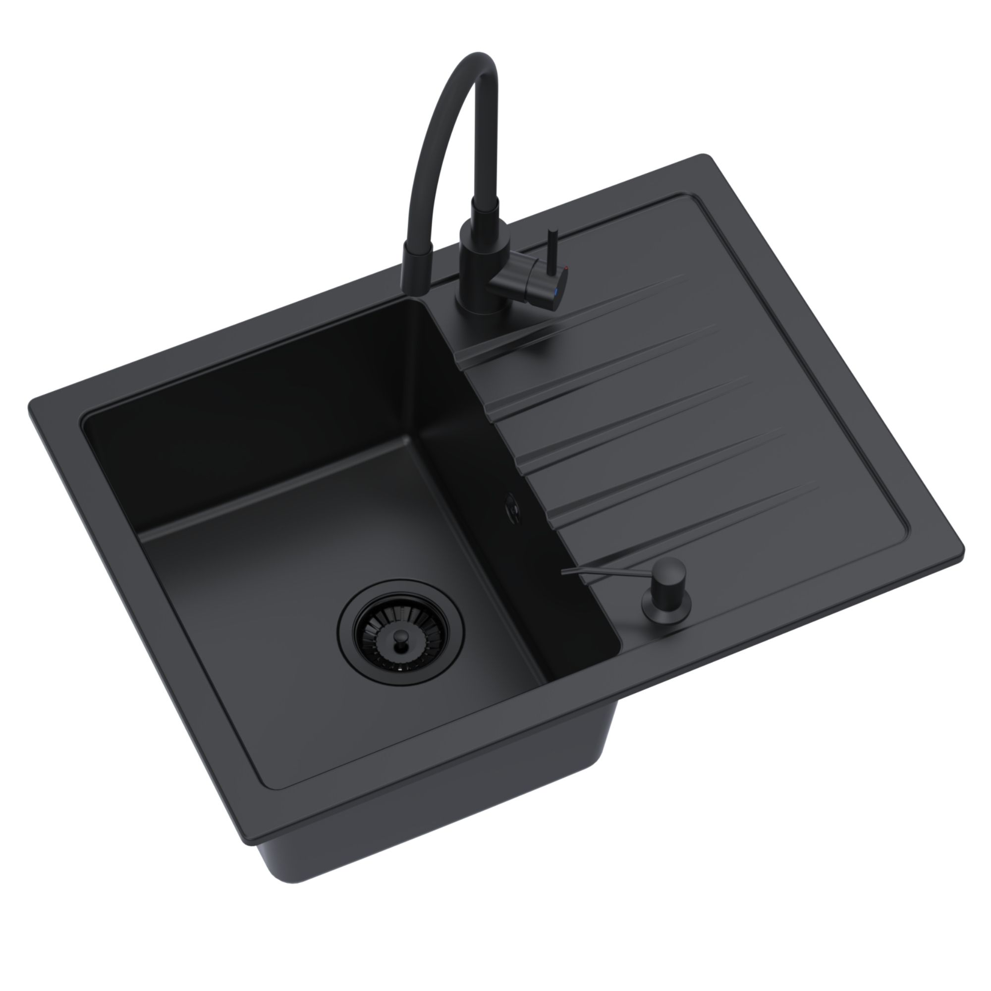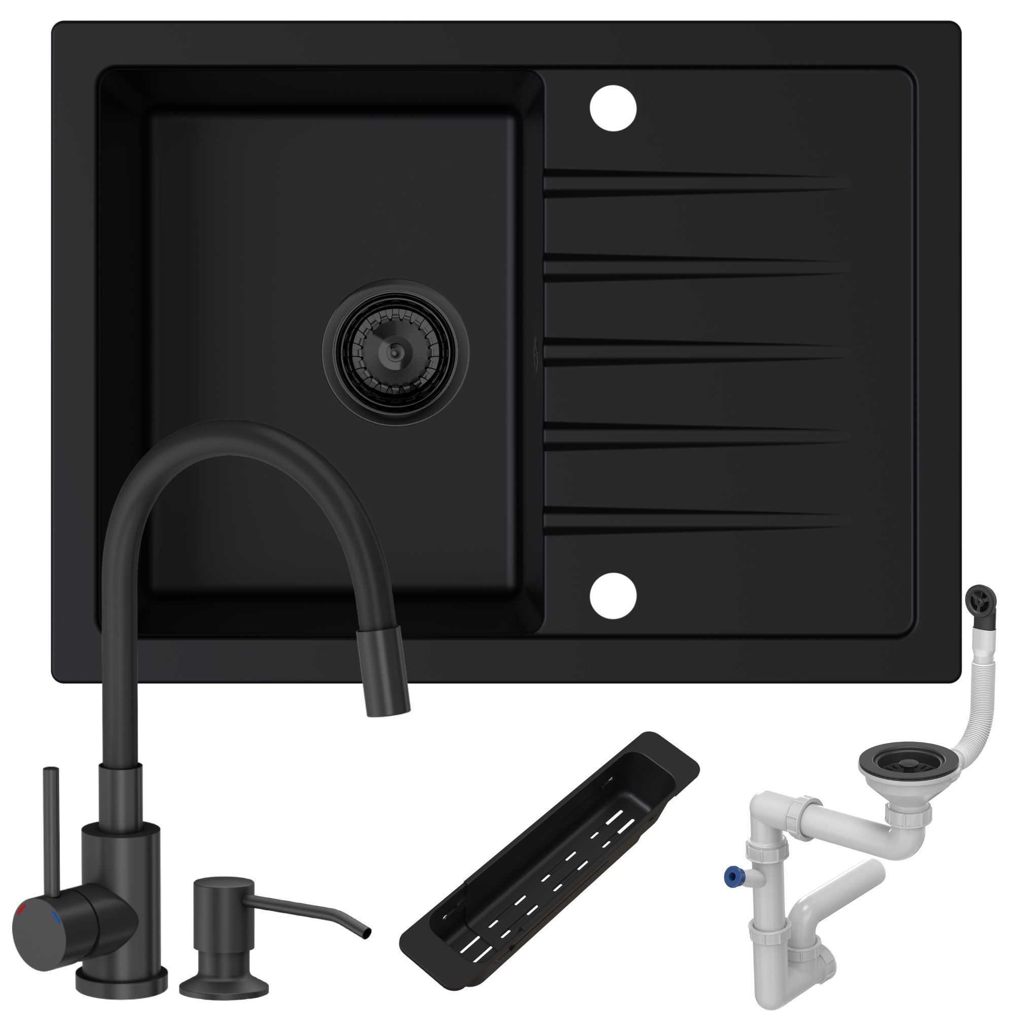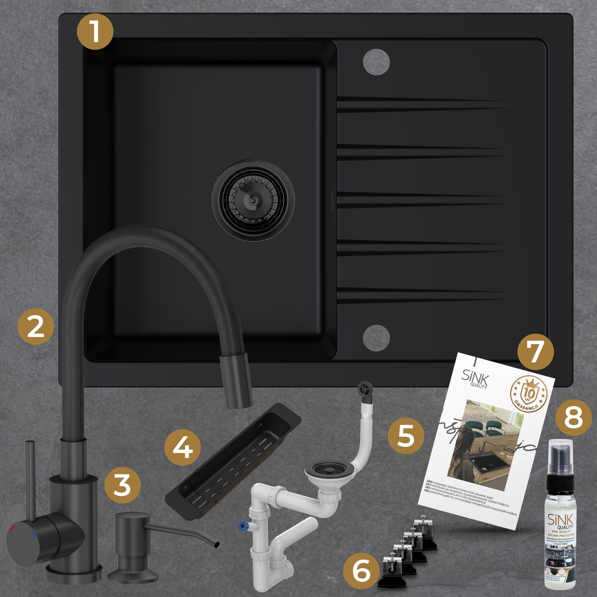 Zestaw | Czarny zlew Titanite 1KKO z czarną baterią Megan