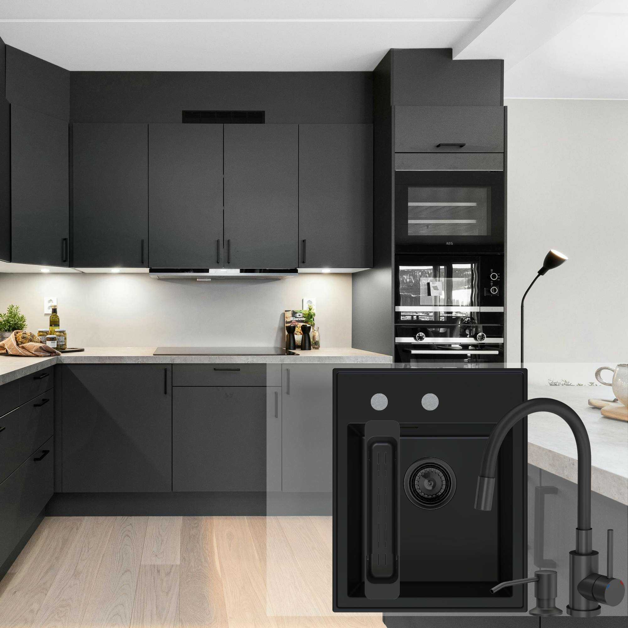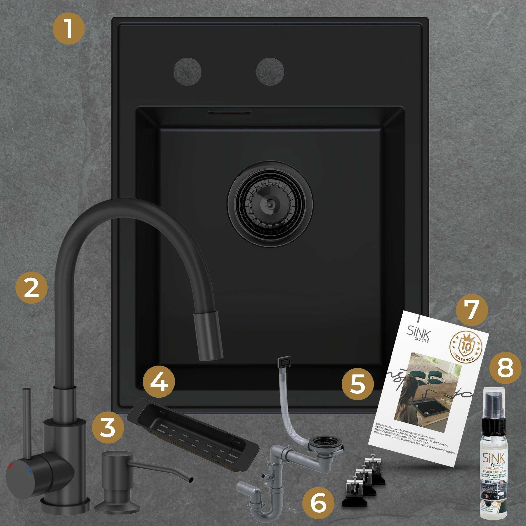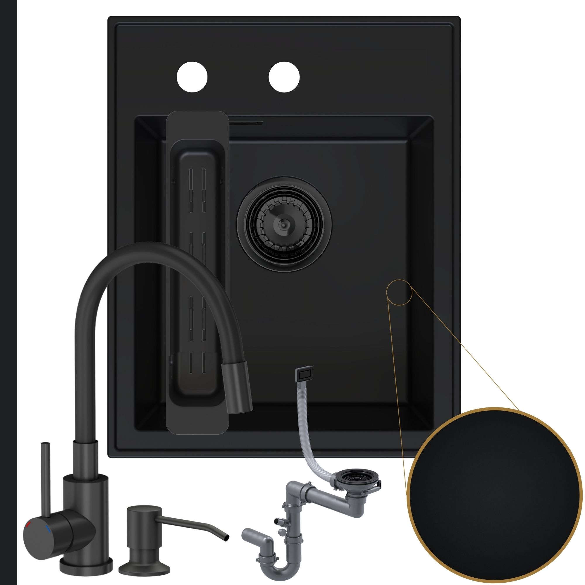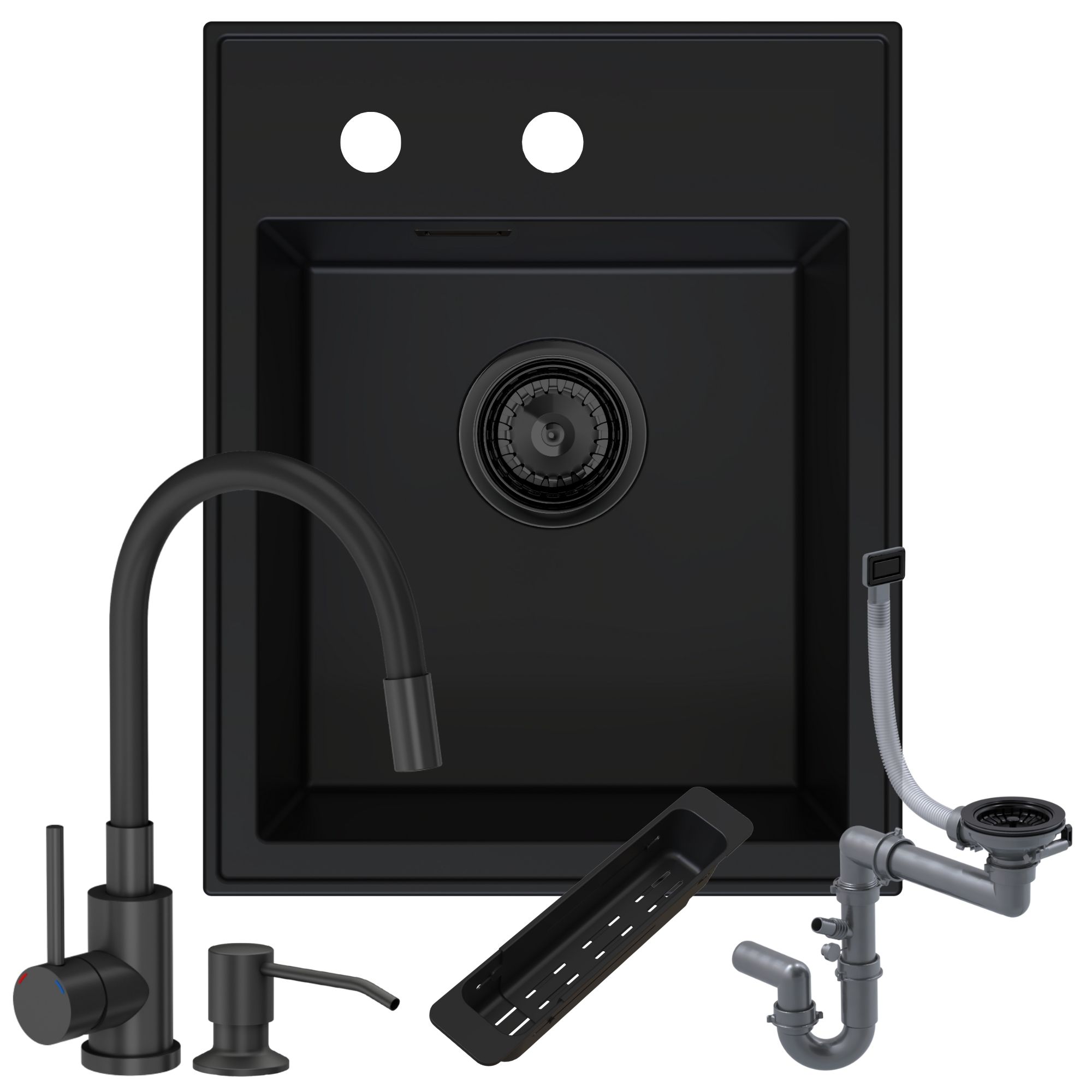 Zestaw | Czarny zlew Velto 1KBO z czarną baterią Megan