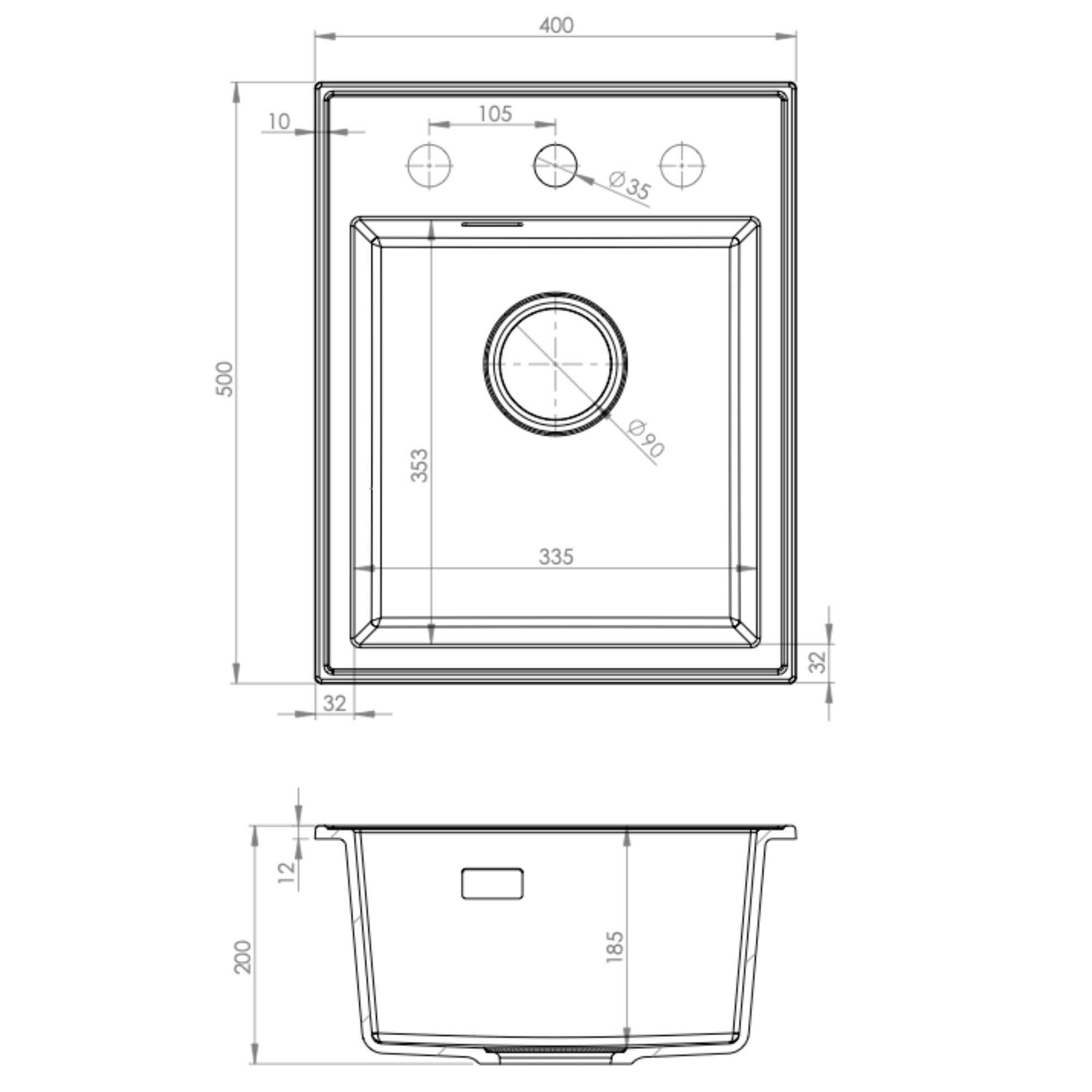 - Zlewozmywak granitowy VELTO 1KBO w czarnym kolorze