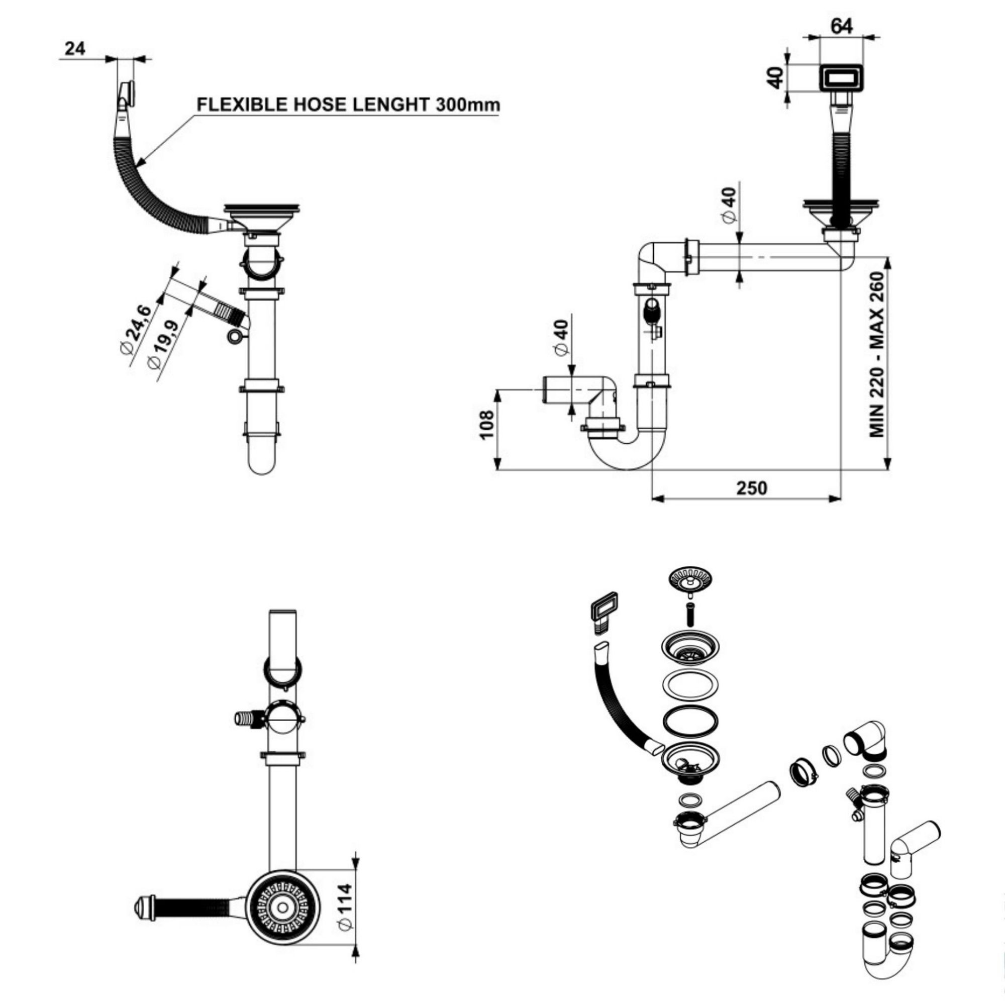 Zestaw z Velto 1KBO: syfon + bateria + dozownik + wkładka ociekowa