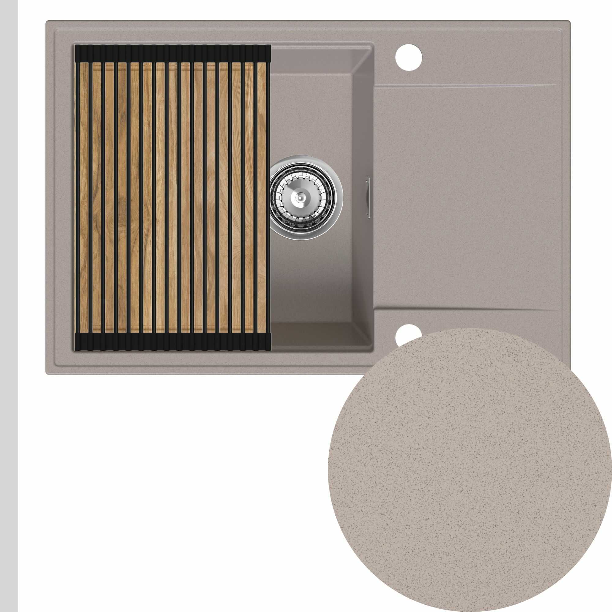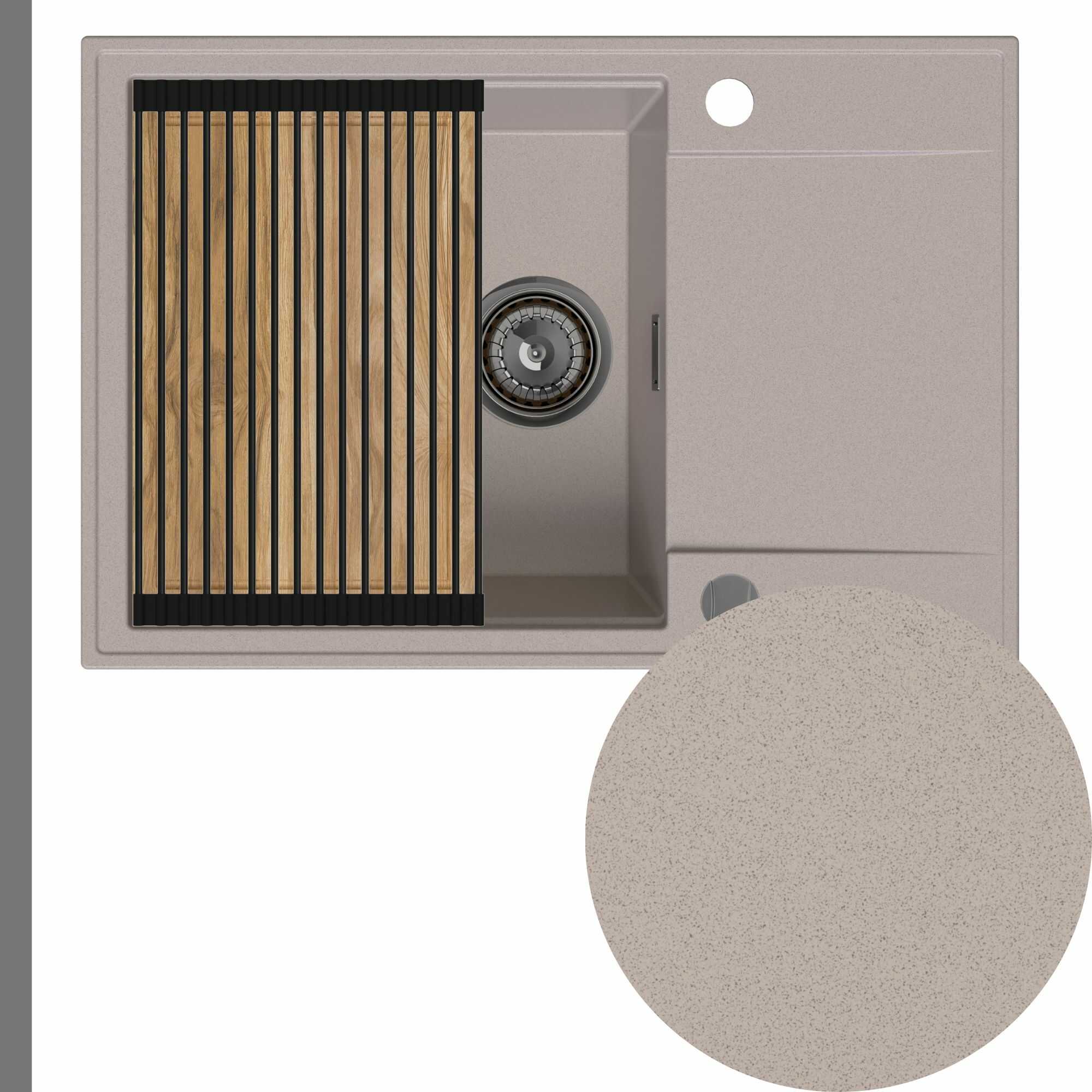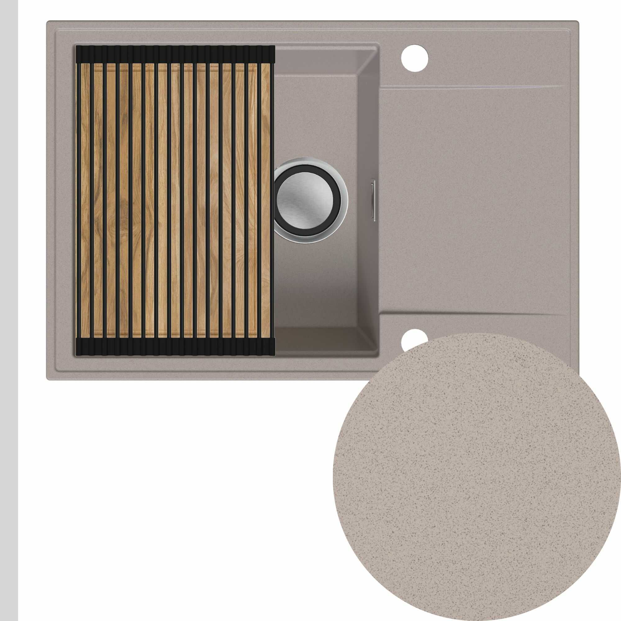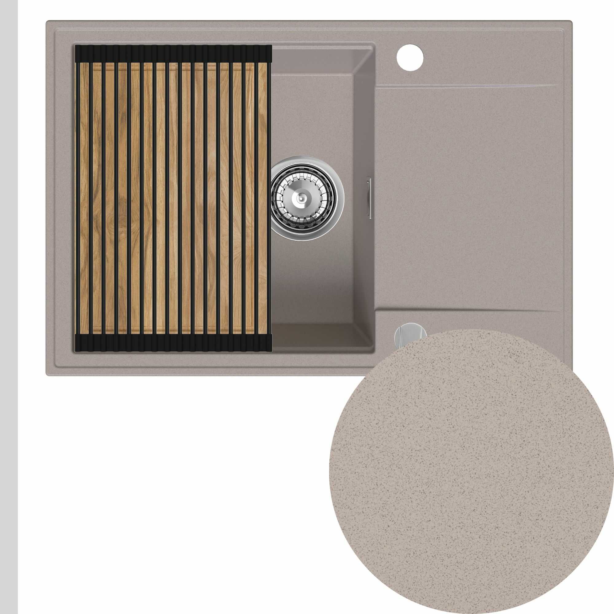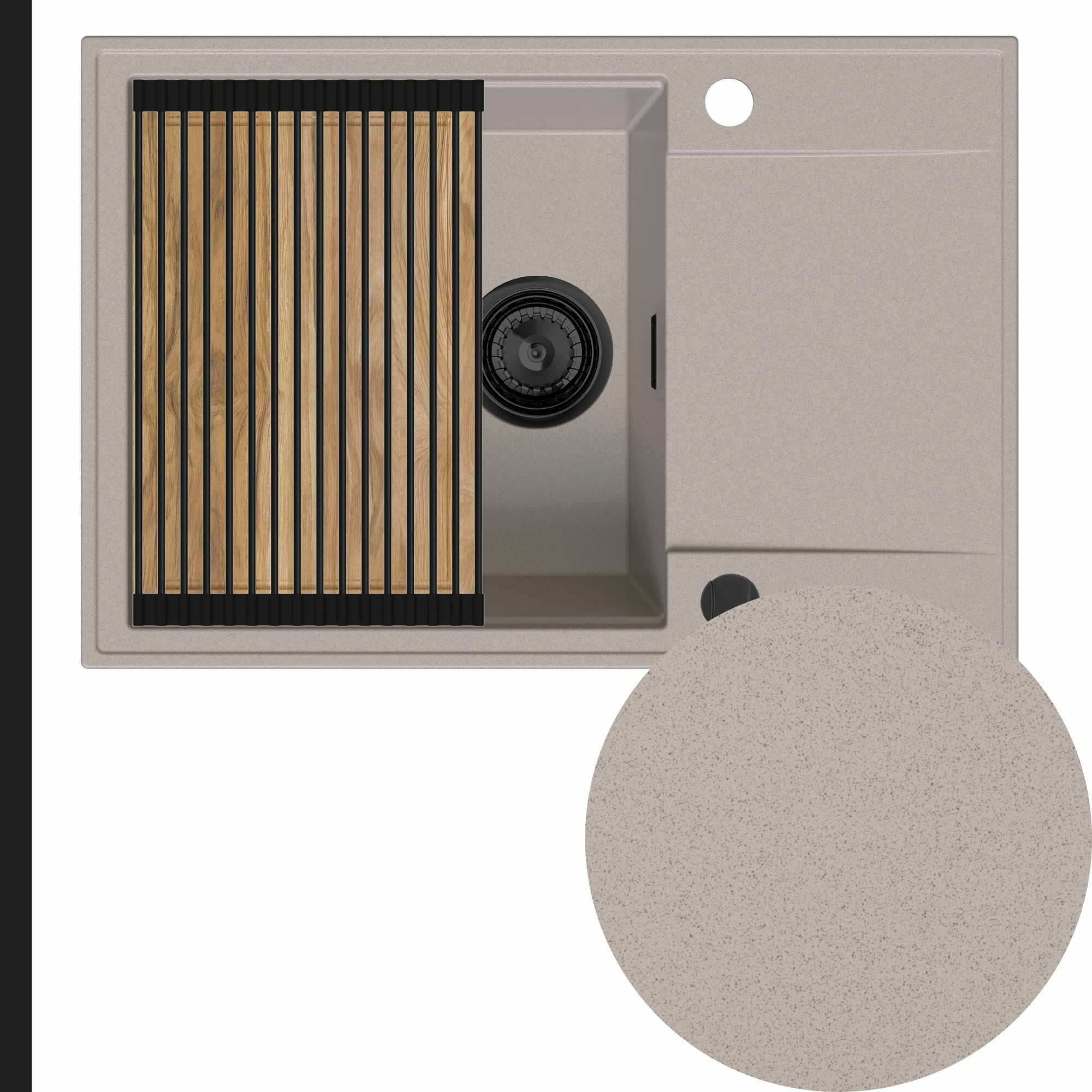 Zlewozmywak granitowy SINK 55 1KDO + syfon + deska + rollmata
