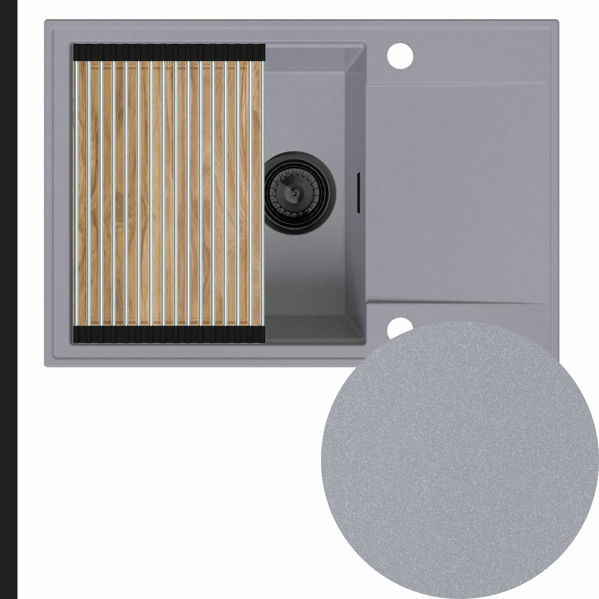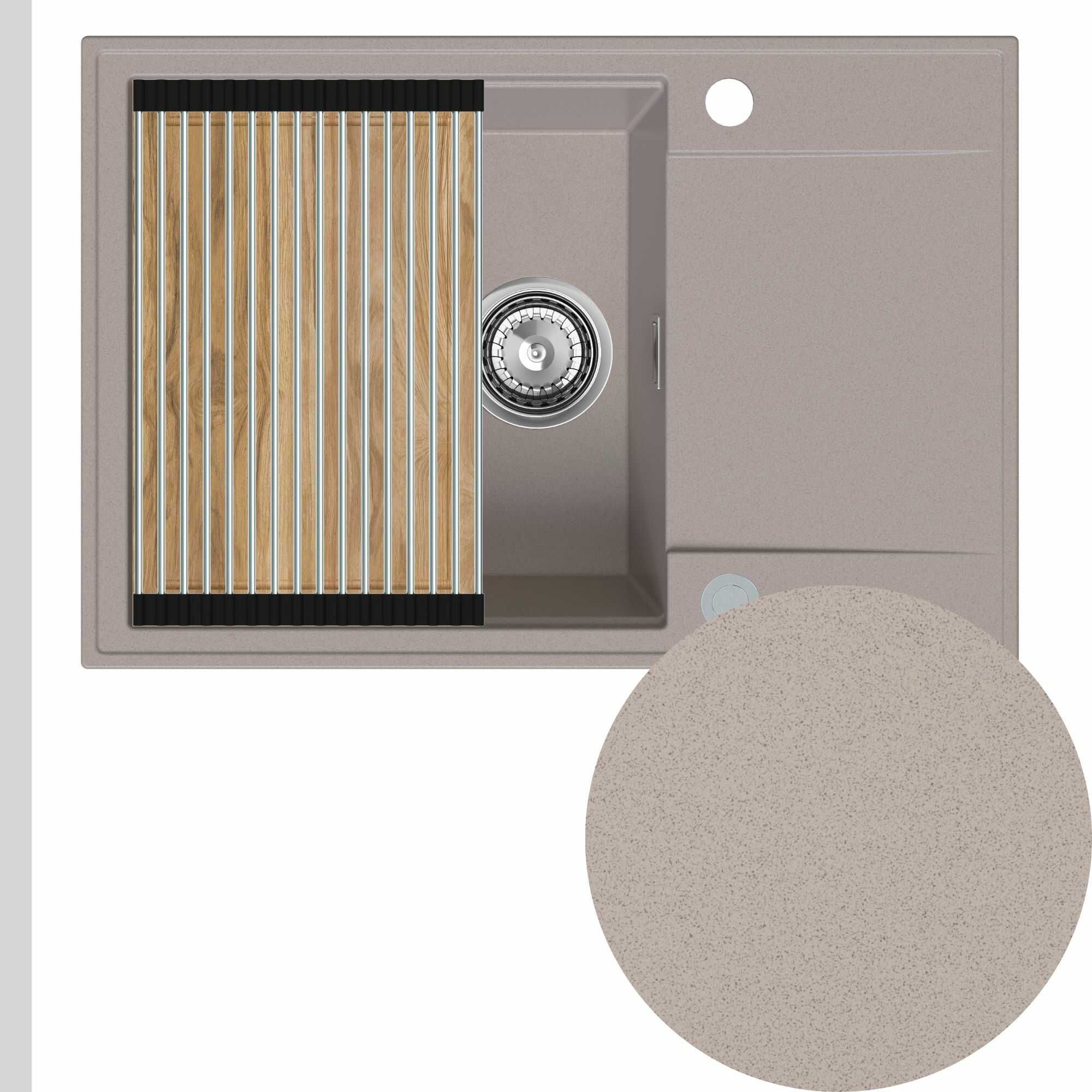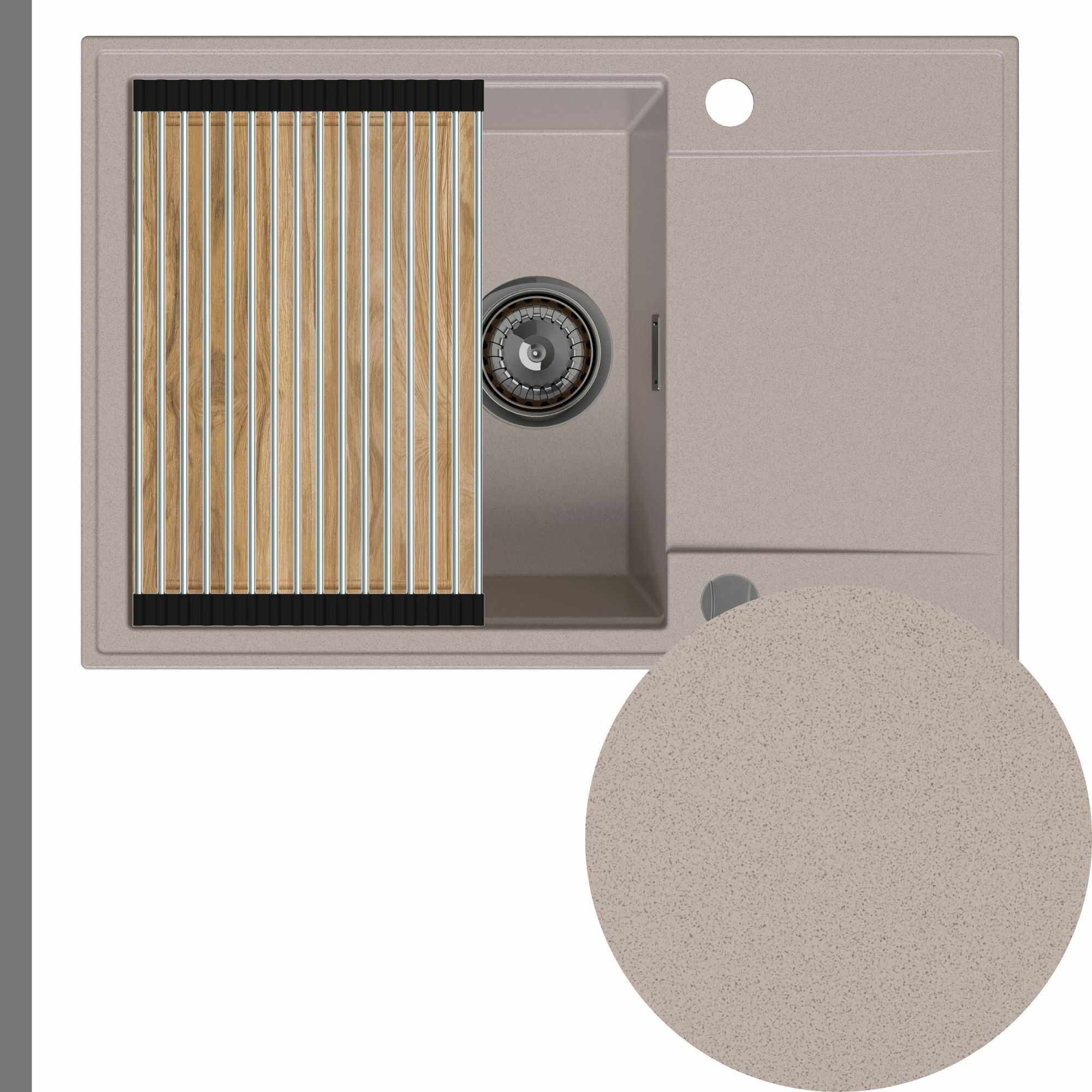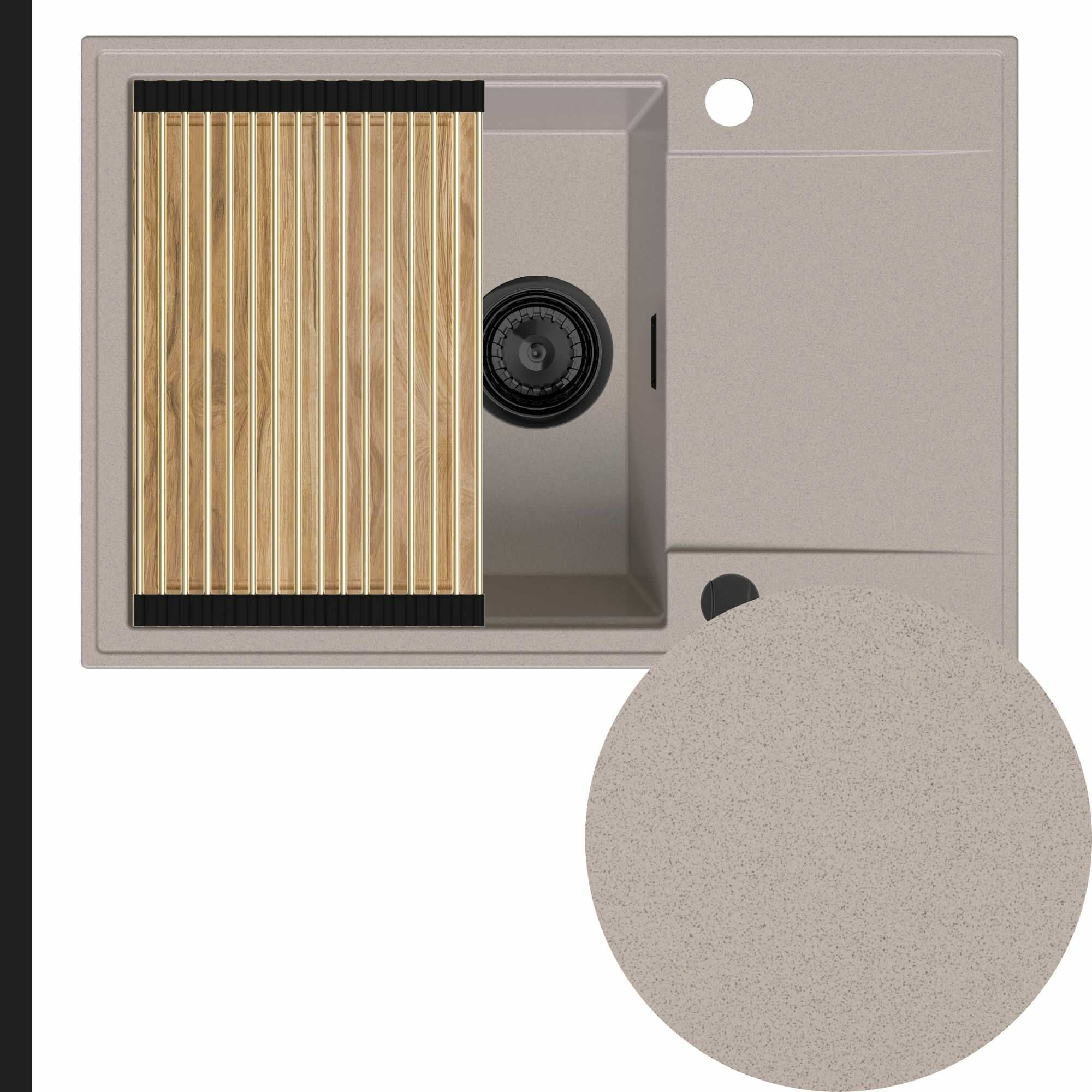 Zlewozmywak granitowy SINK 55 1KDO + syfon + deska + rollmata