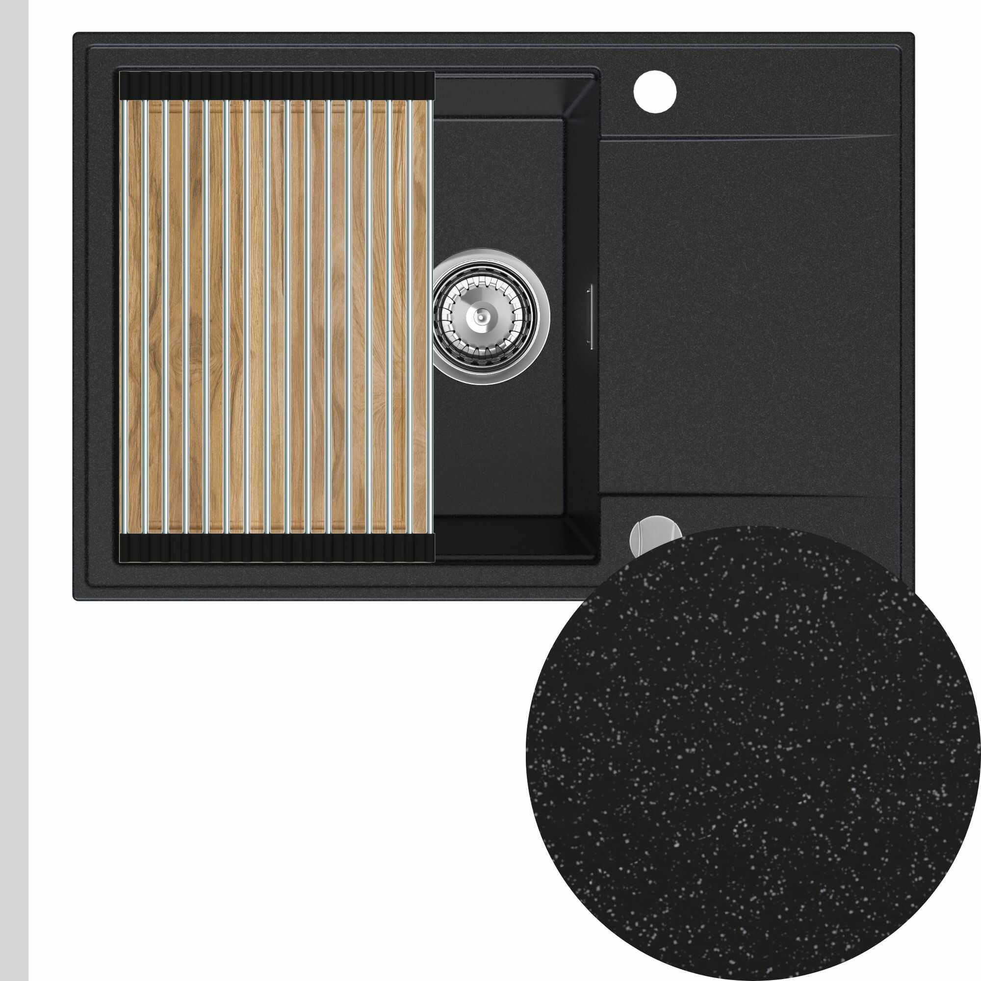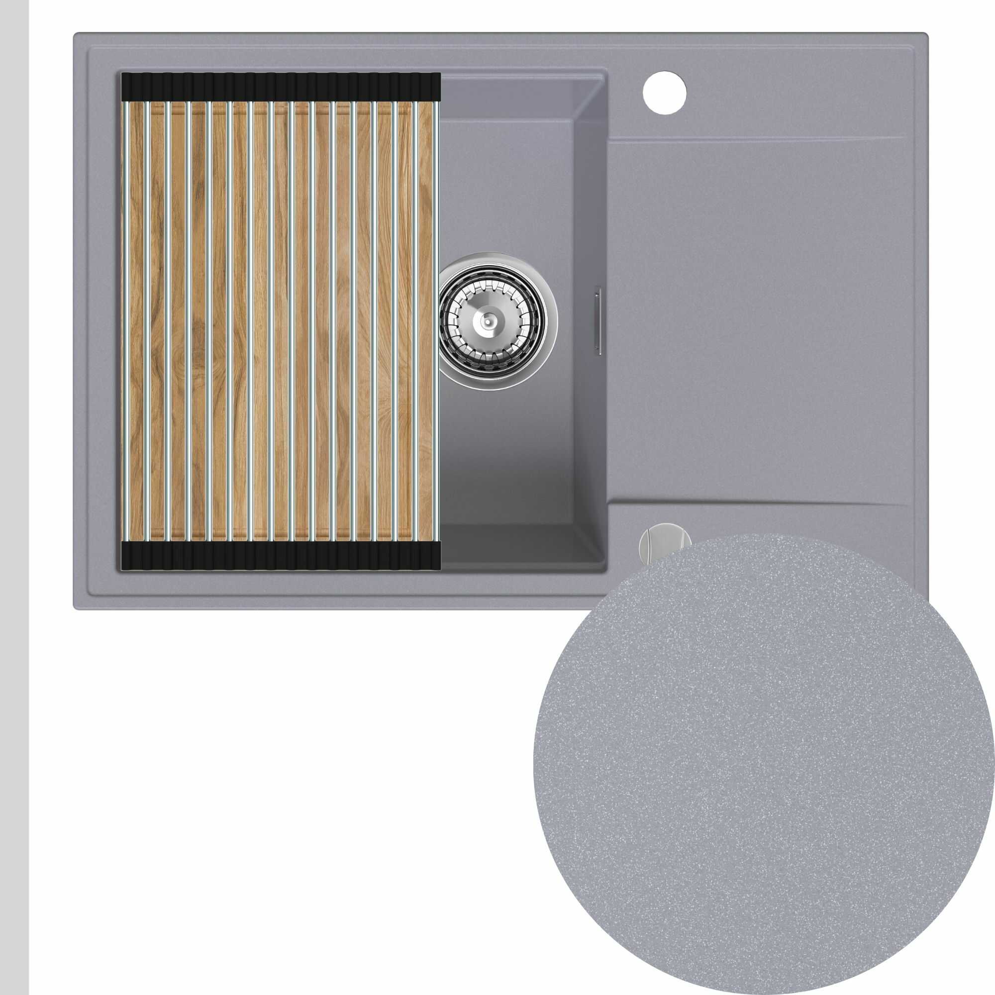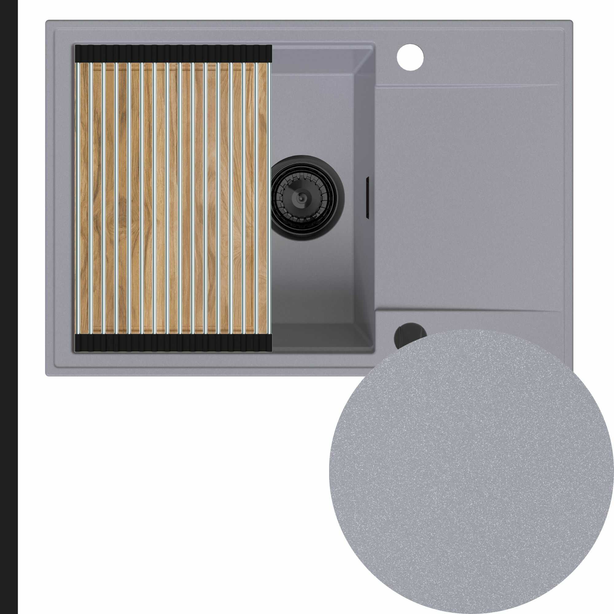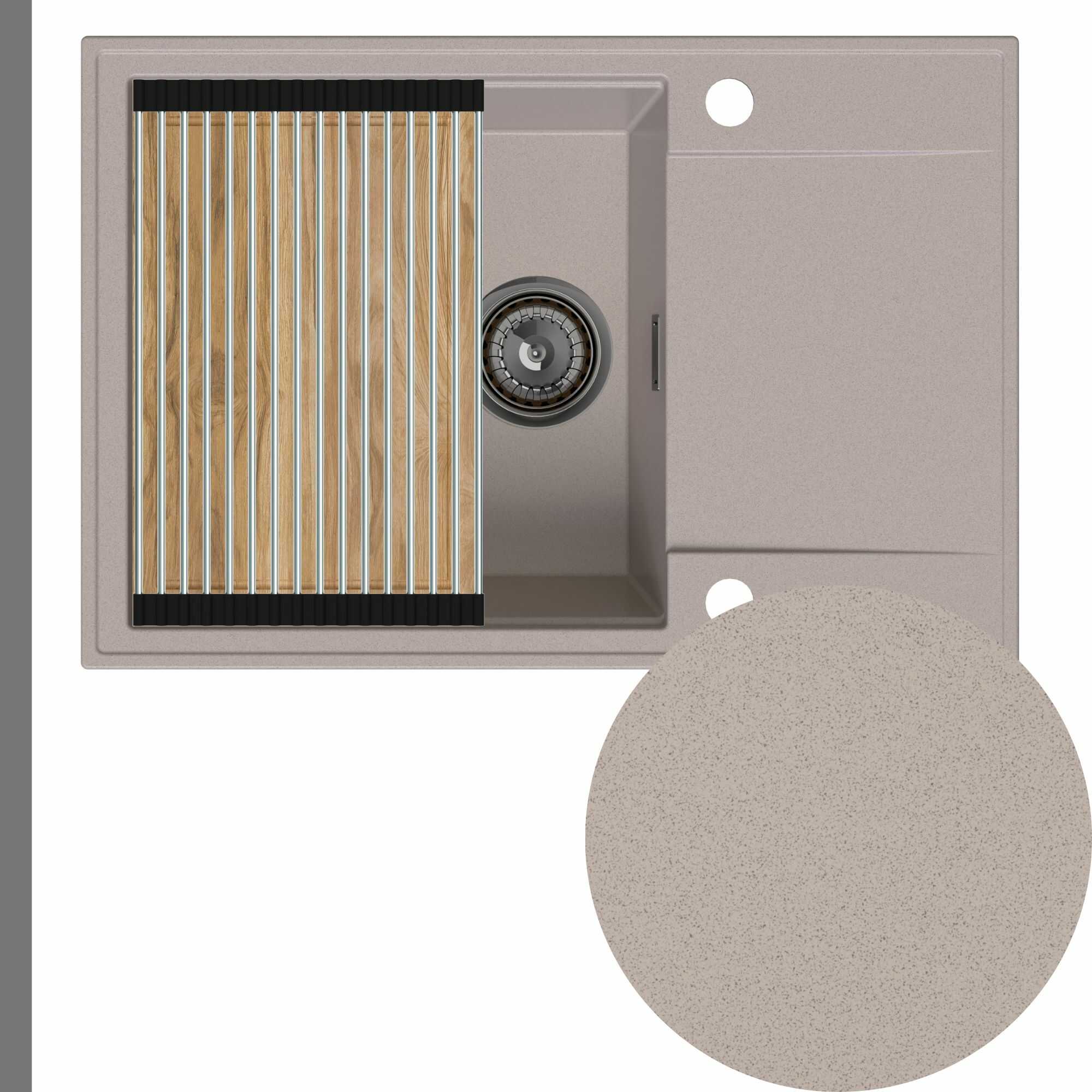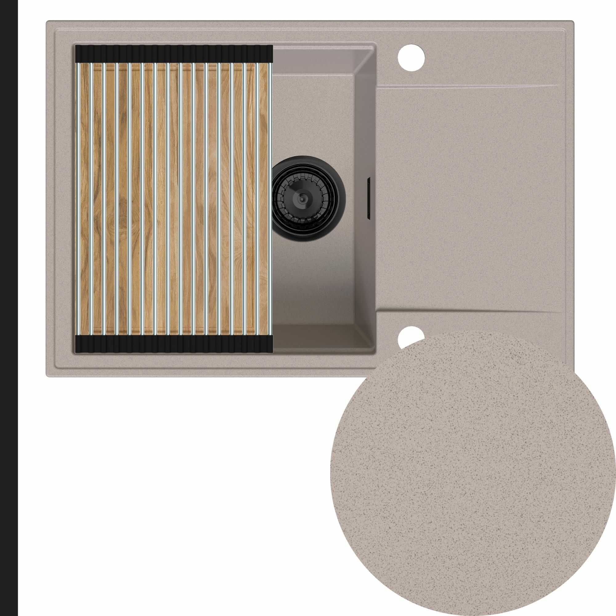 Zlewozmywak granitowy SINK 55 1KDO + syfon + deska + rollmata
