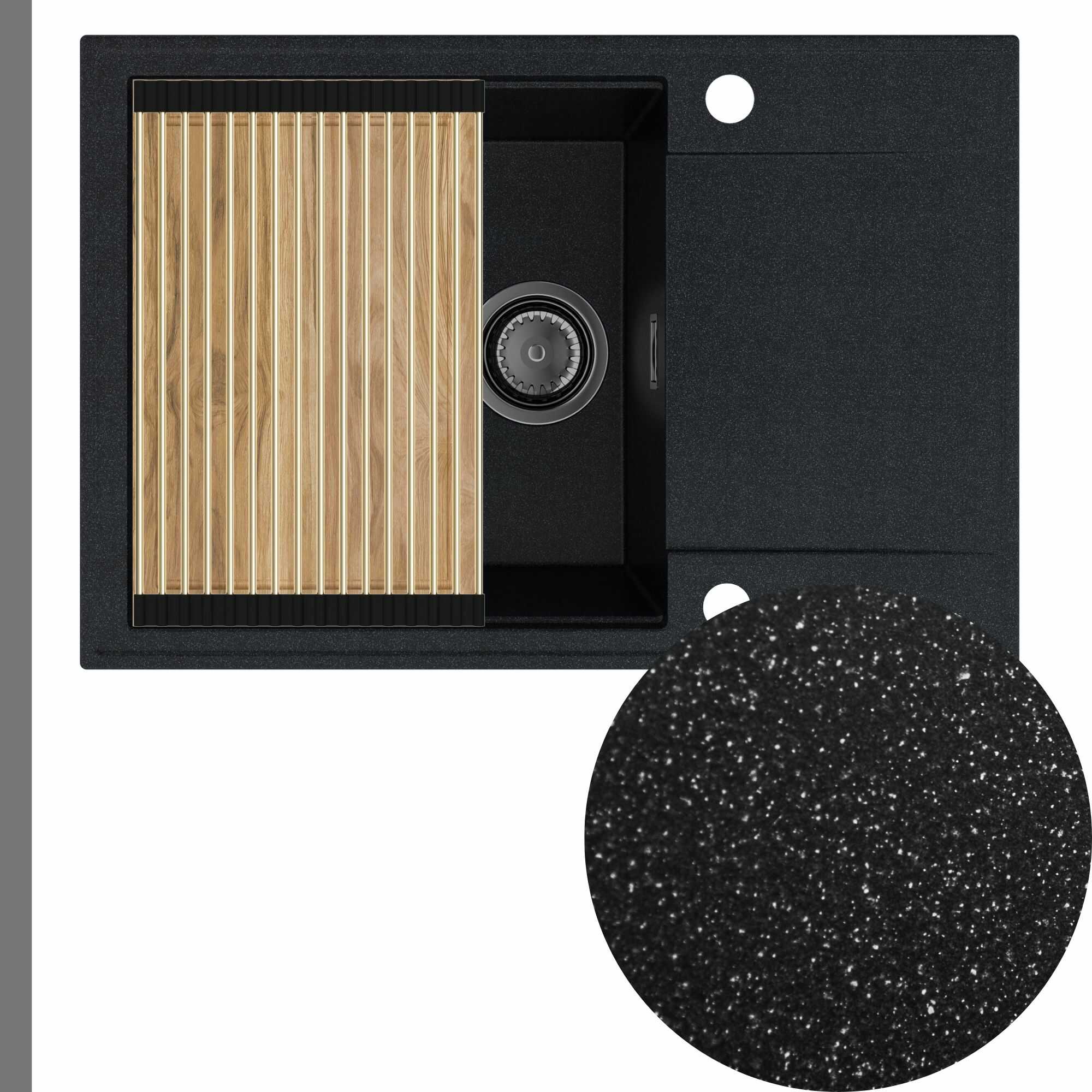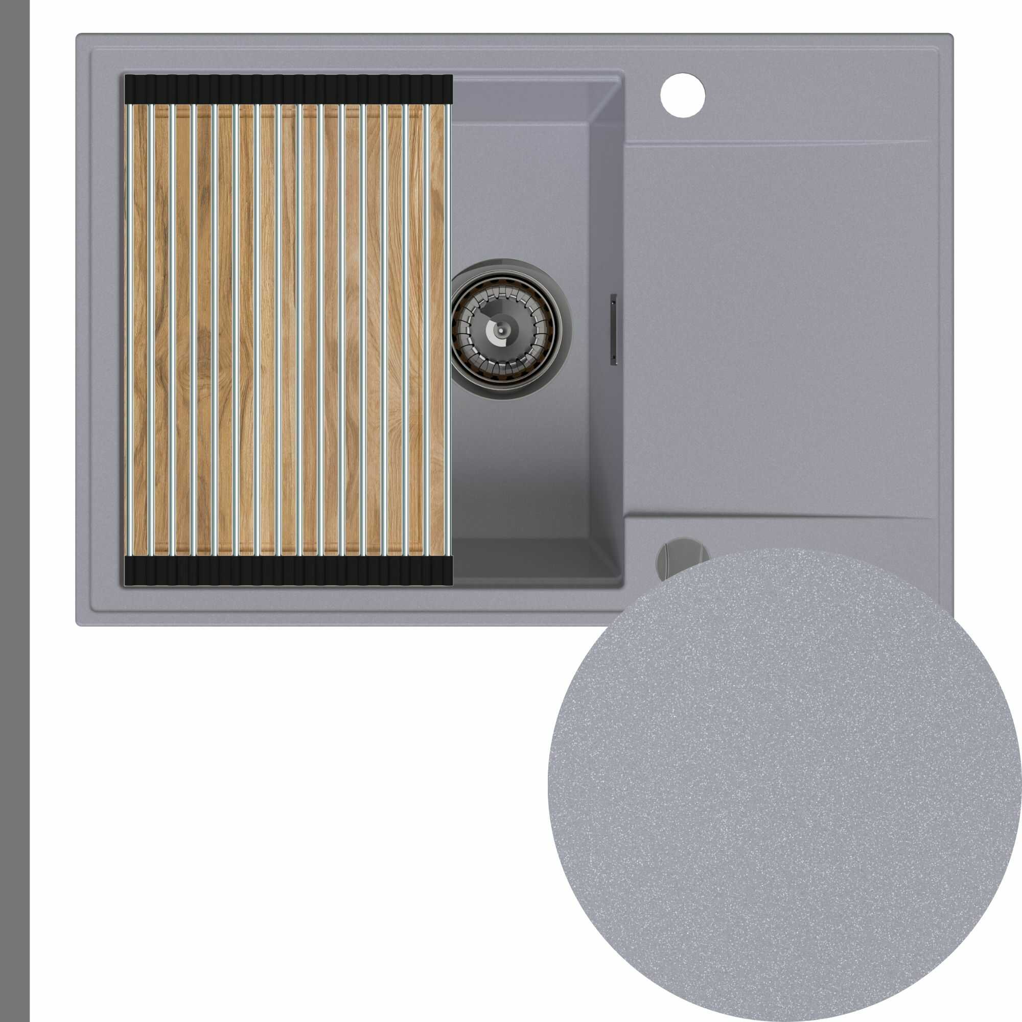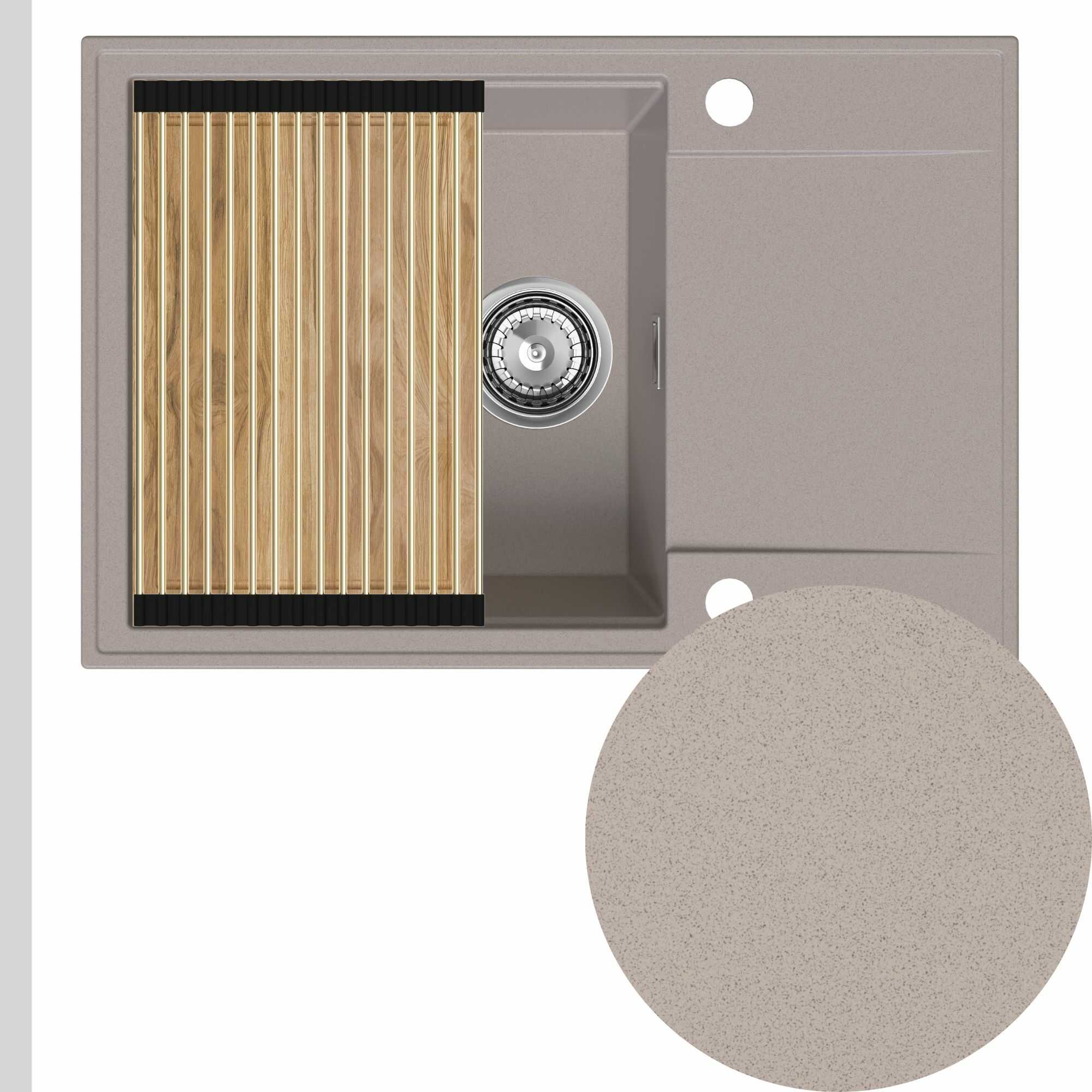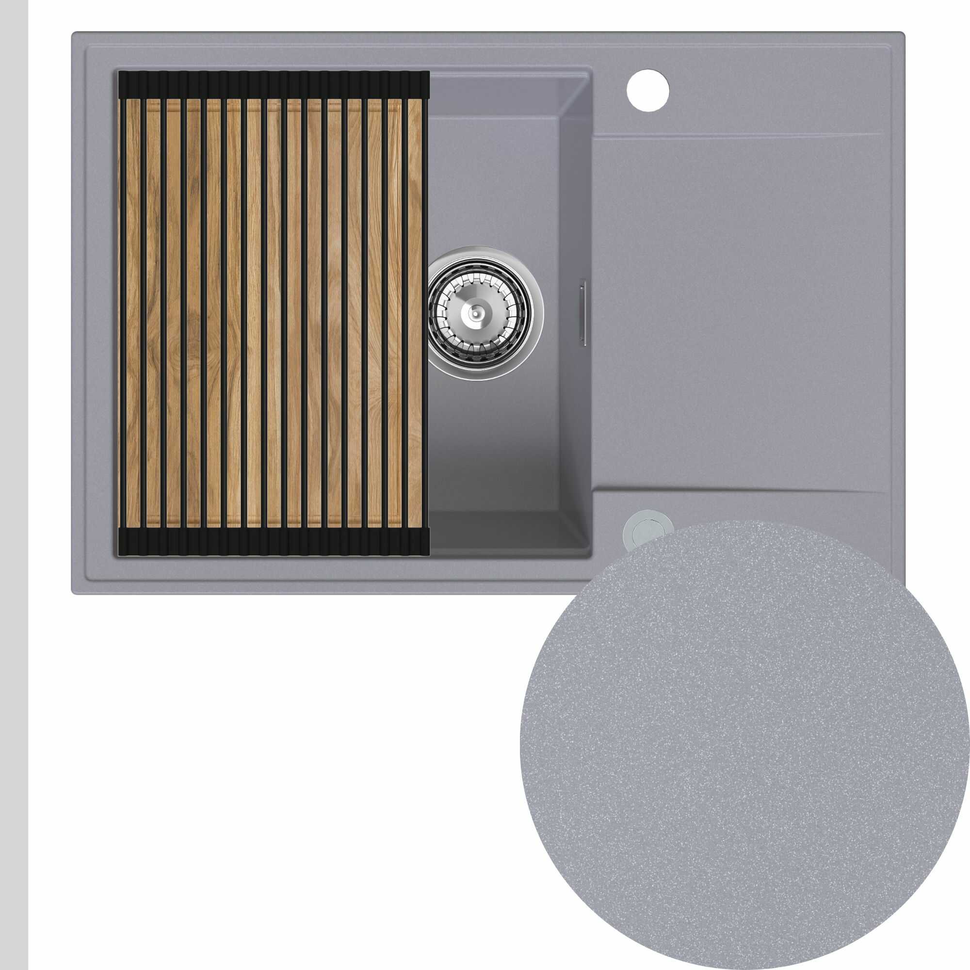 Zlewozmywak granitowy SINK 55 1KDO + syfon + deska + rollmata