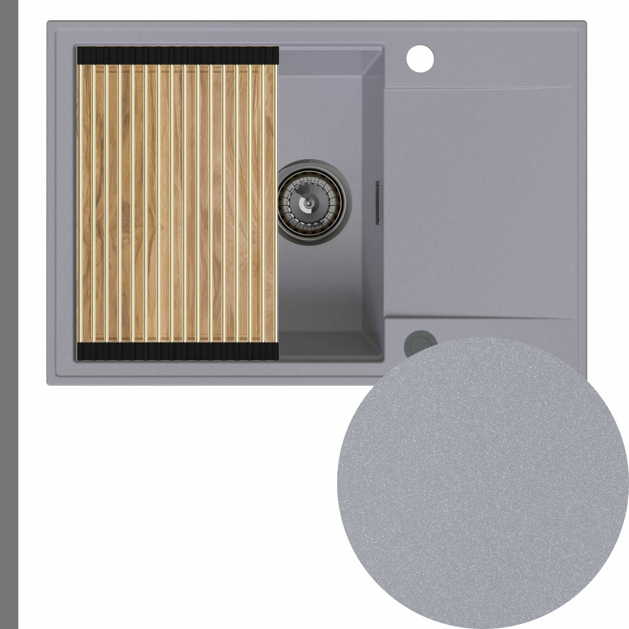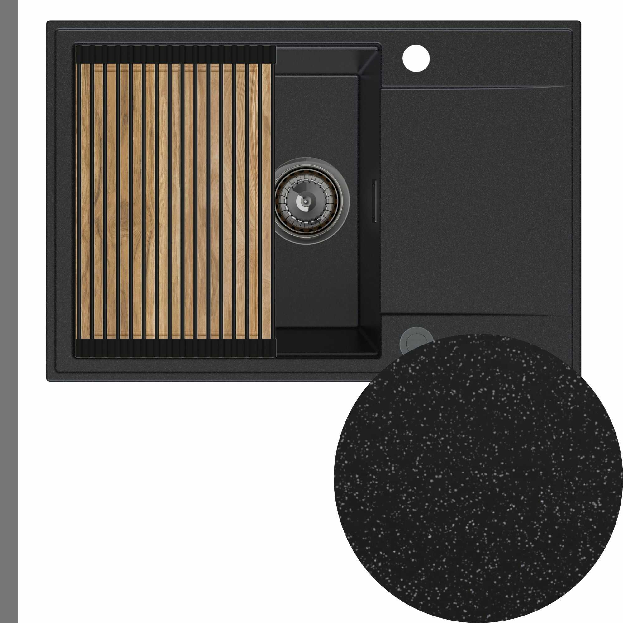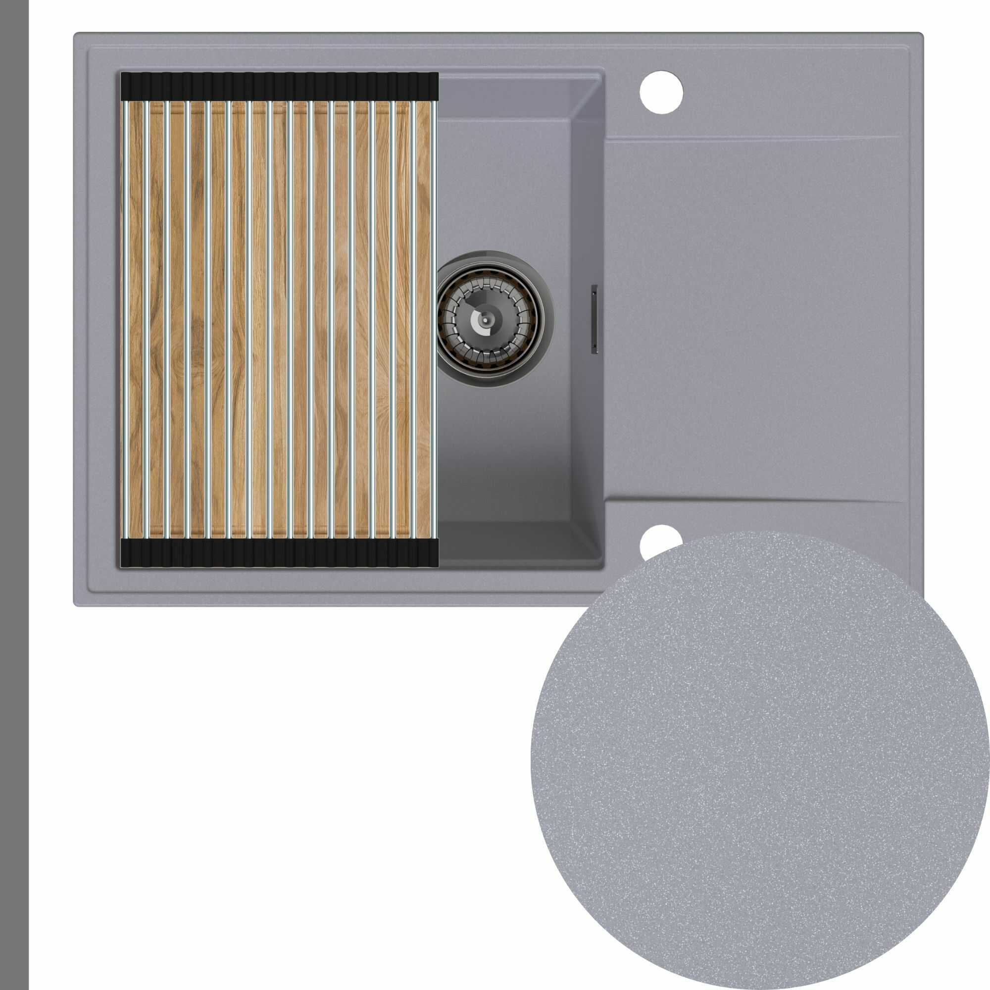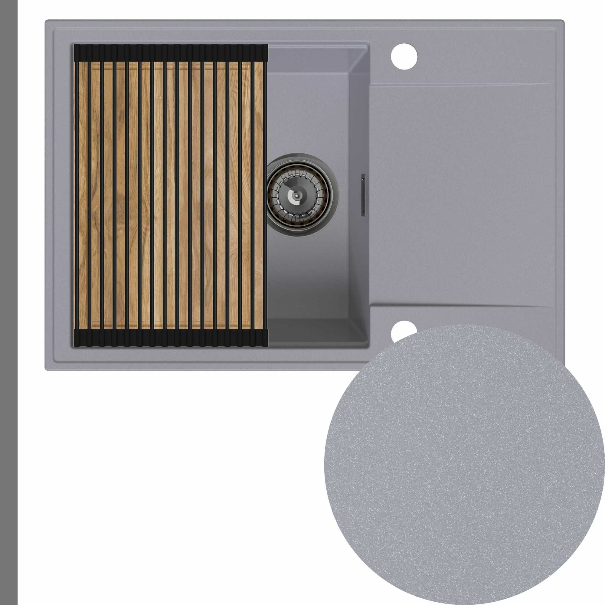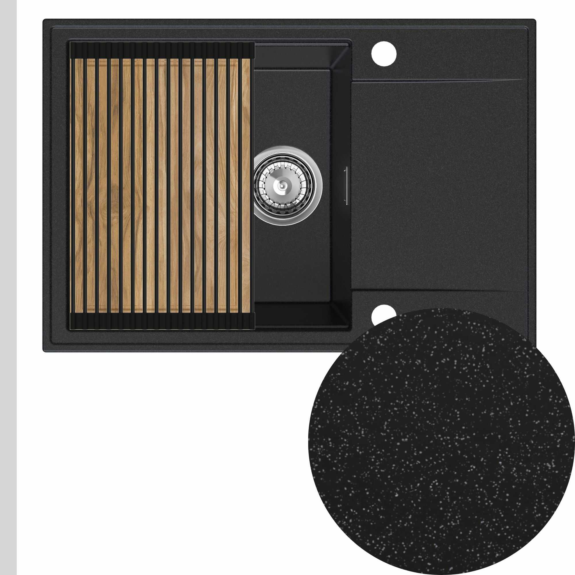Zlewozmywak granitowy SINK 55 1KDO + syfon + deska + rollmata