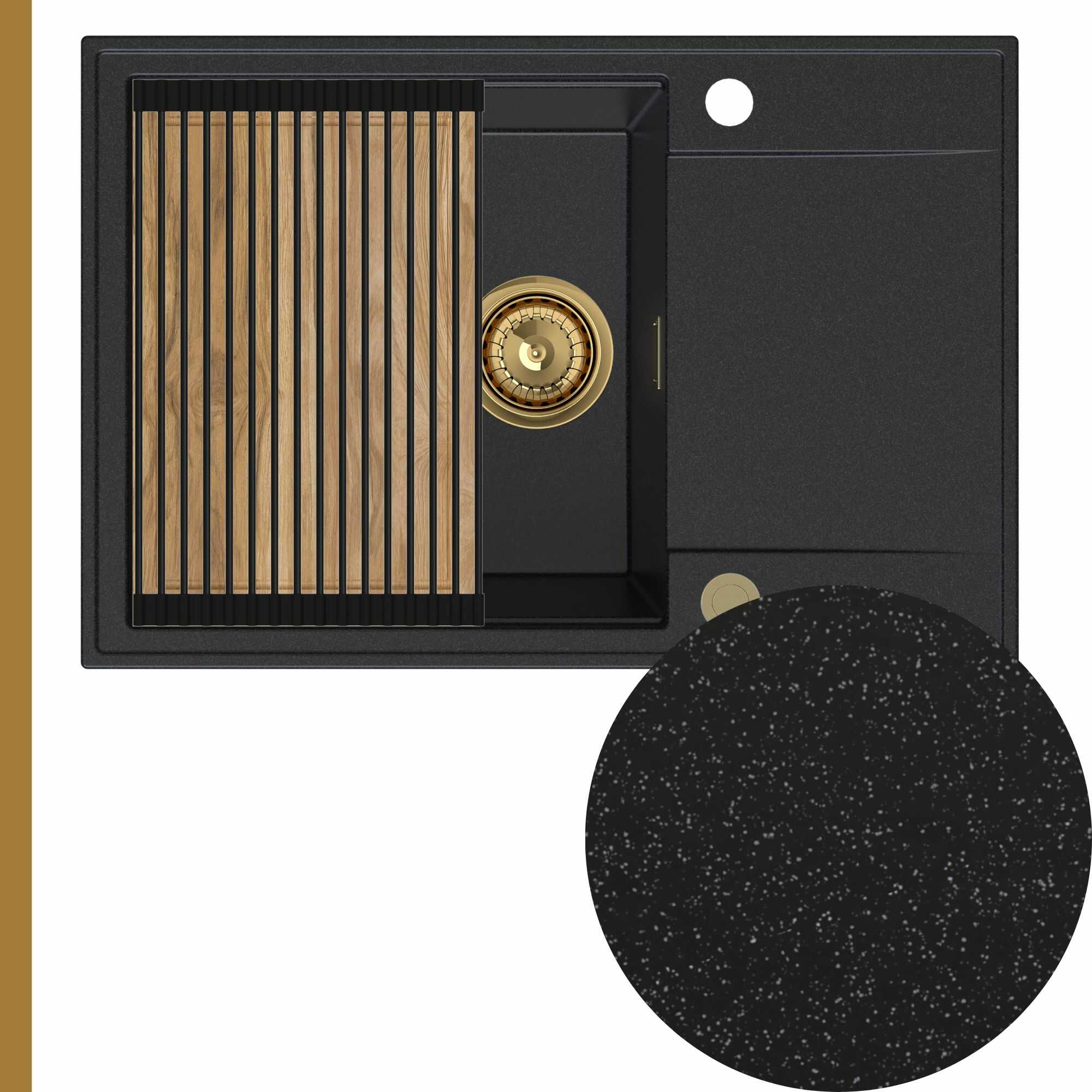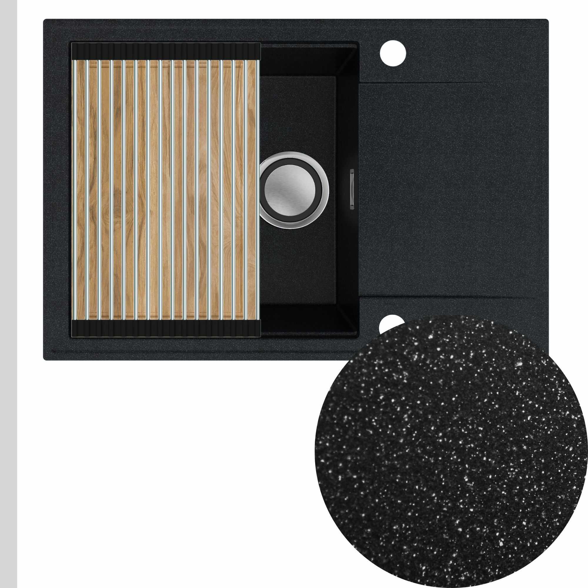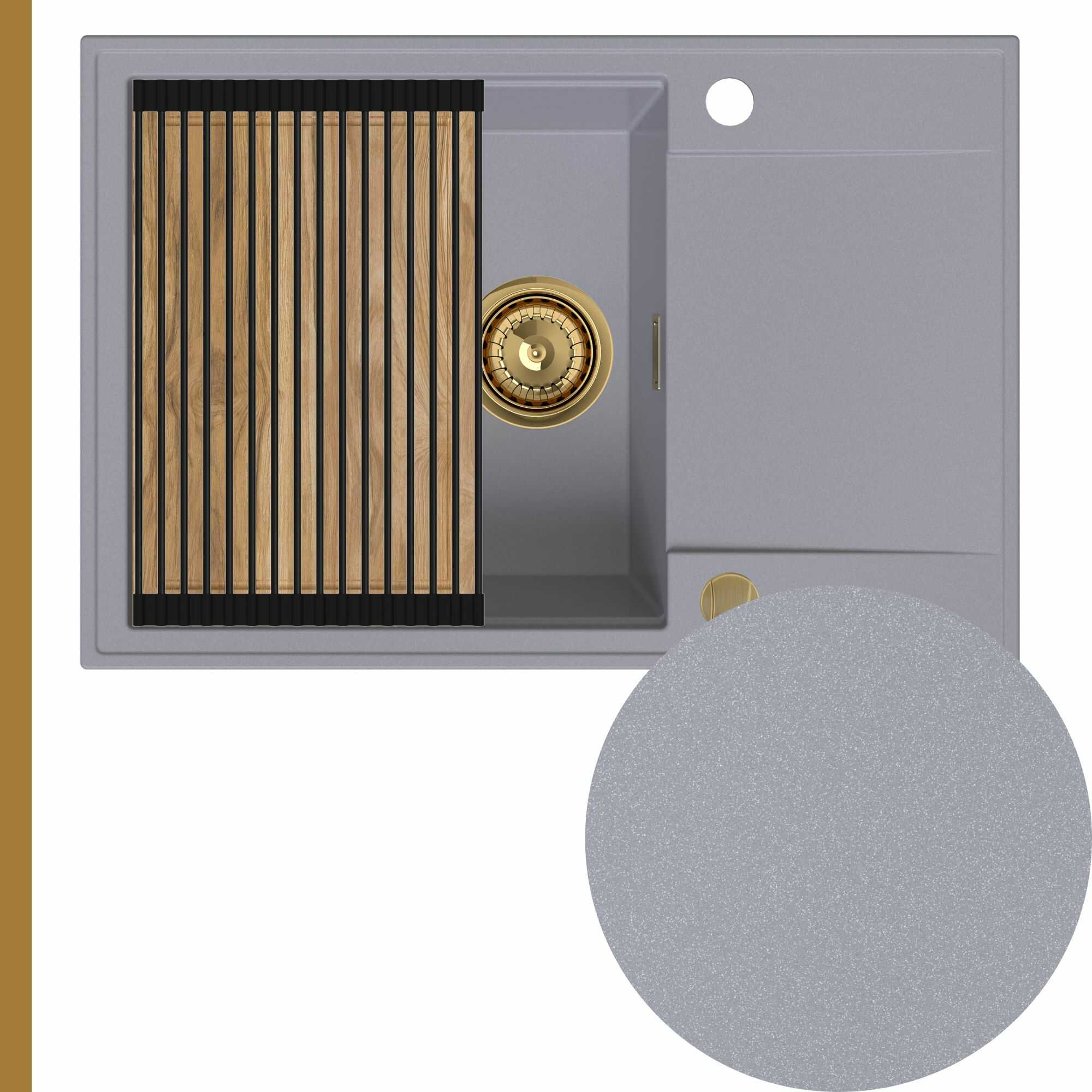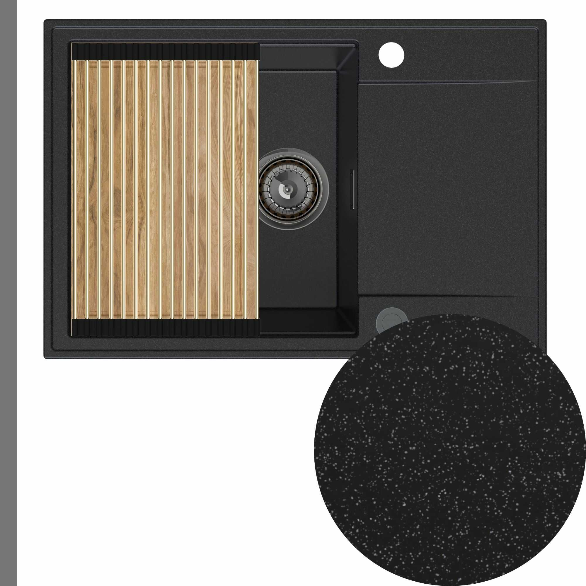 Zlewozmywak granitowy SINK 55 1KDO + syfon + deska + rollmata
