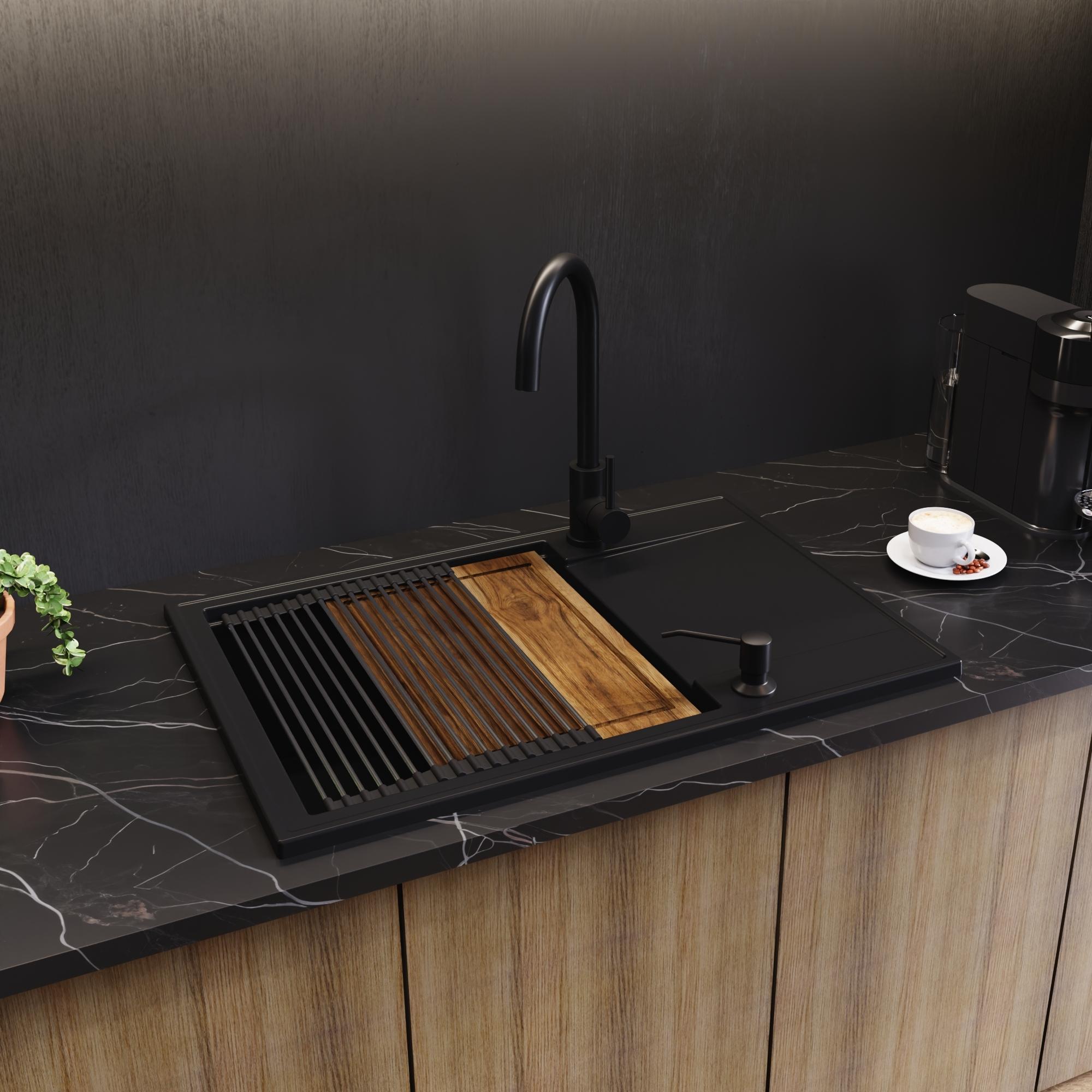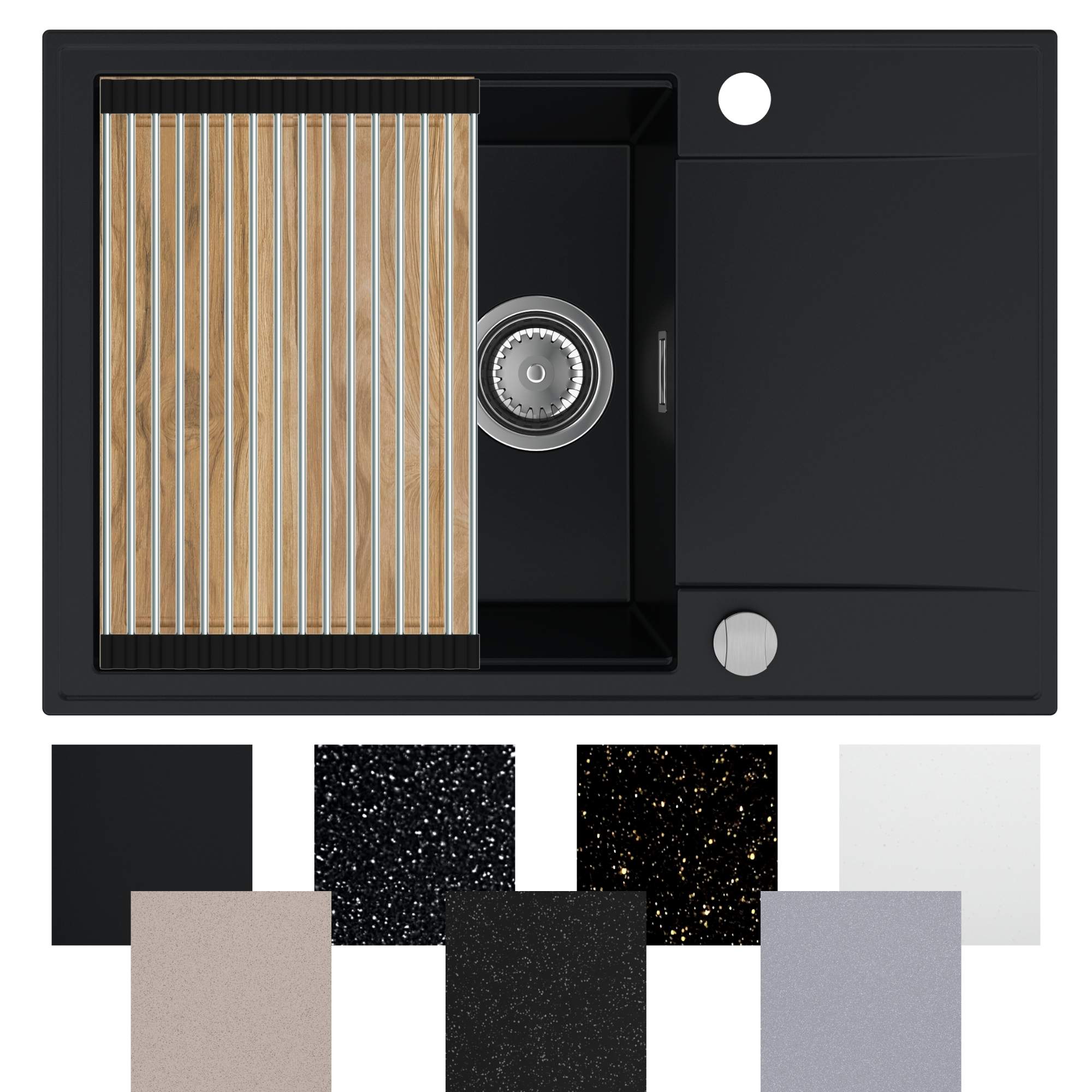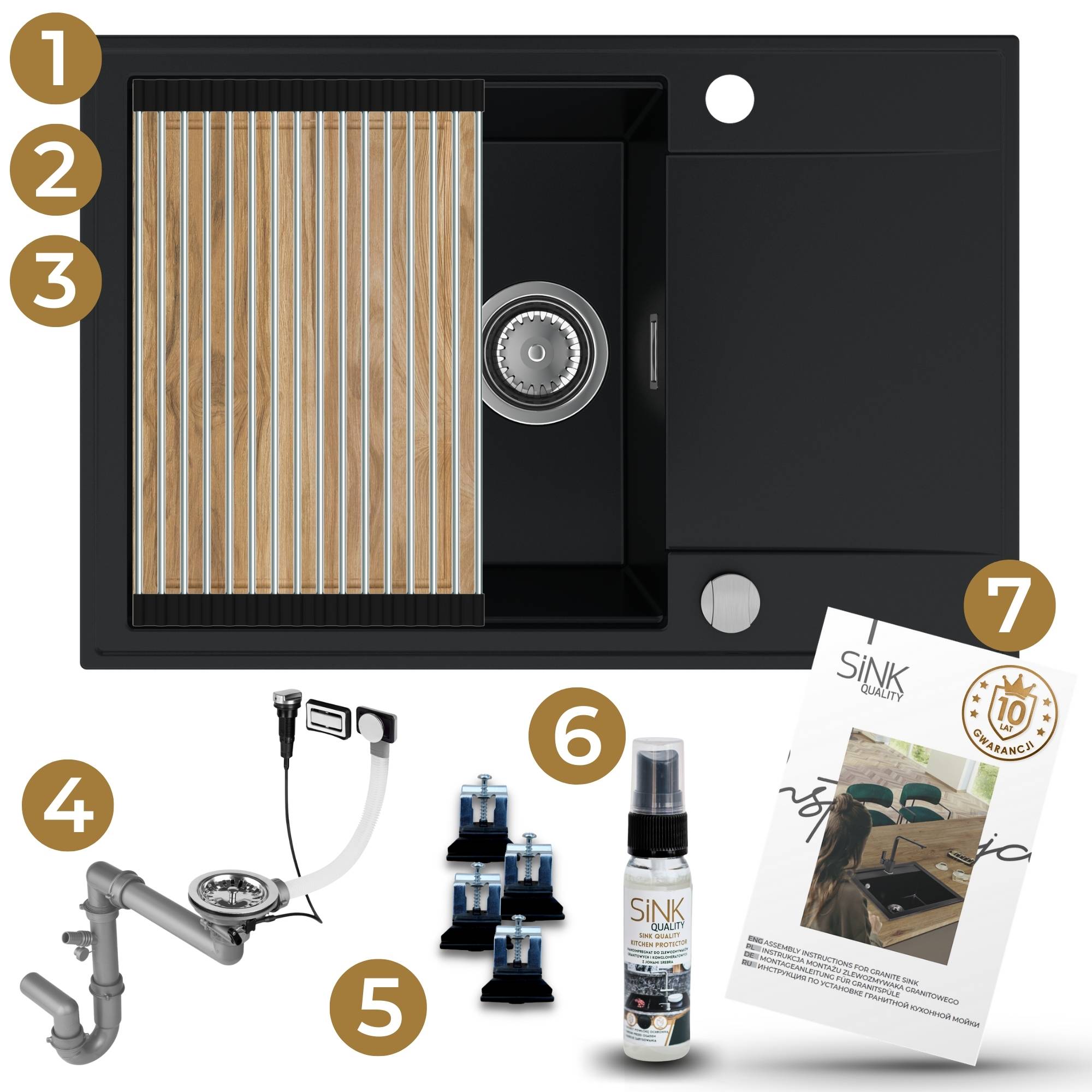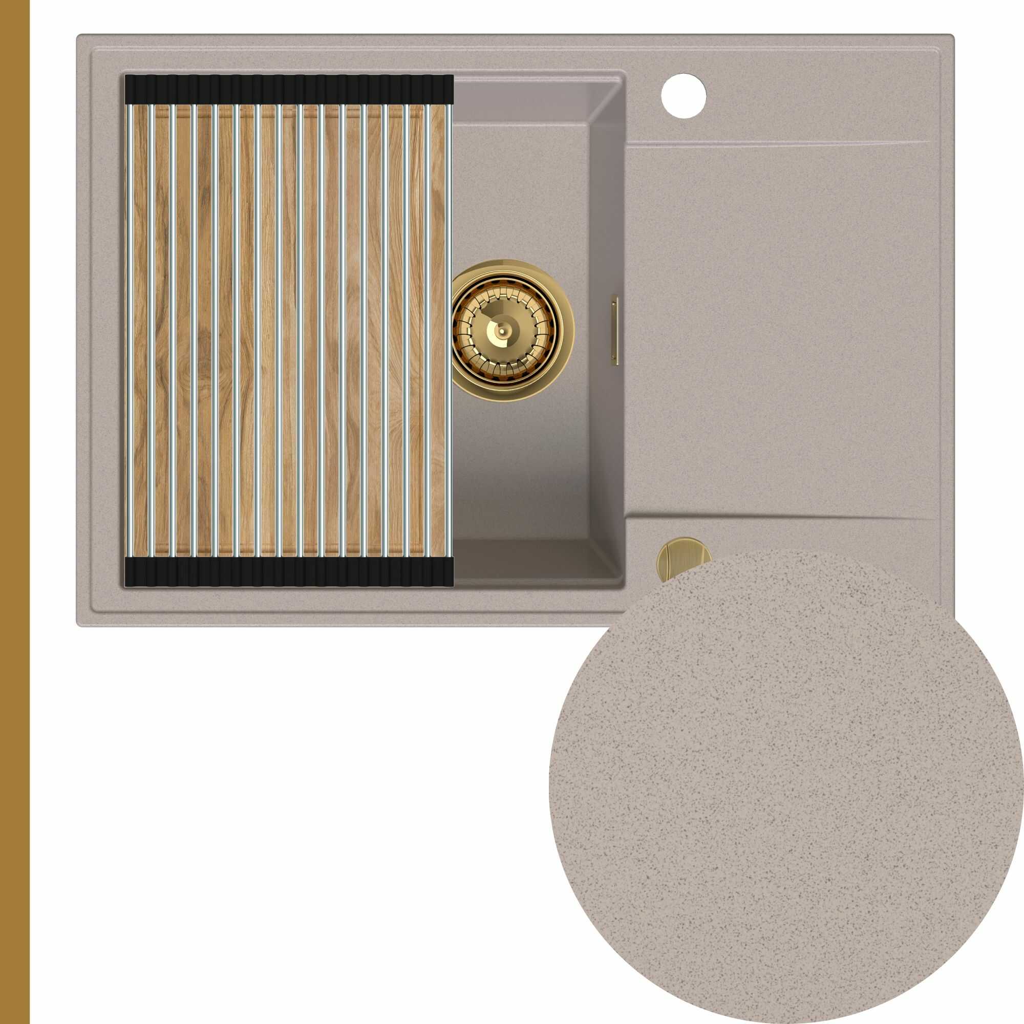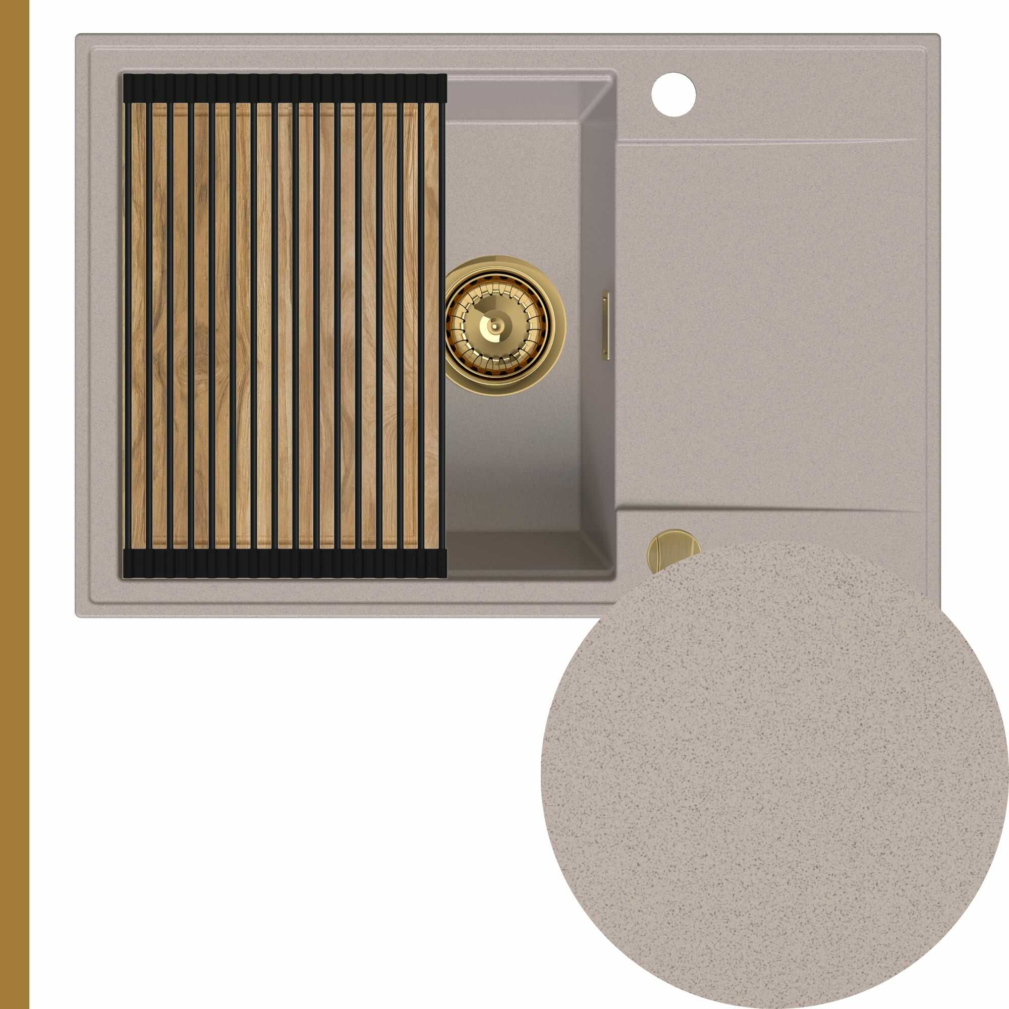 Zlewozmywak granitowy SINK 55 1KDO + syfon + deska + rollmata