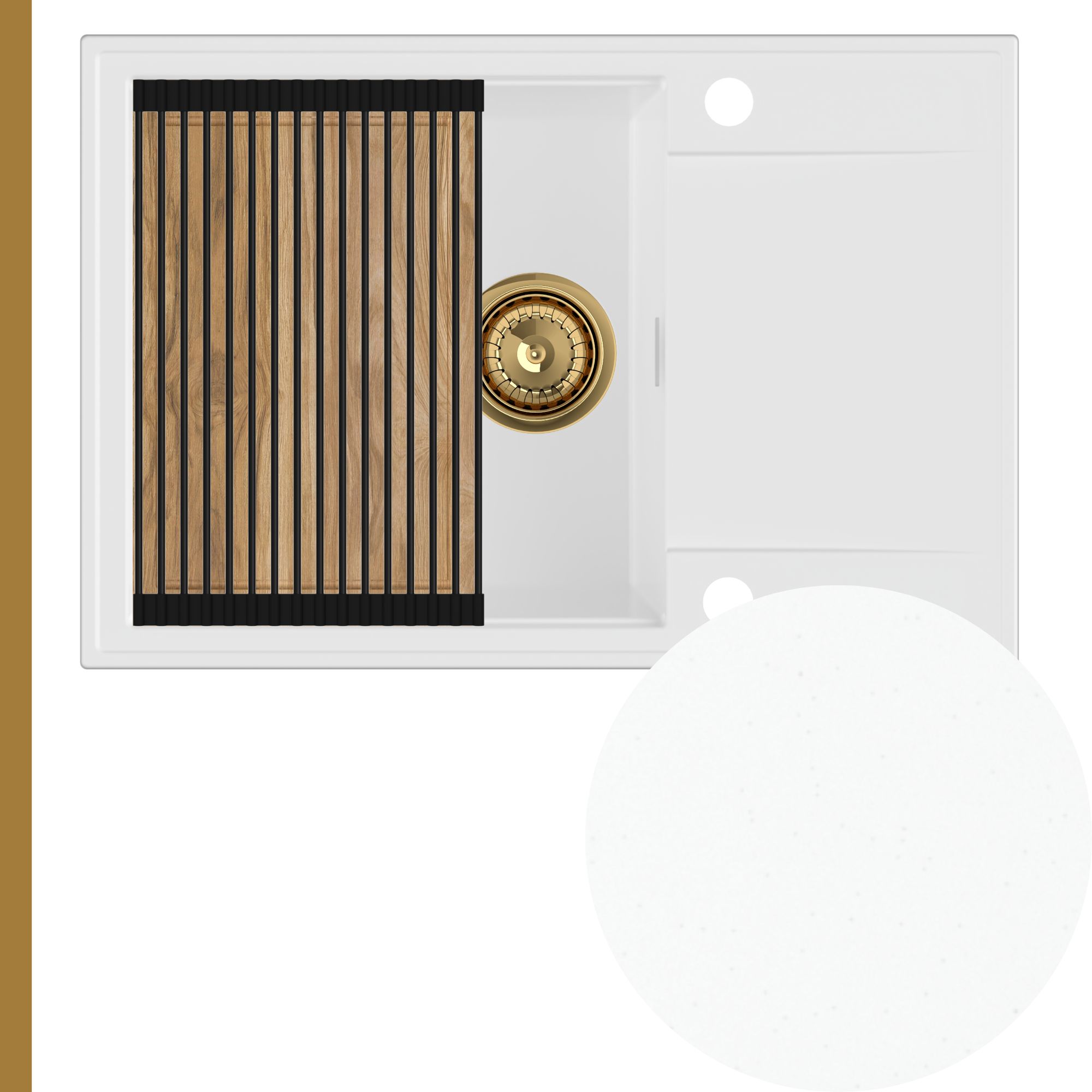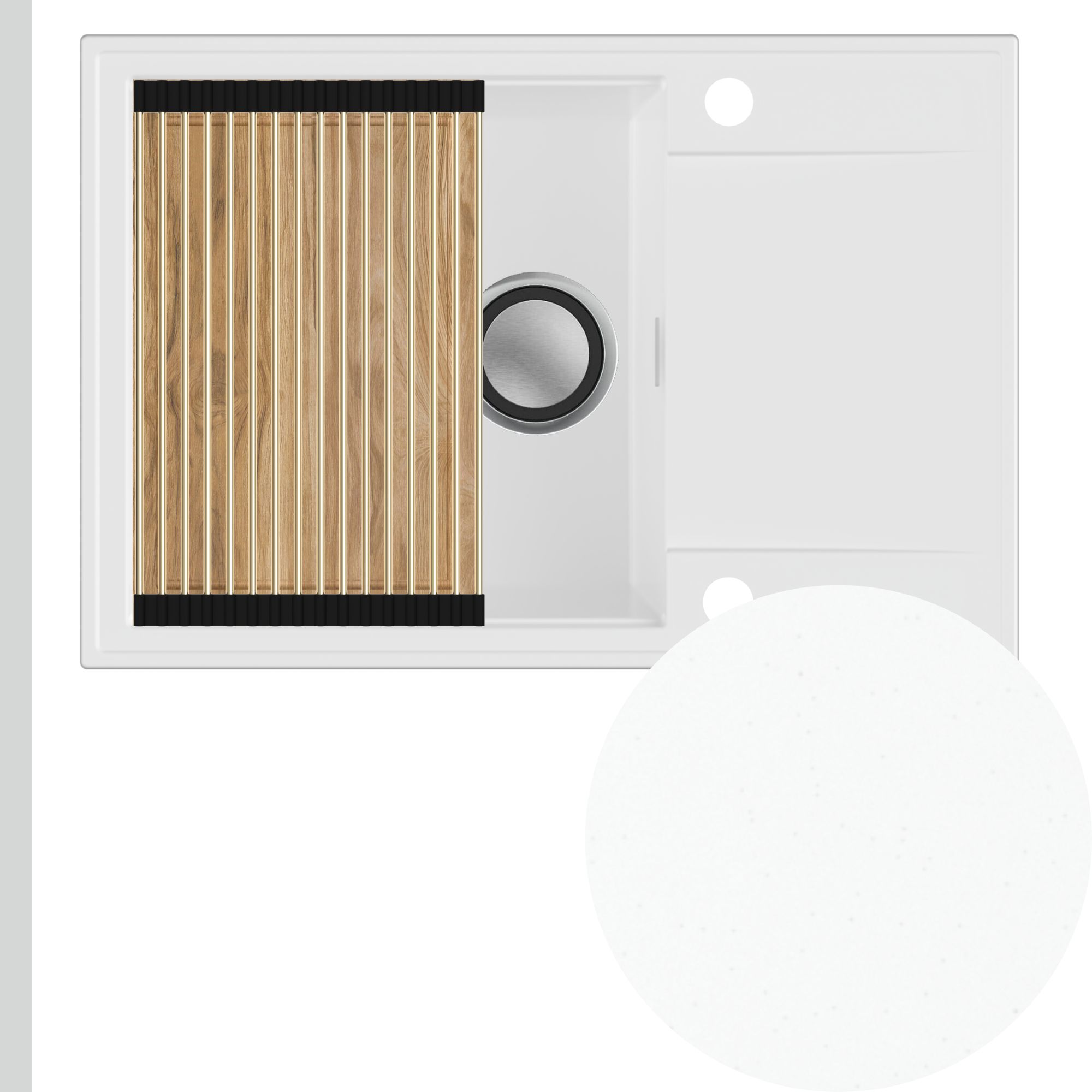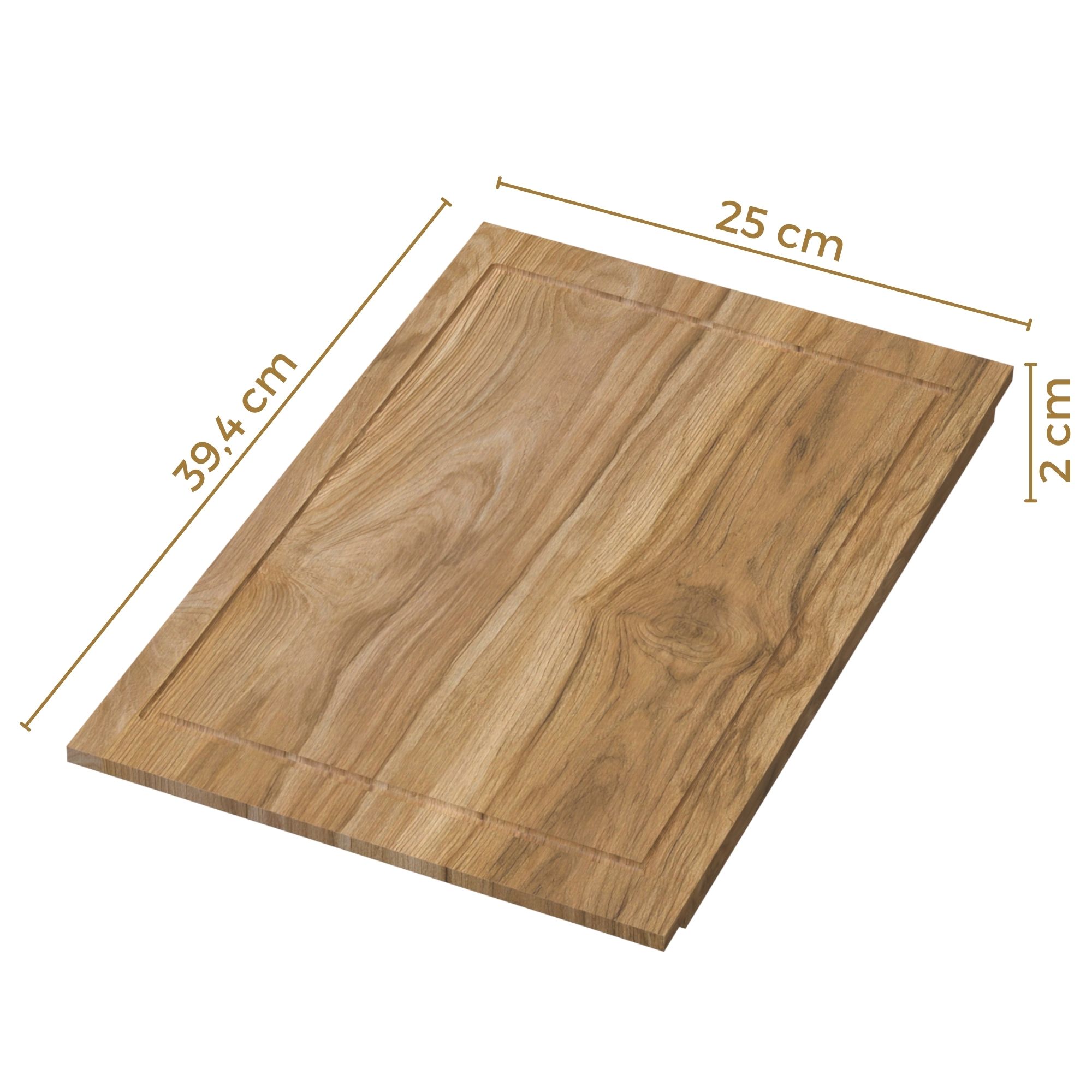 Solidna deska dębowa to idealna baza do krojenia produktów oraz przygotowywania posiłków. Umieszczona na górnych krawędziach zlewu, zamienia go w stabilny blat, tworząc dodatkową przestrzeń roboczą i znacząco zwiększając komfort pracy w kuchni. Z uwagi na naturalny charakter drewna dębowego, odcień oraz układ słojów mogą nieznacznie różnić się od tych prezentowanych na zdjęciach.