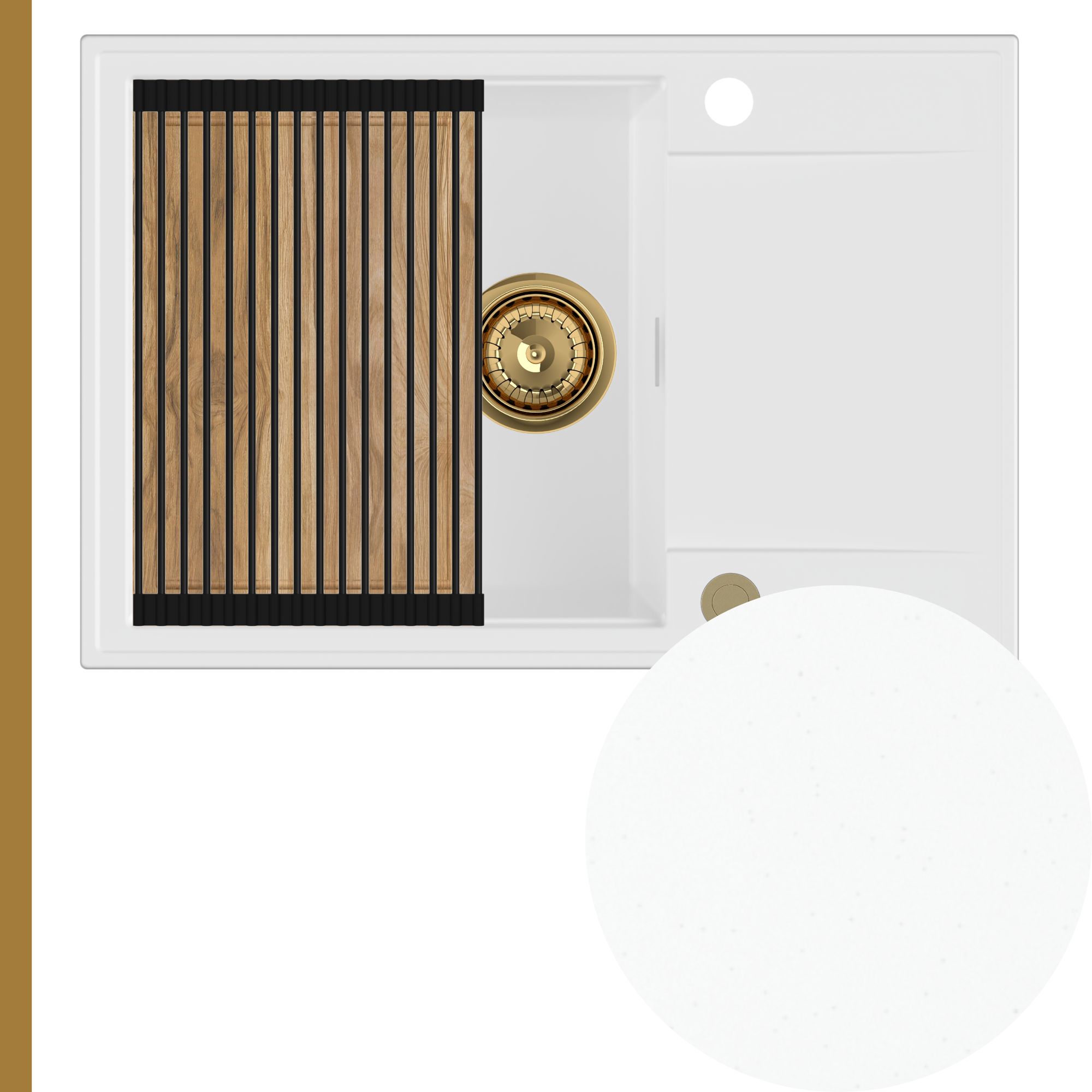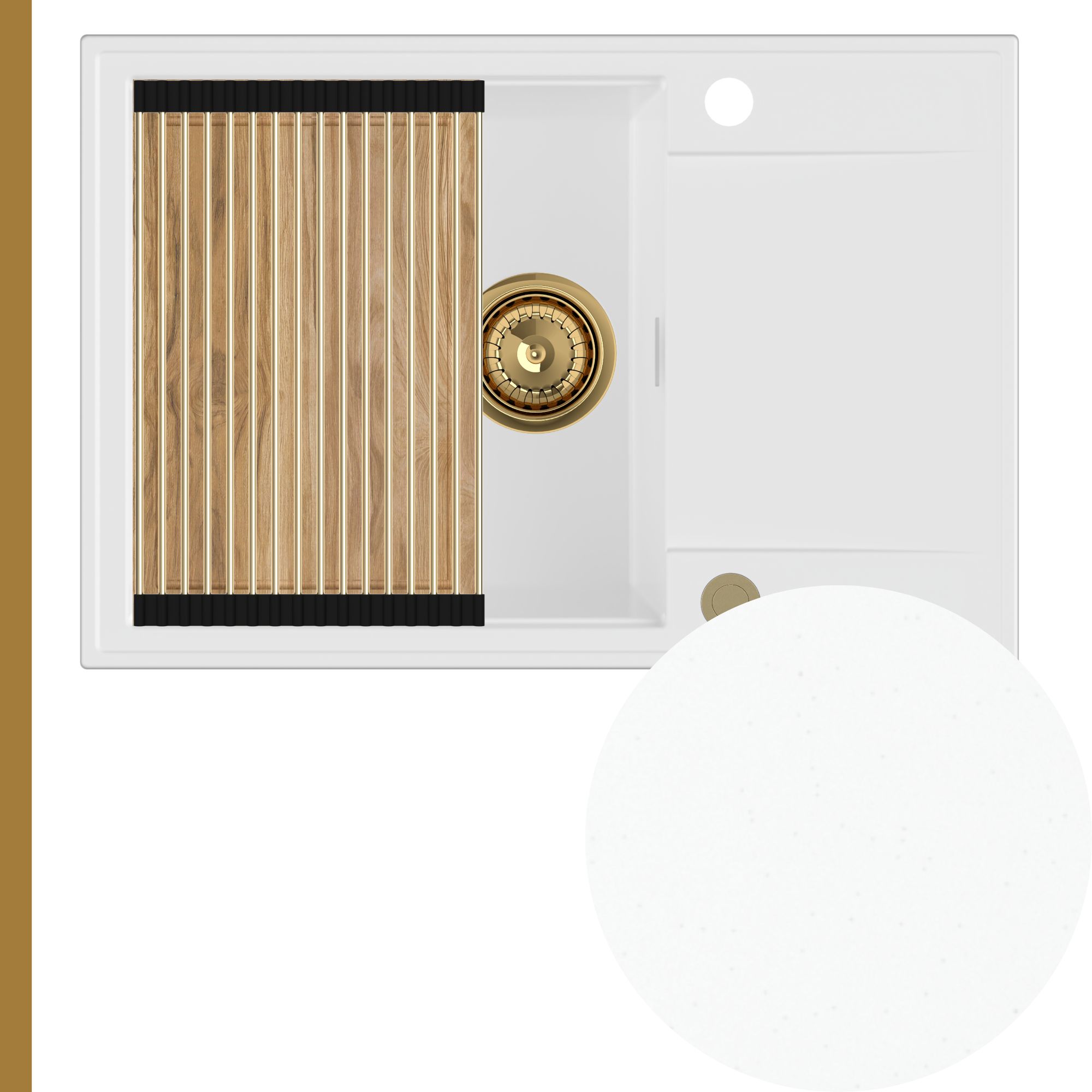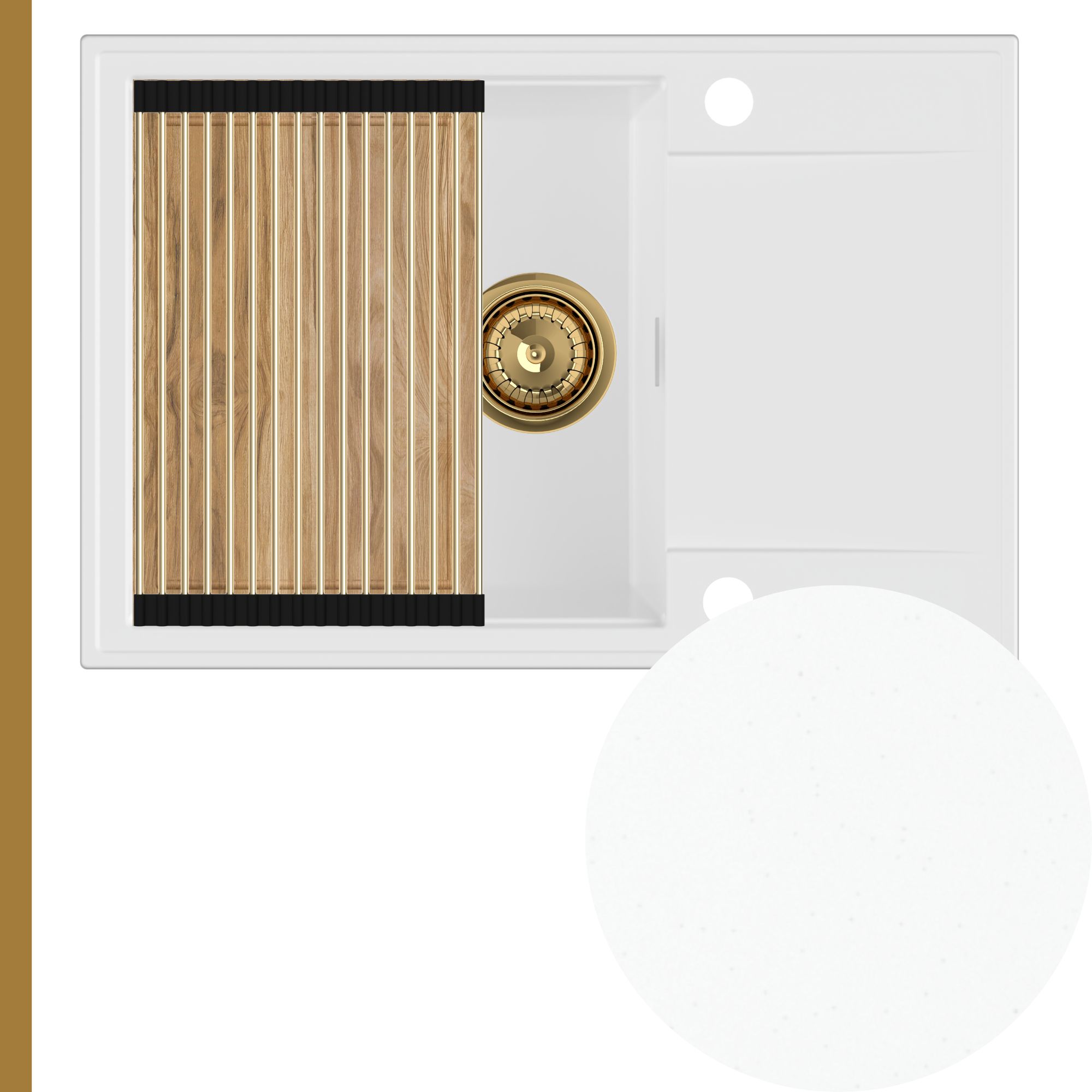 Solidna deska dębowa to idealna baza do krojenia produktów oraz przygotowywania posiłków. Umieszczona na górnych krawędziach zlewu, zamienia go w stabilny blat, tworząc dodatkową przestrzeń roboczą i znacząco zwiększając komfort pracy w kuchni. Z uwagi na naturalny charakter drewna dębowego, odcień oraz układ słojów mogą nieznacznie różnić się od tych prezentowanych na zdjęciach.