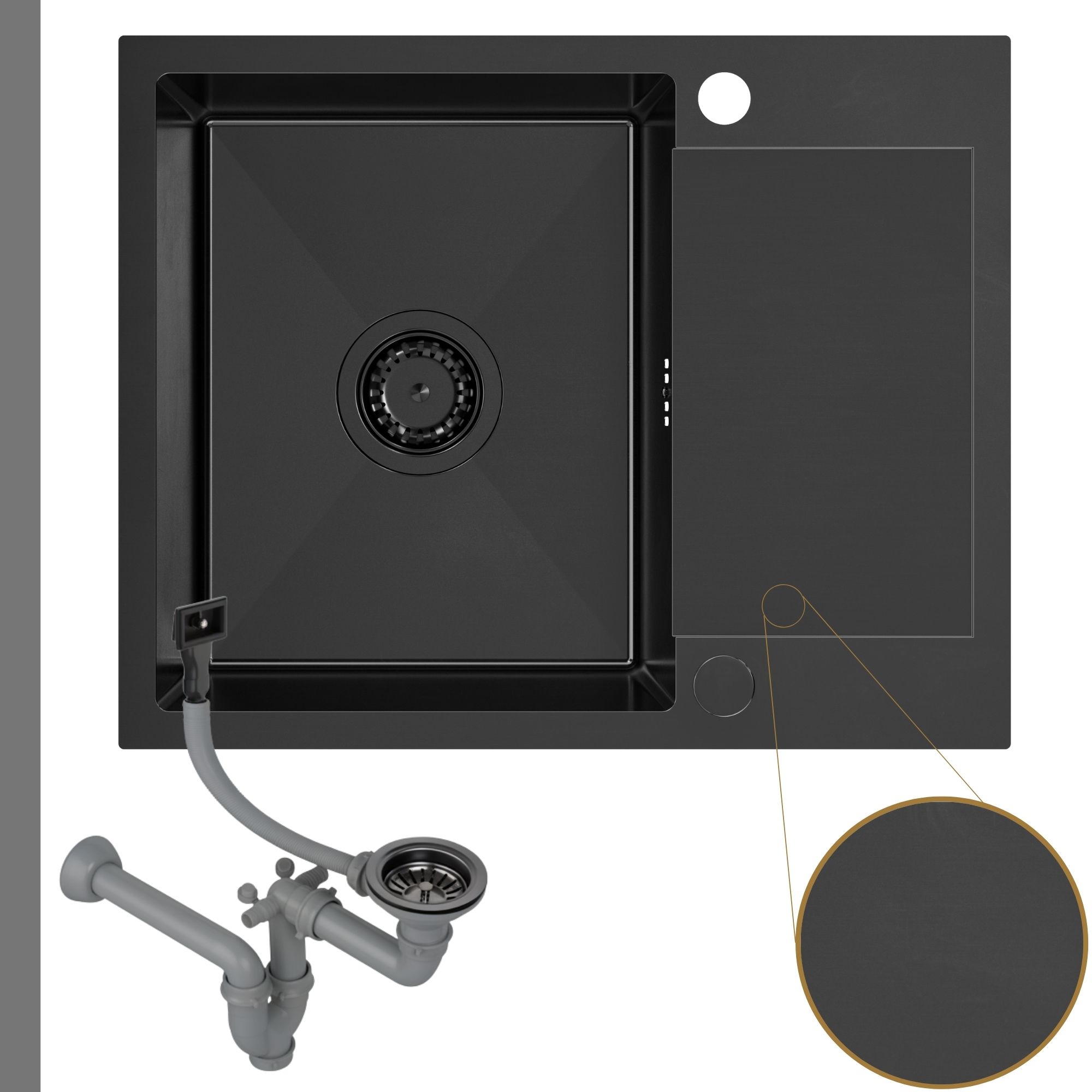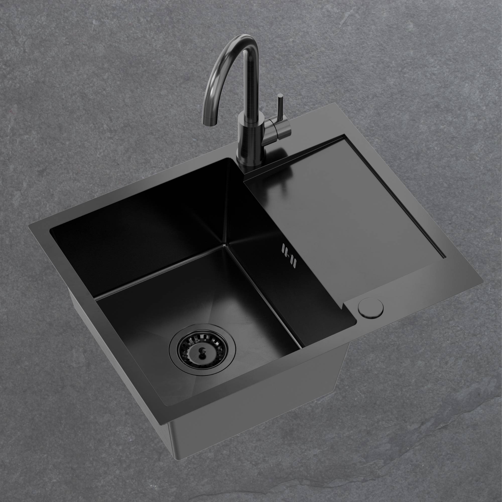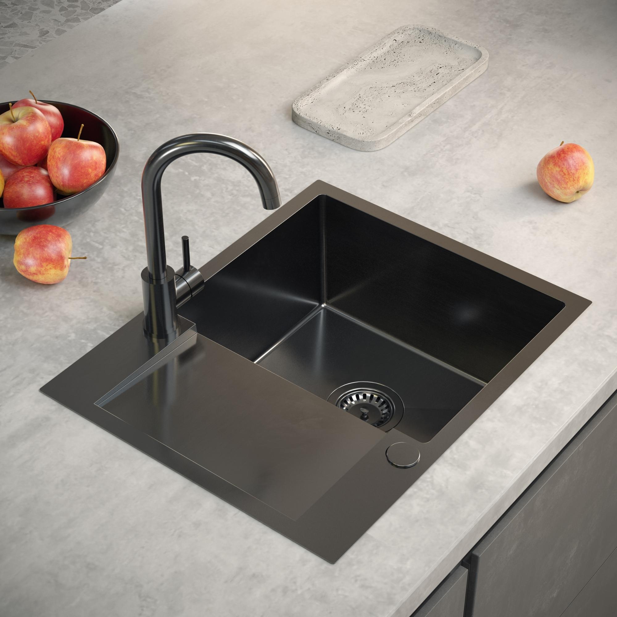 - Powłoka antykondensacyjna, która sprawia, że zlew jest suchy z zewnątrz, woda nie skrapla się, a szafki są chronione przed wilgocią