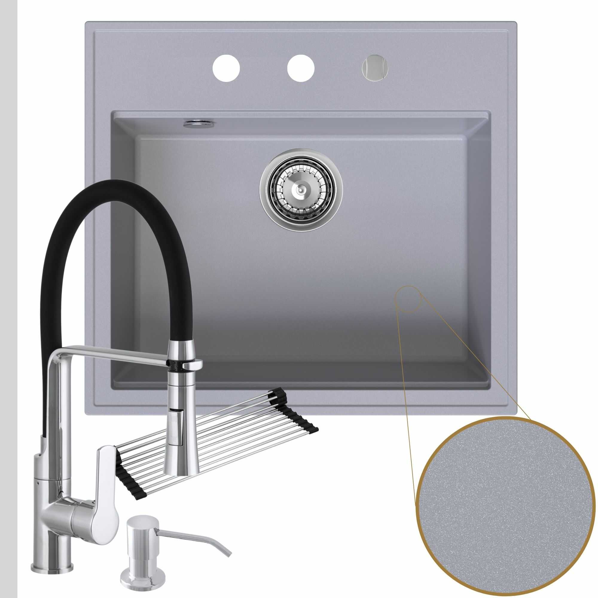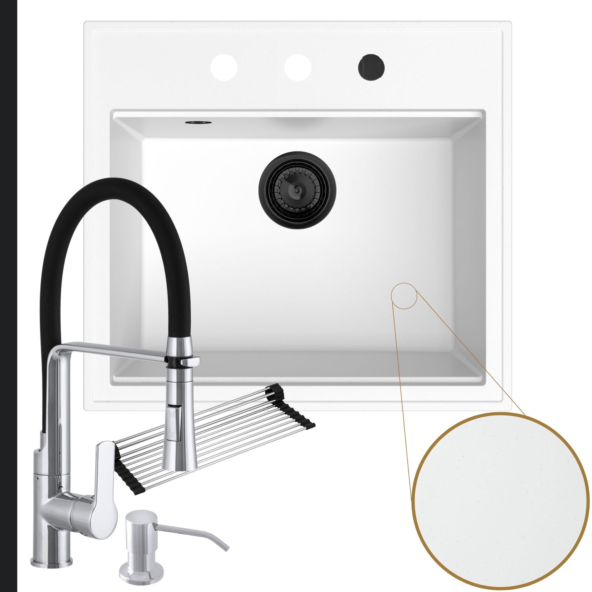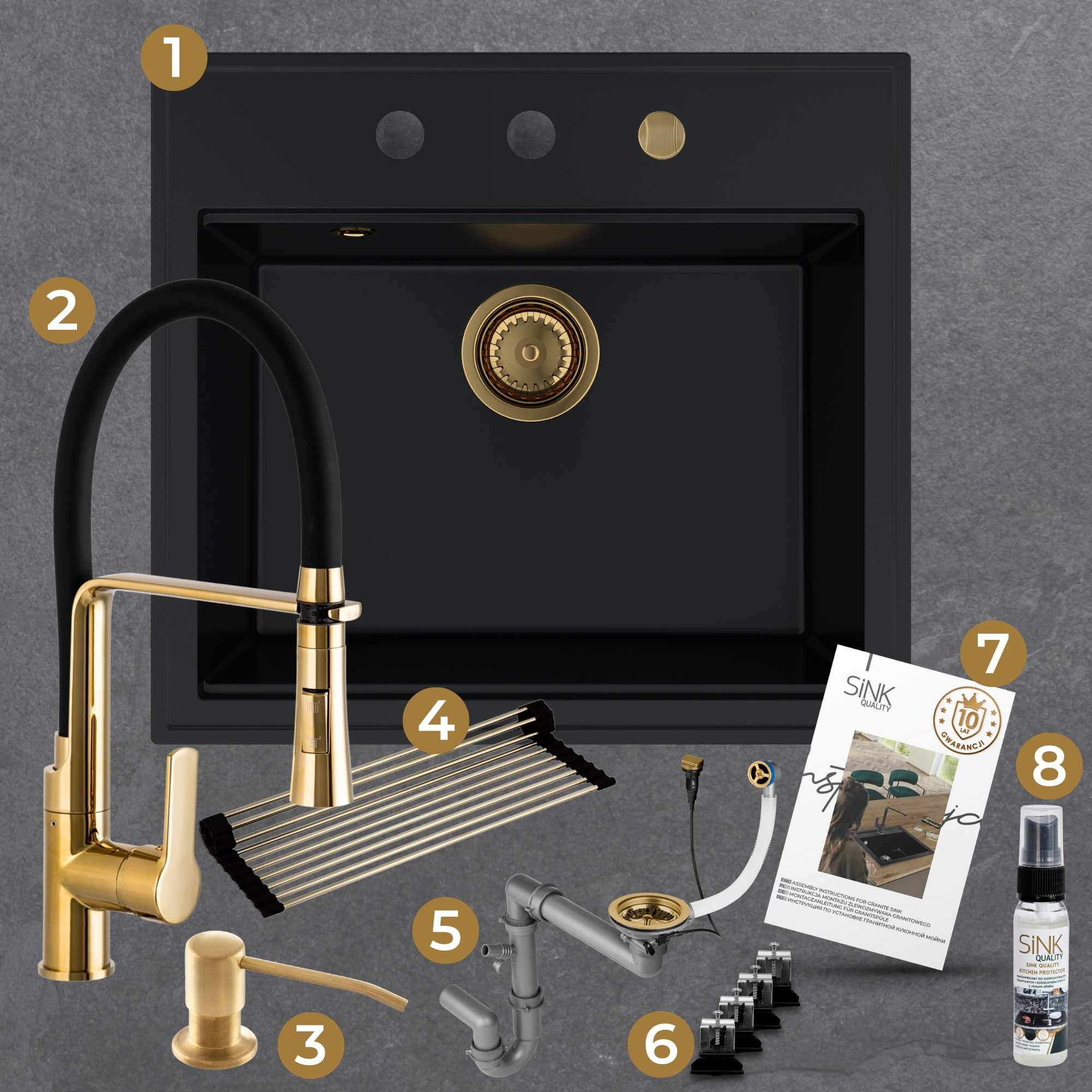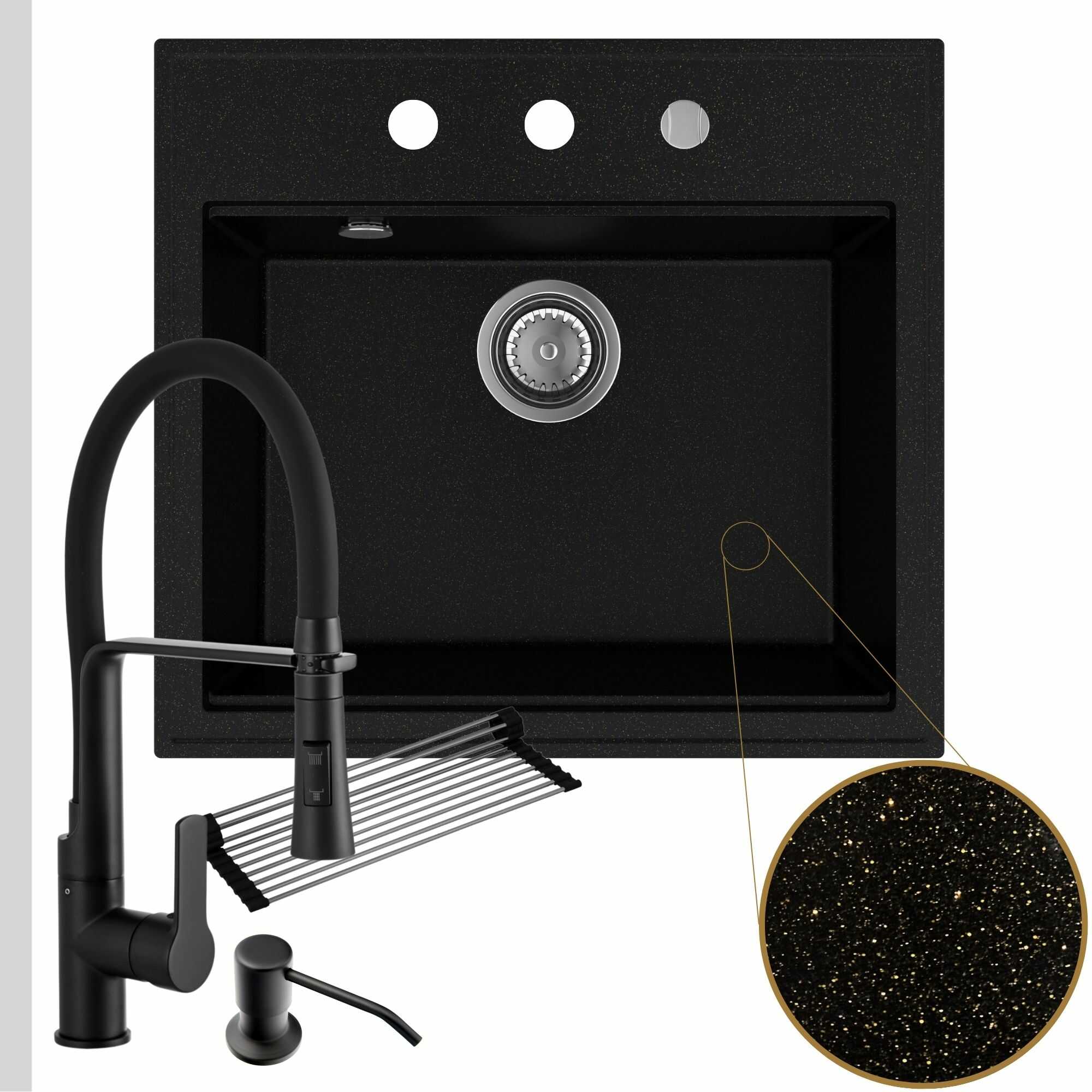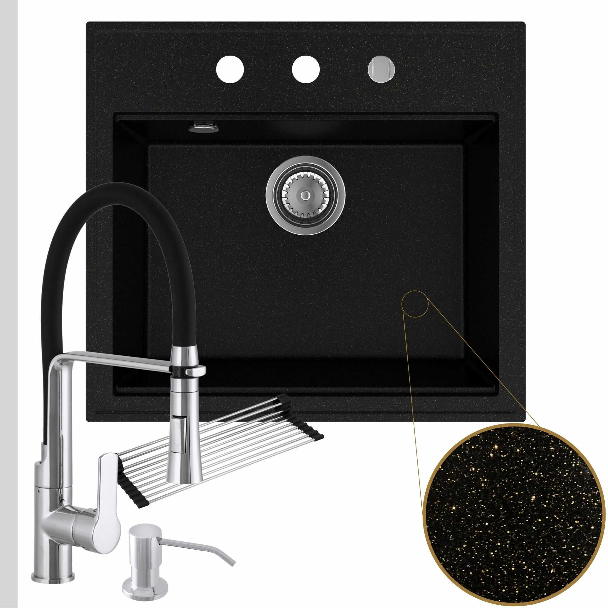 Praktyczna kuchnia: zlew + bateria + dozownik + syfon + mata