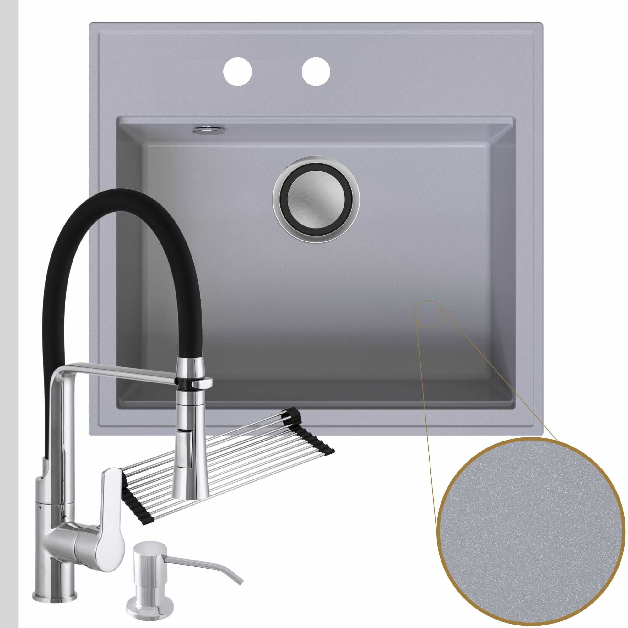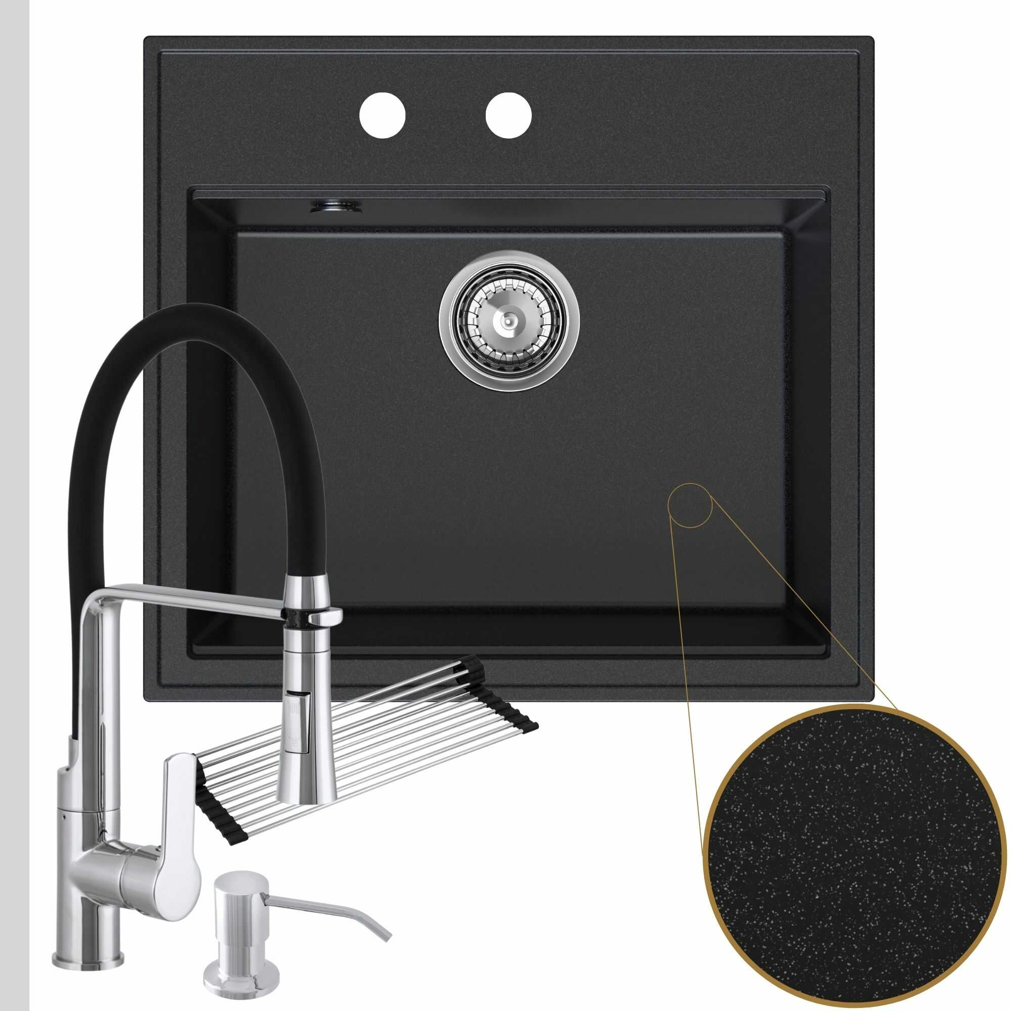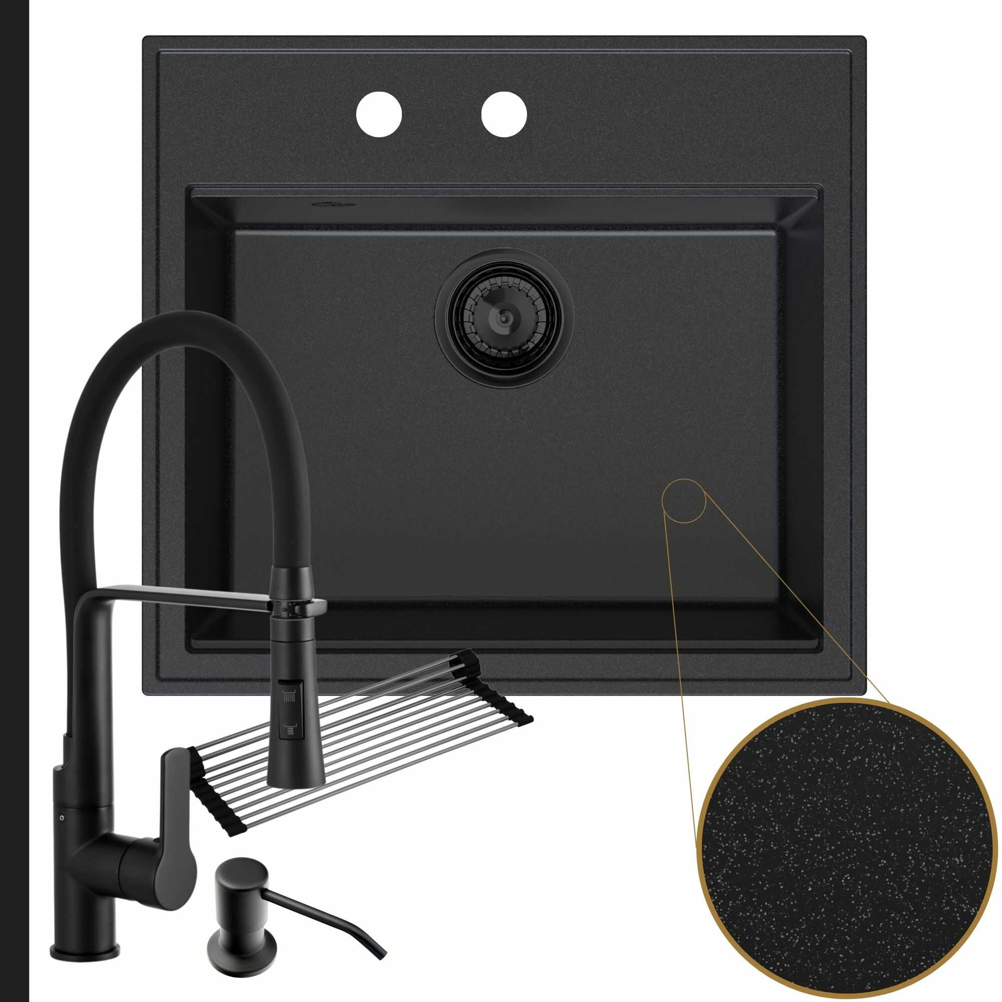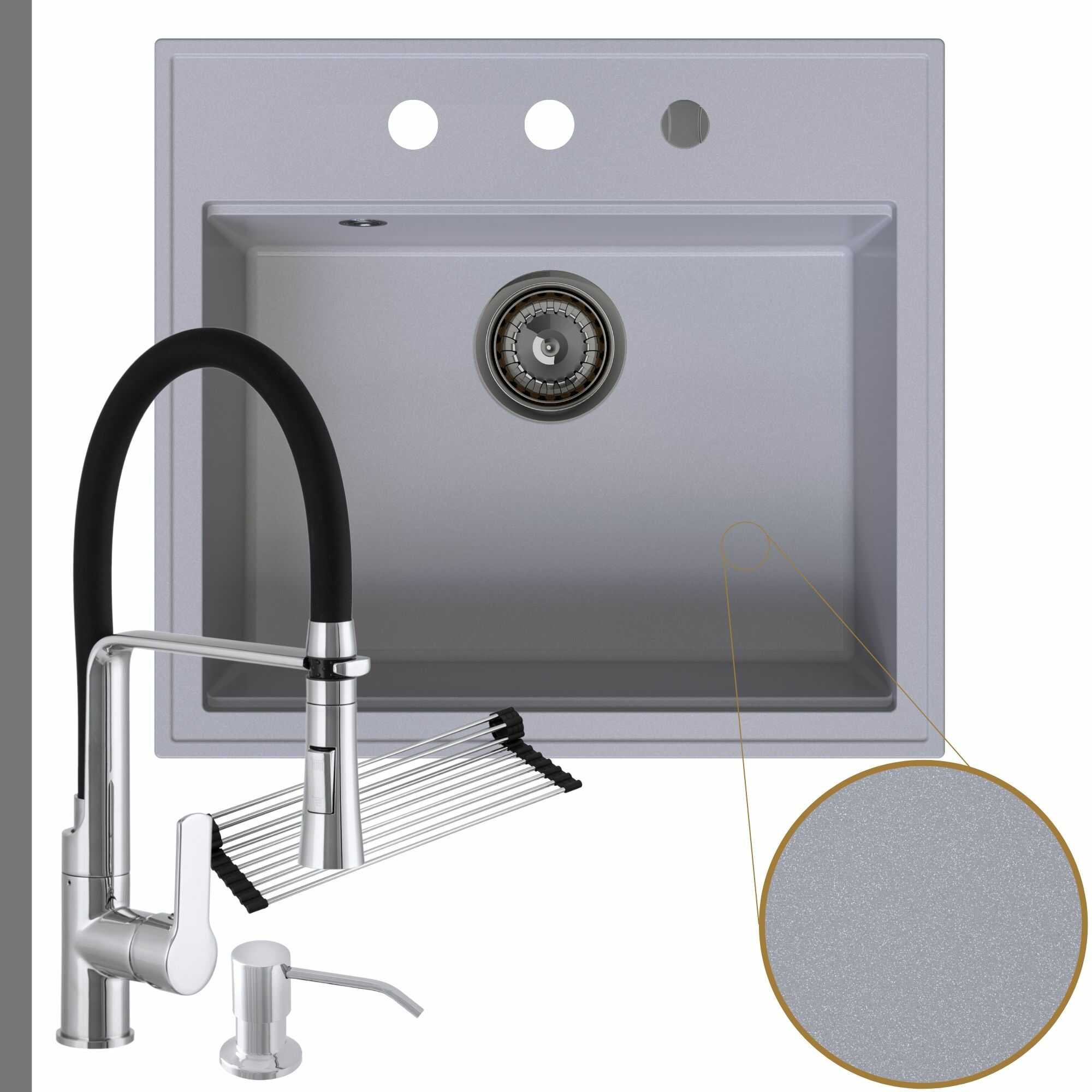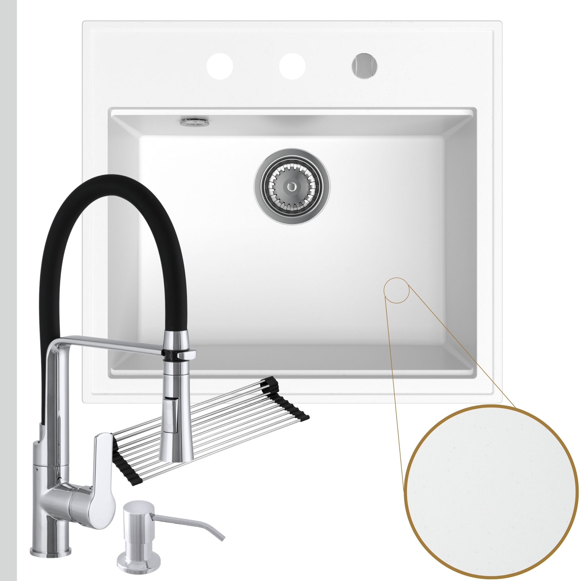 Praktyczna kuchnia: zlew + bateria + dozownik + syfon + mata