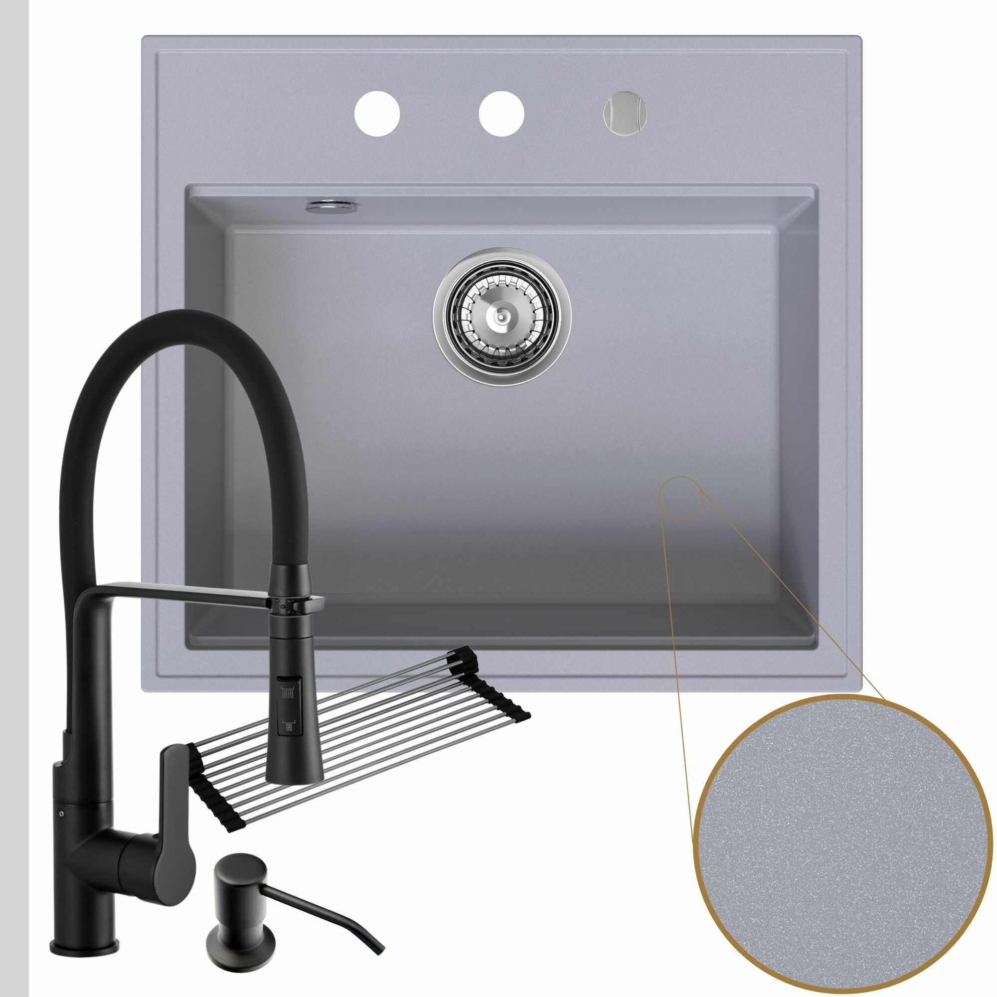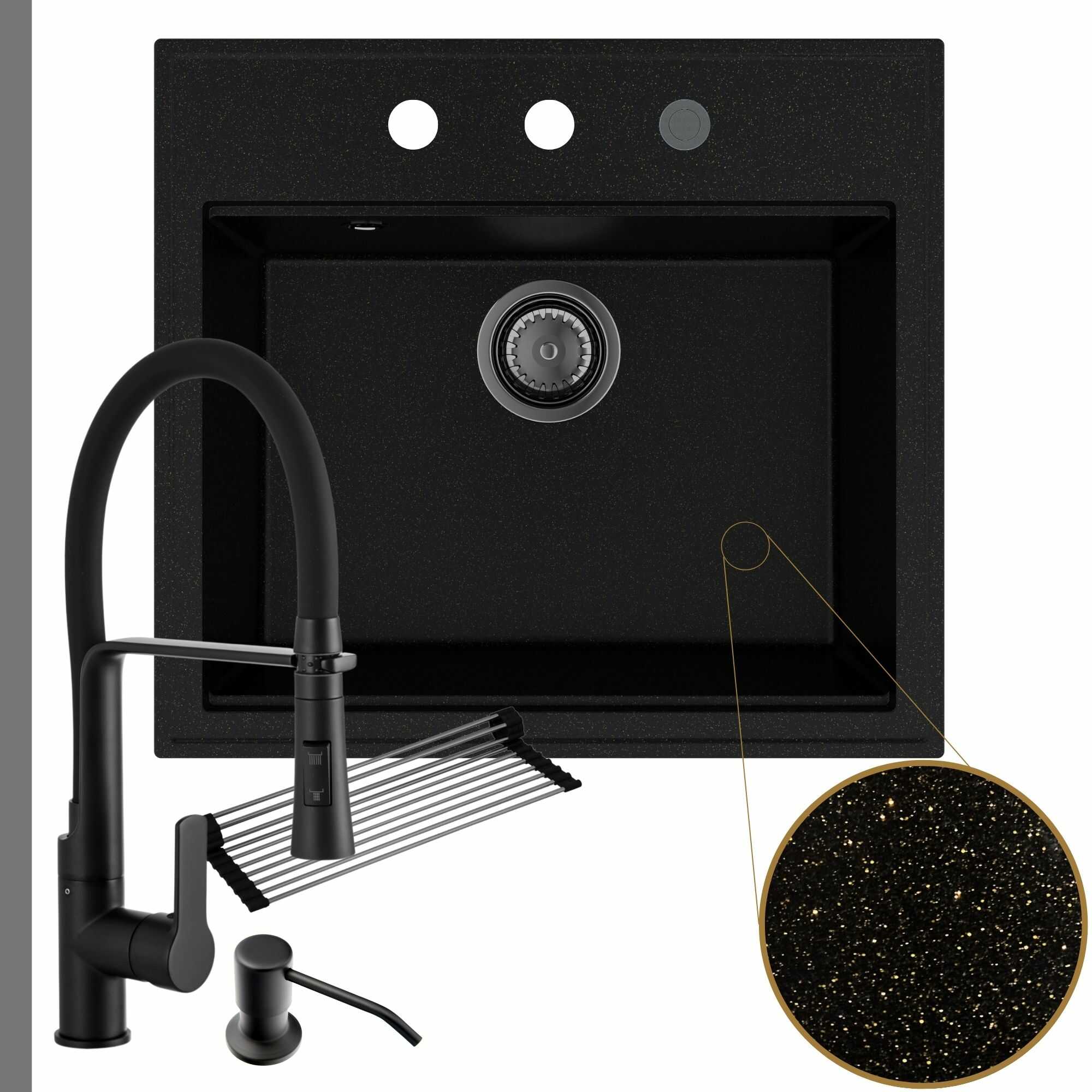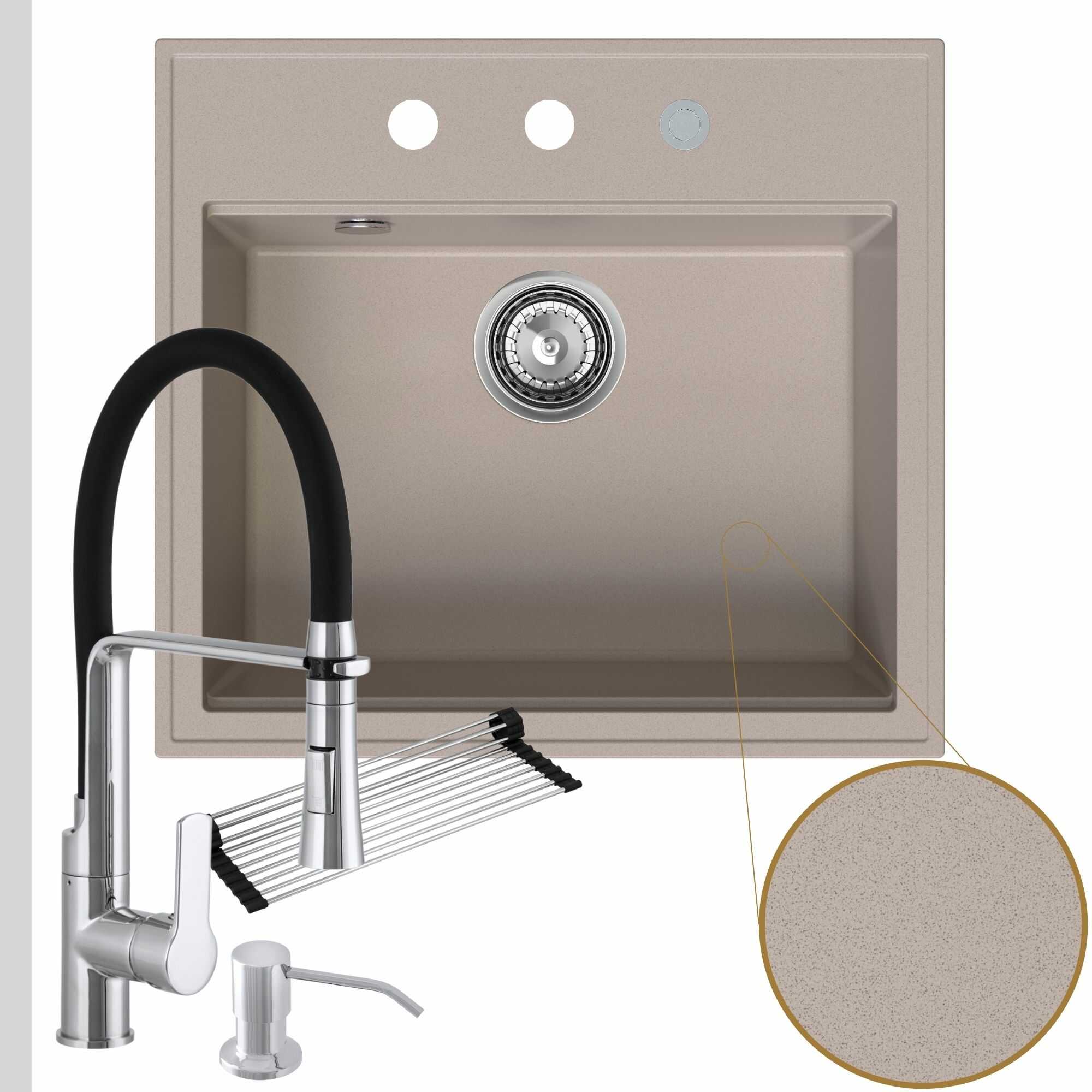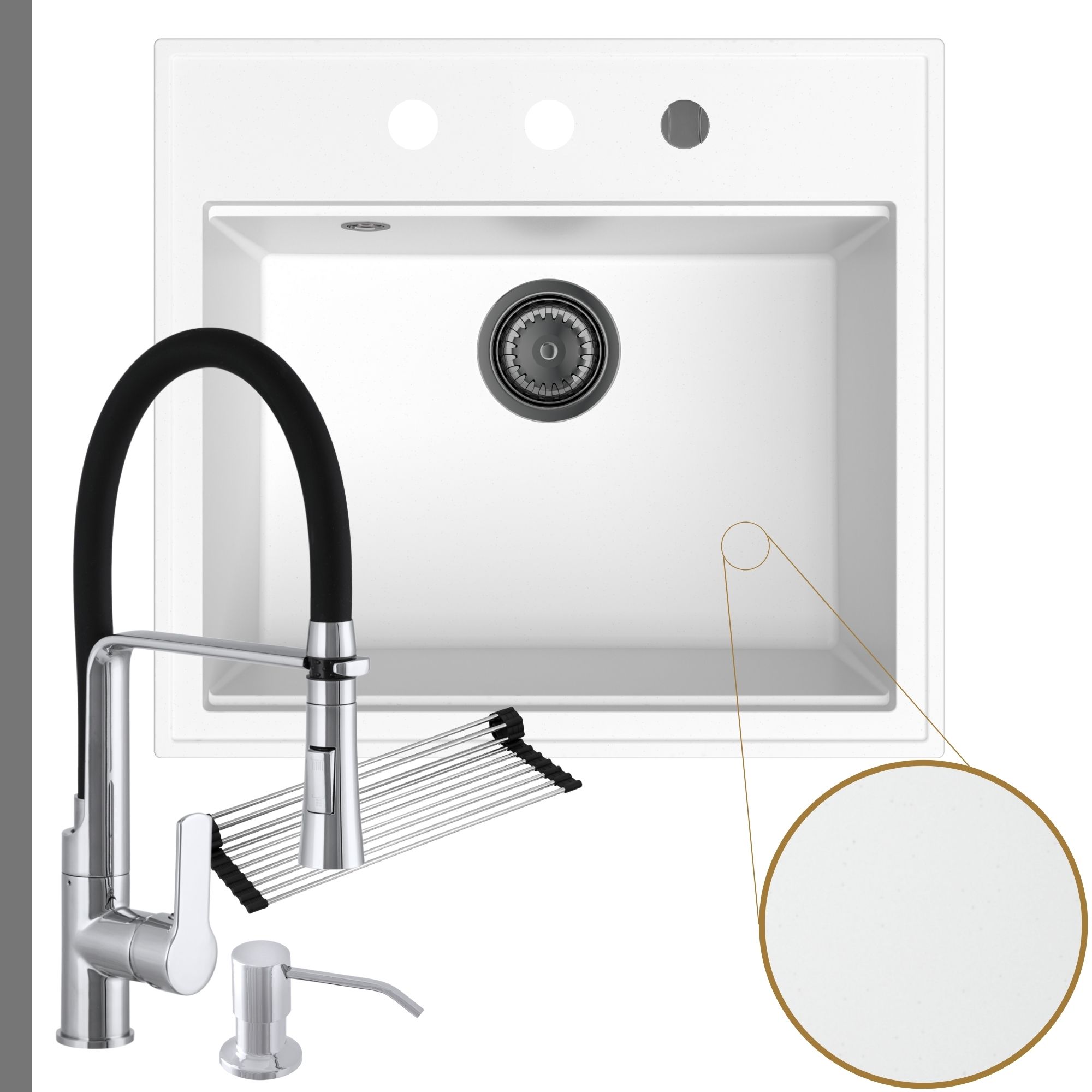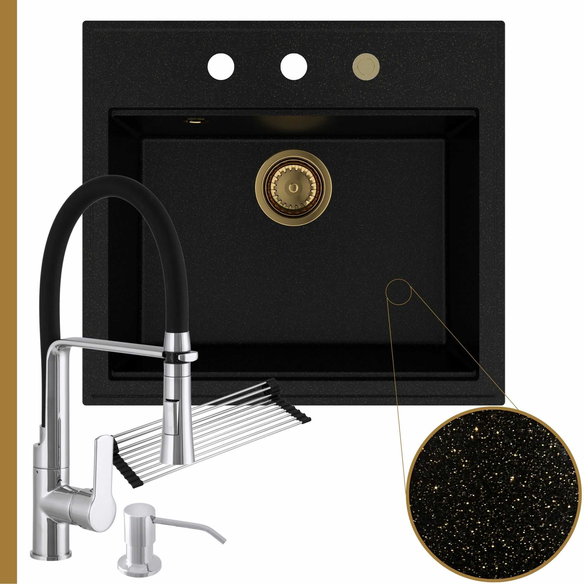 Praktyczna kuchnia: zlew + bateria + dozownik + syfon + mata