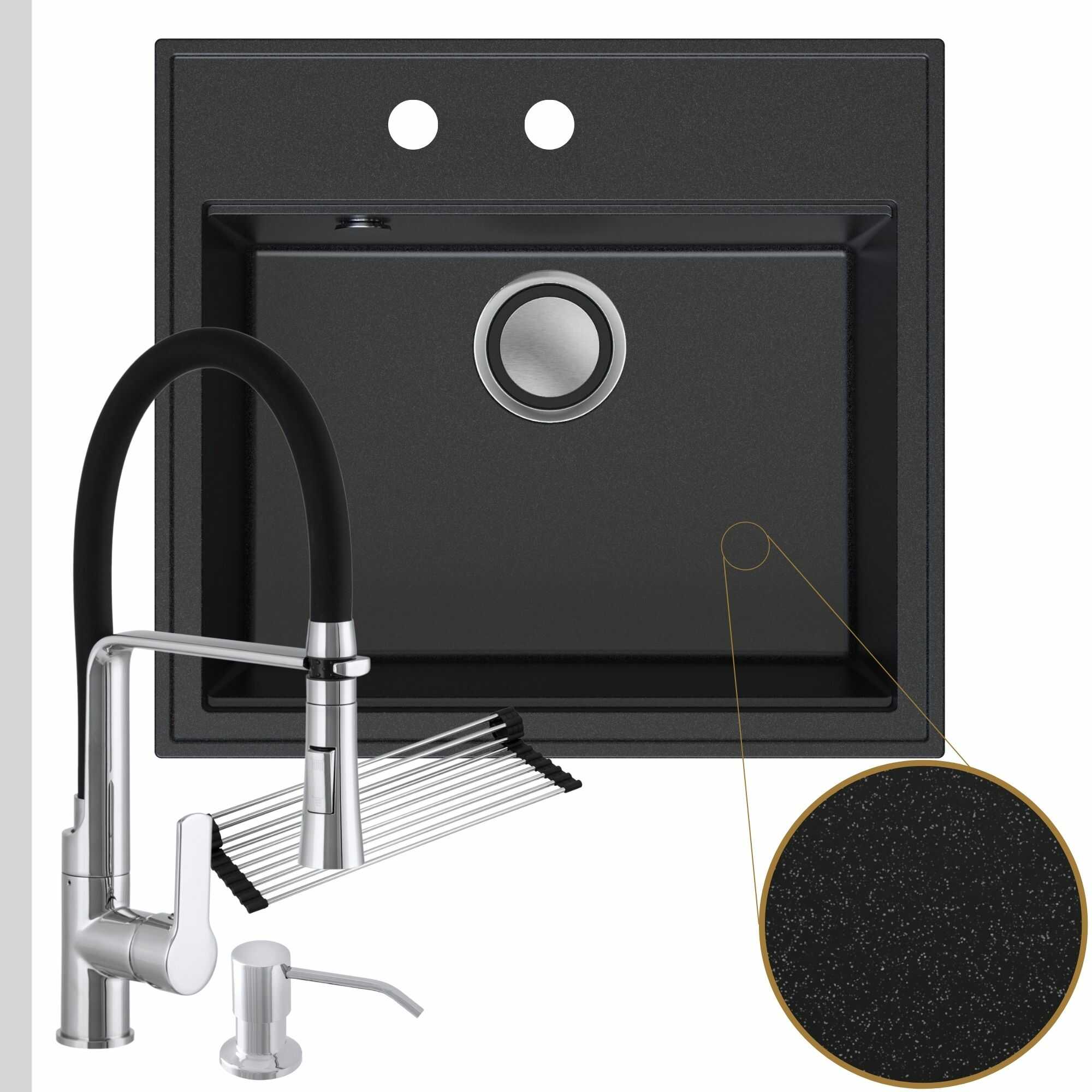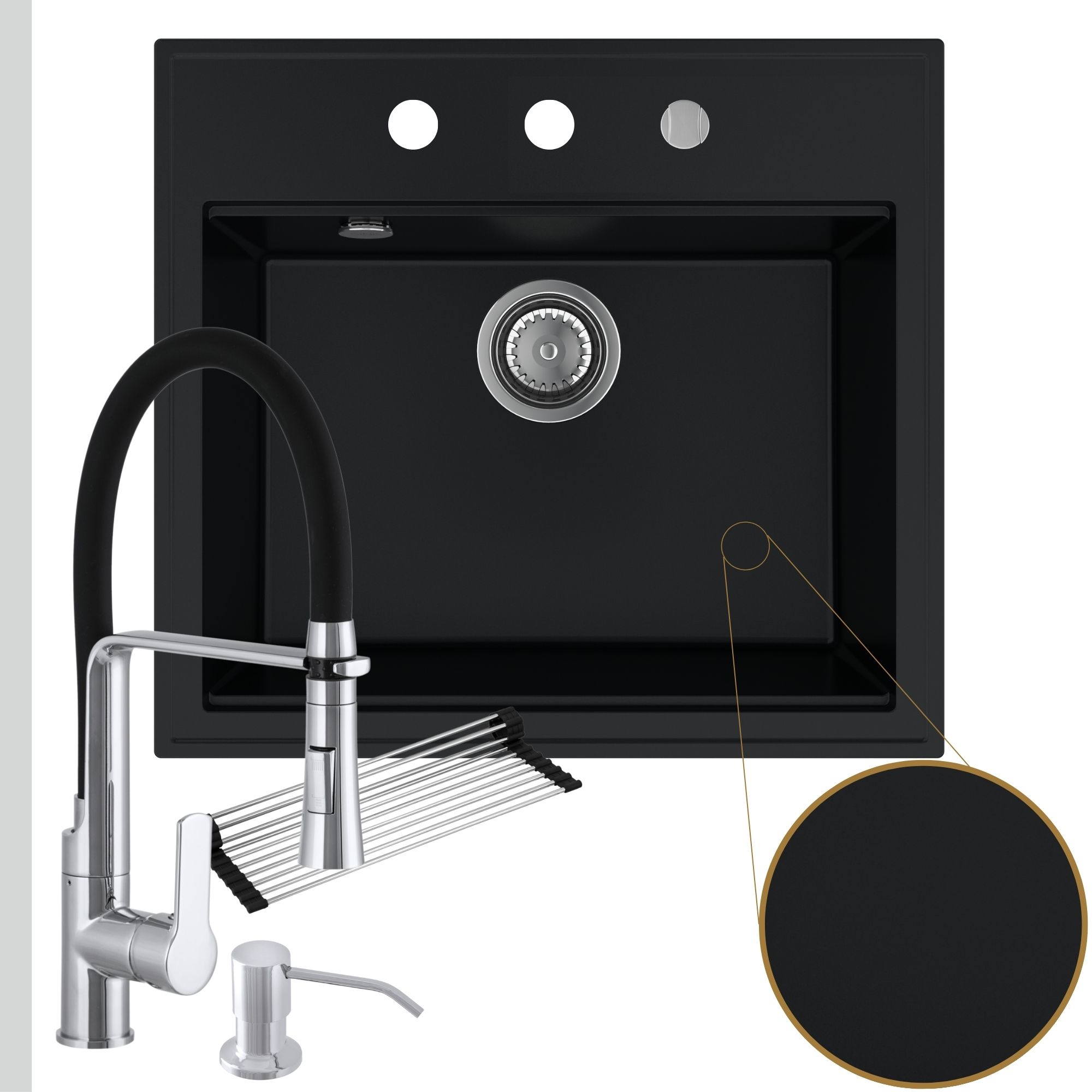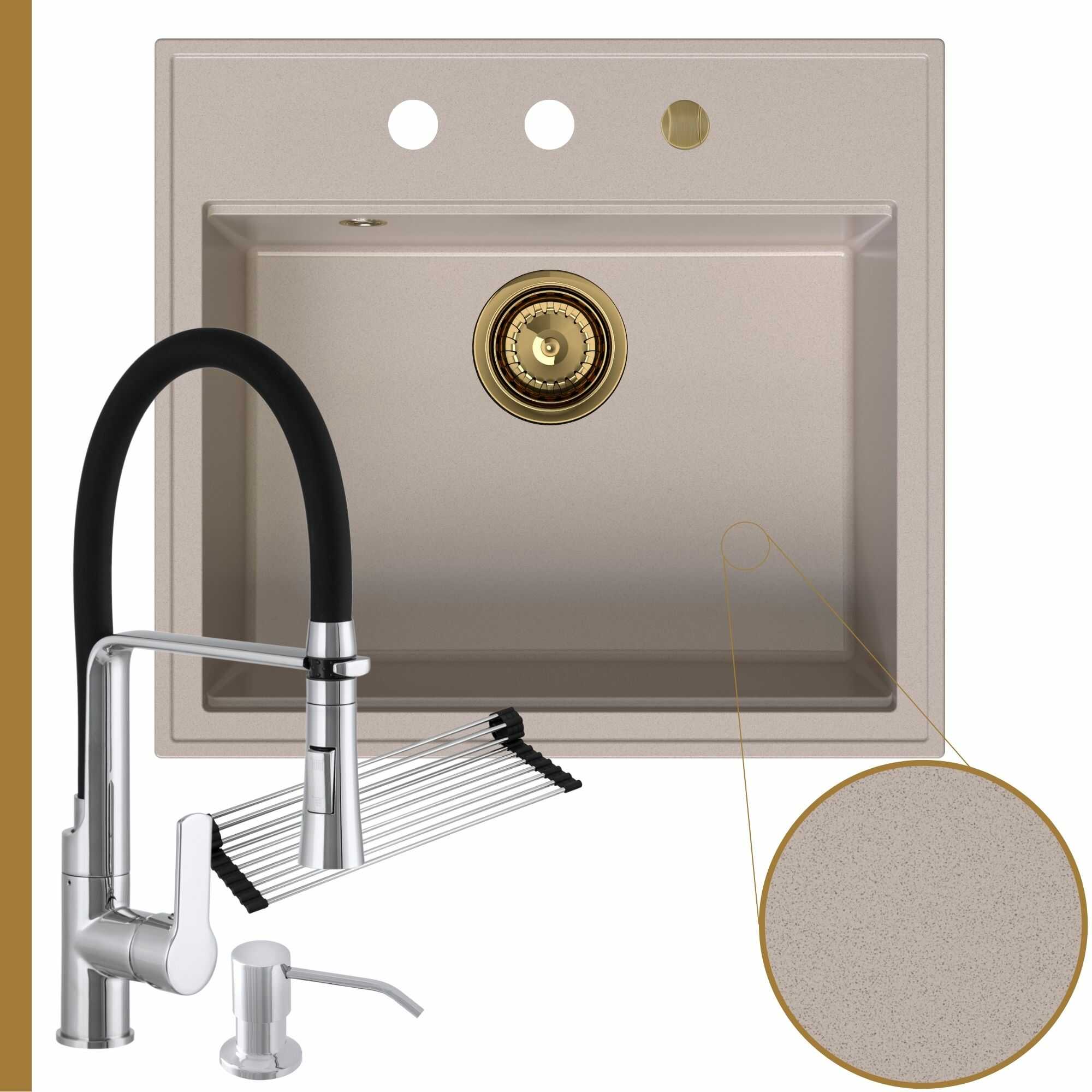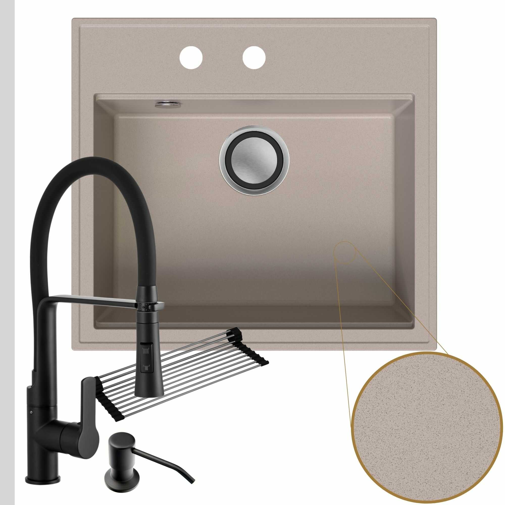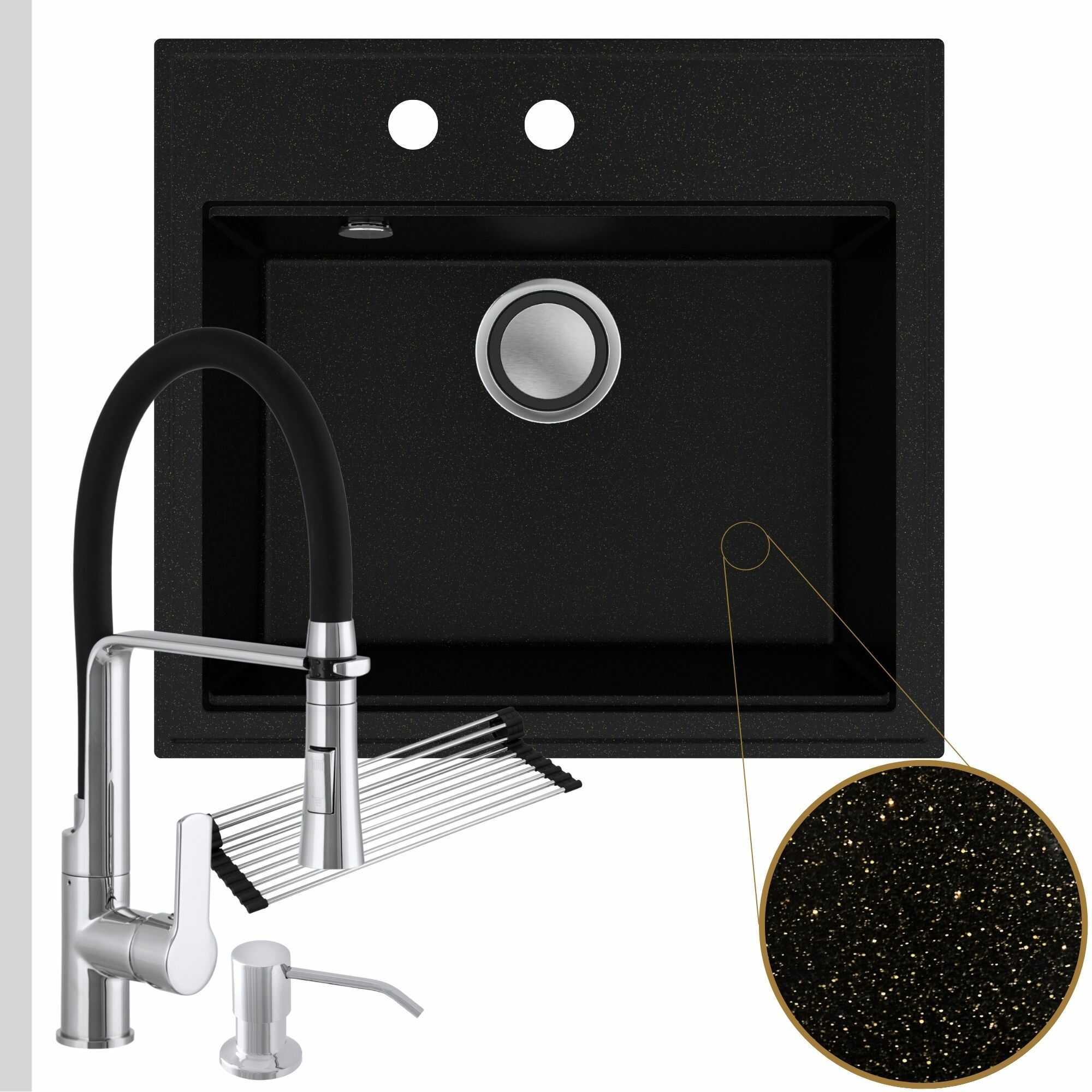 Praktyczna kuchnia: zlew + bateria + dozownik + syfon + mata