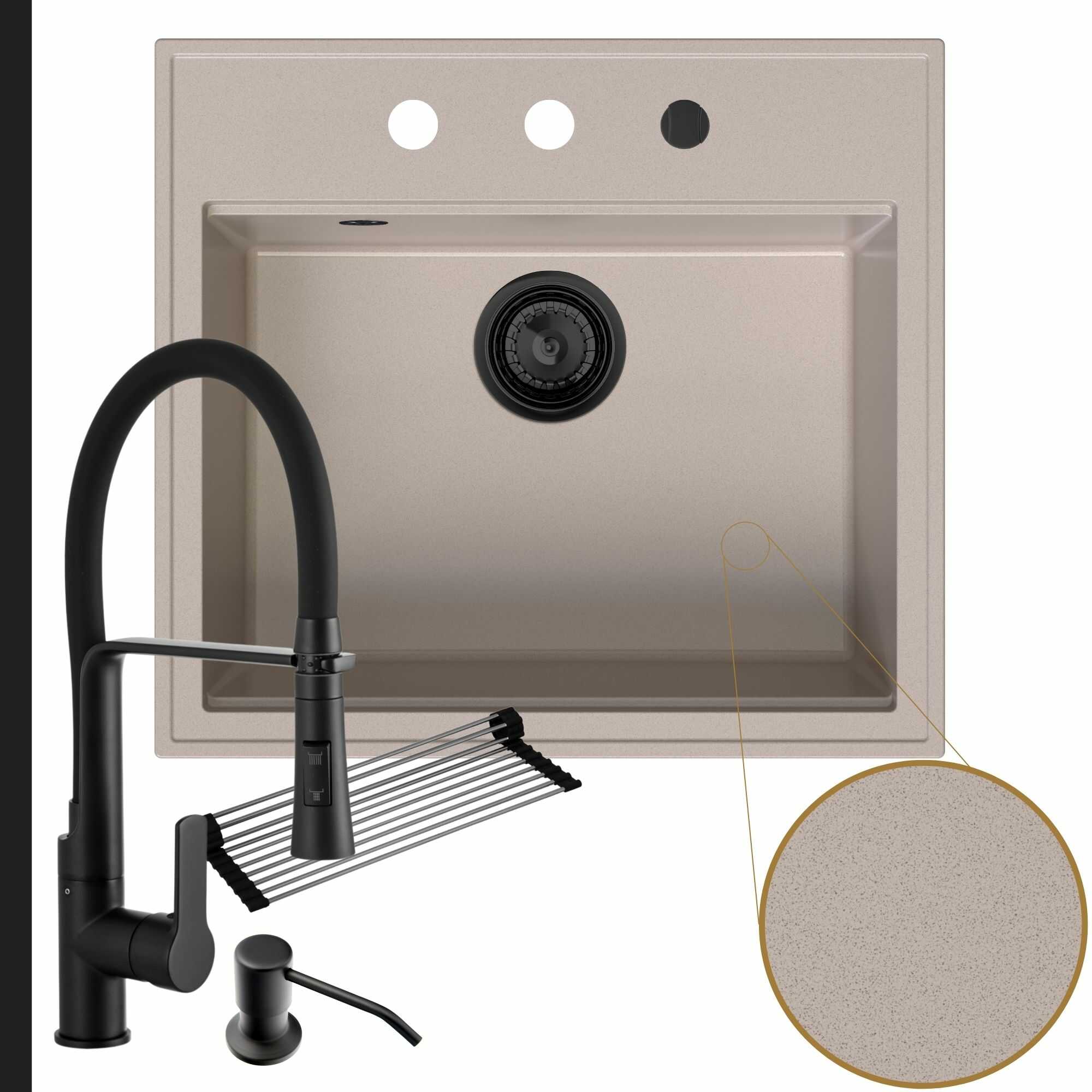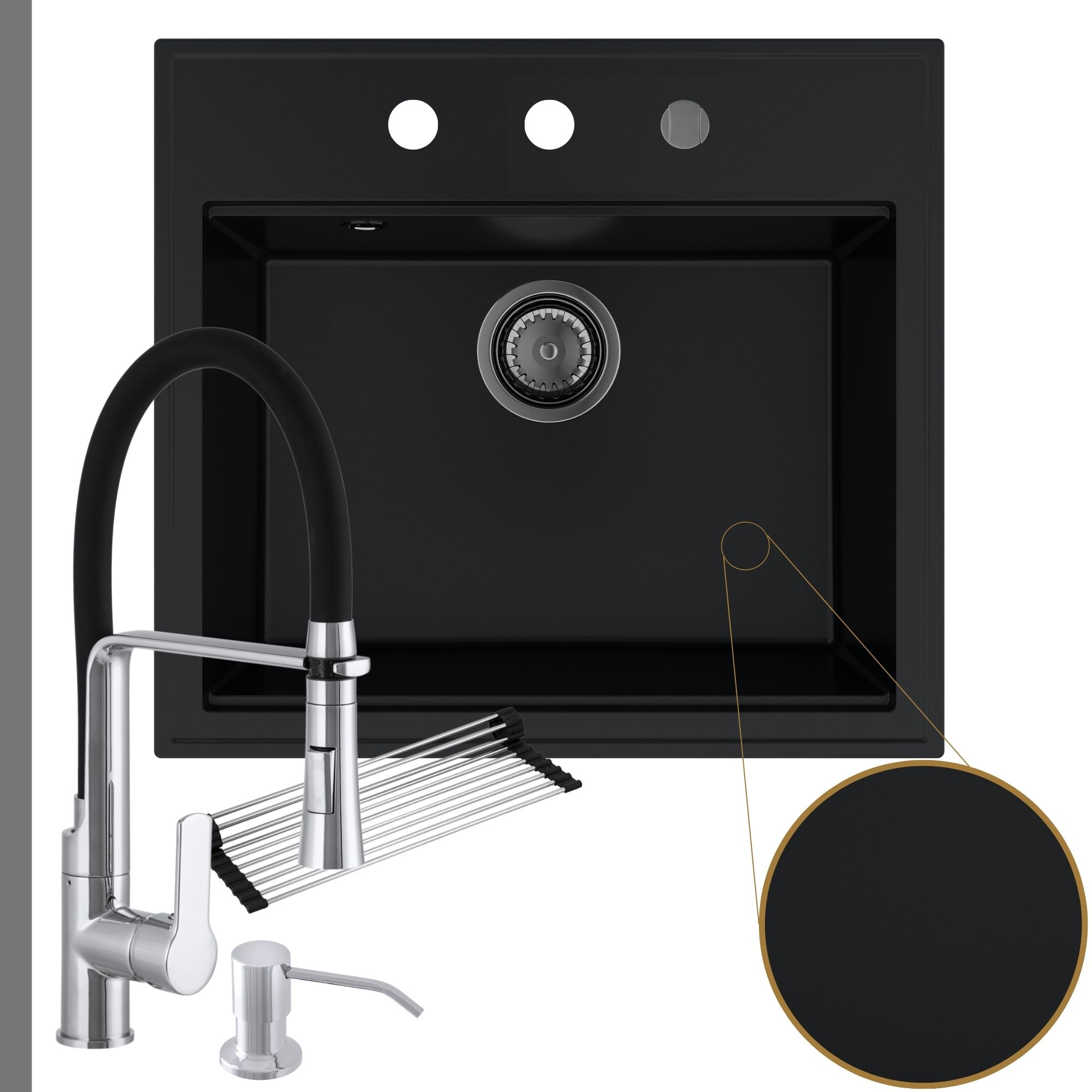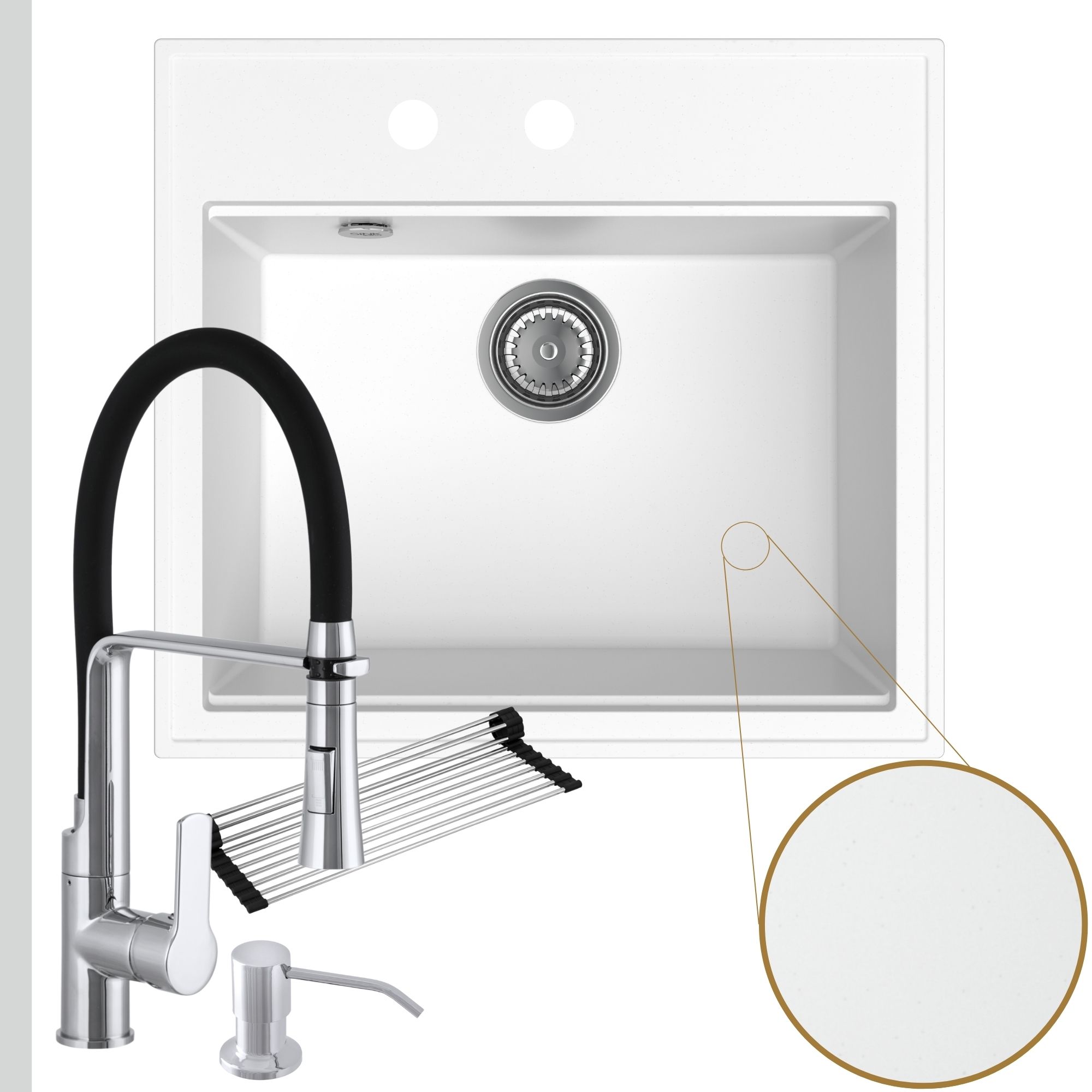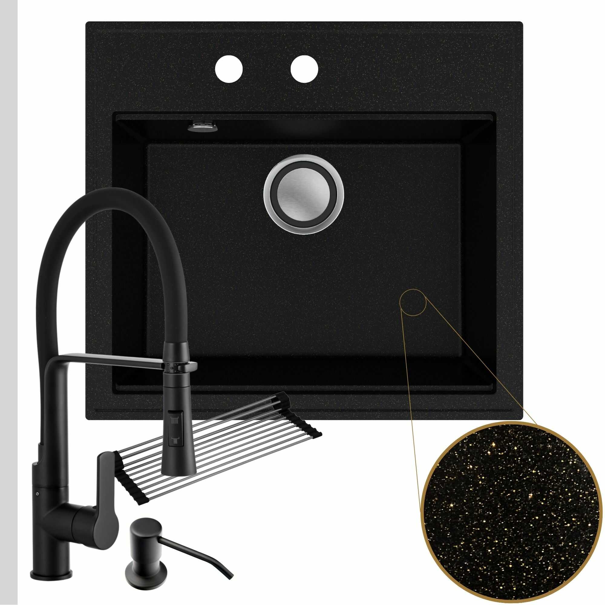 Praktyczna kuchnia: zlew + bateria + dozownik + syfon + mata