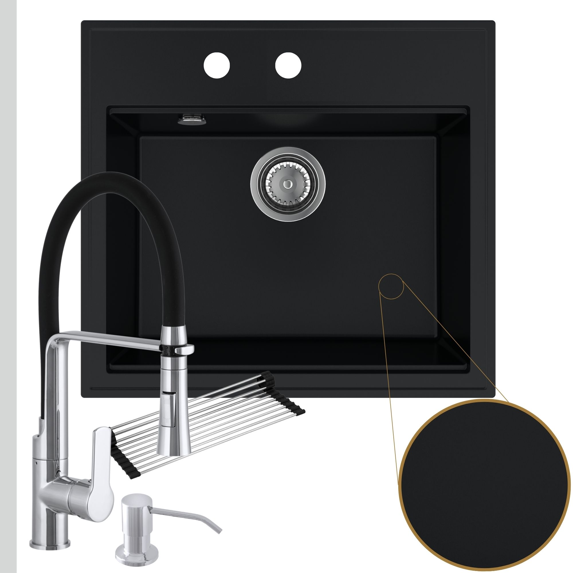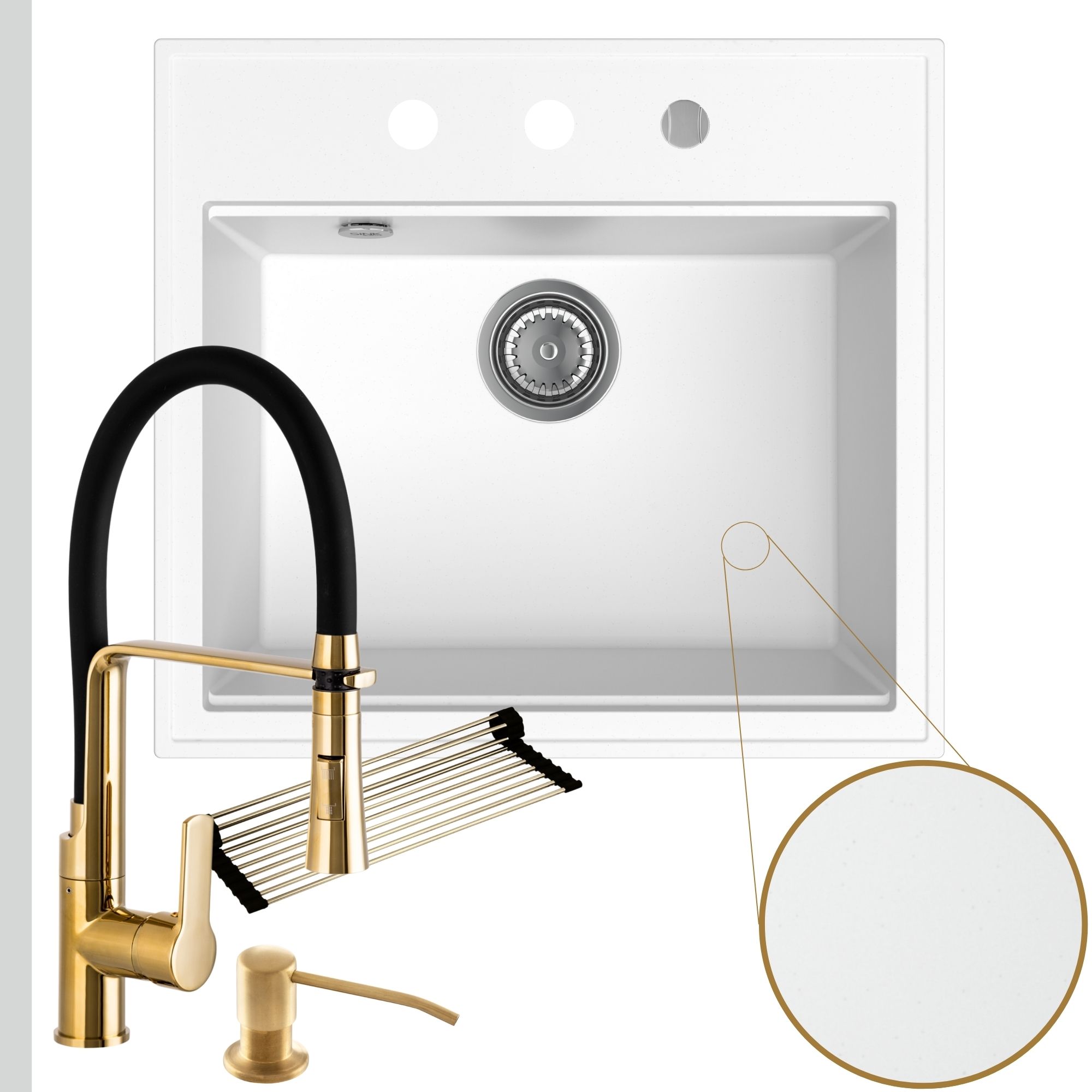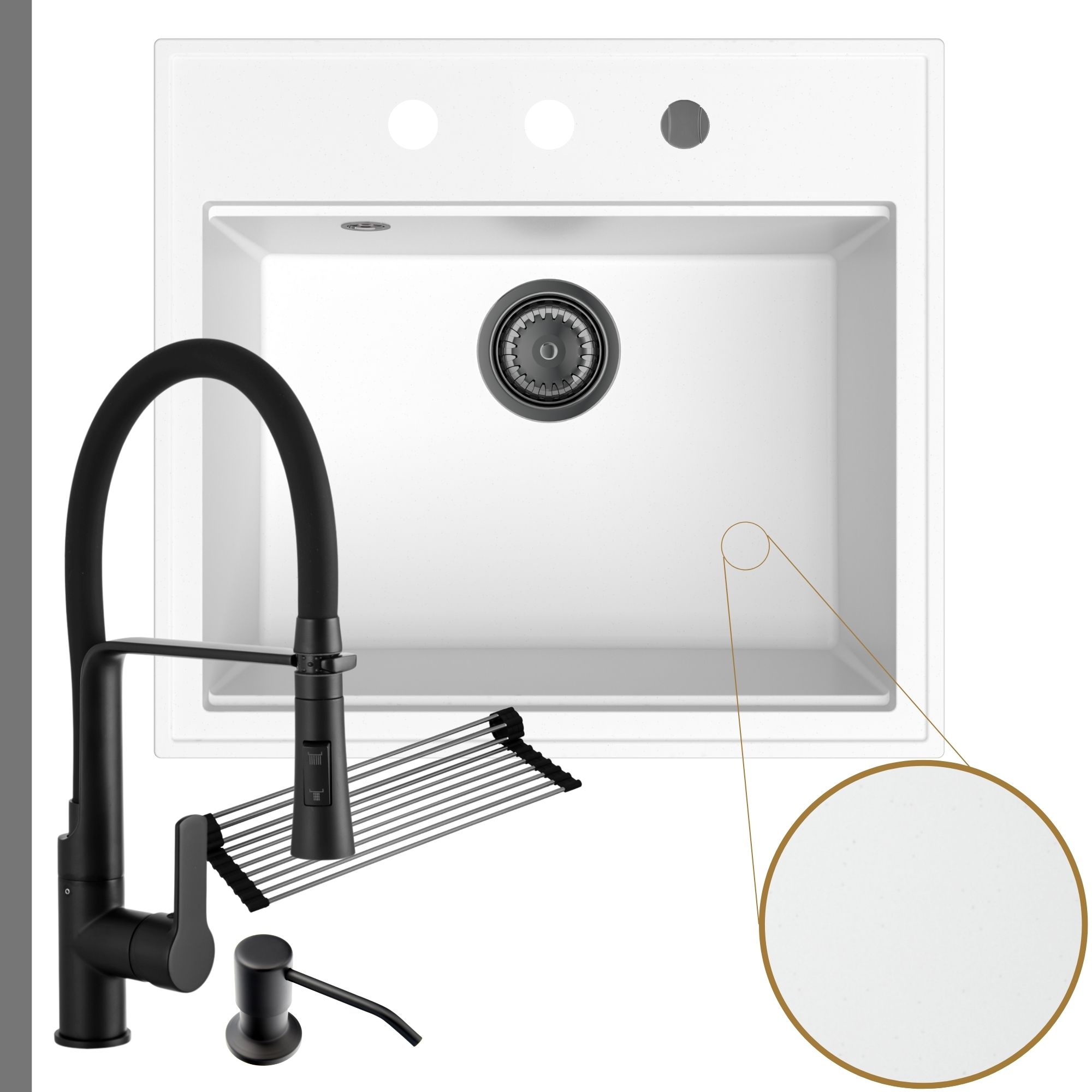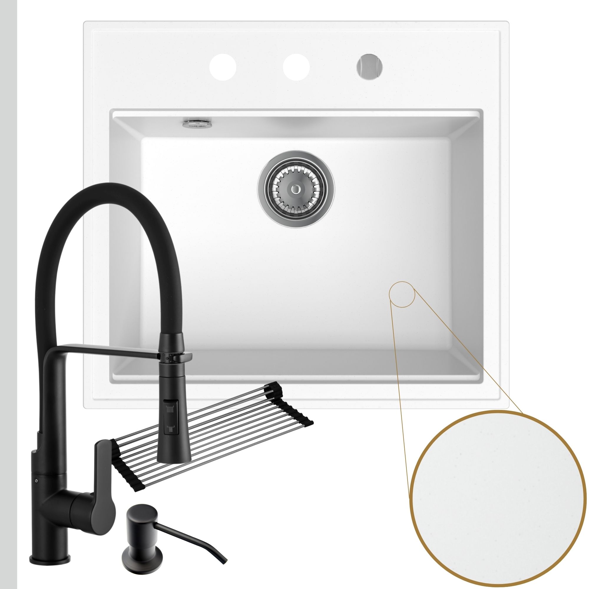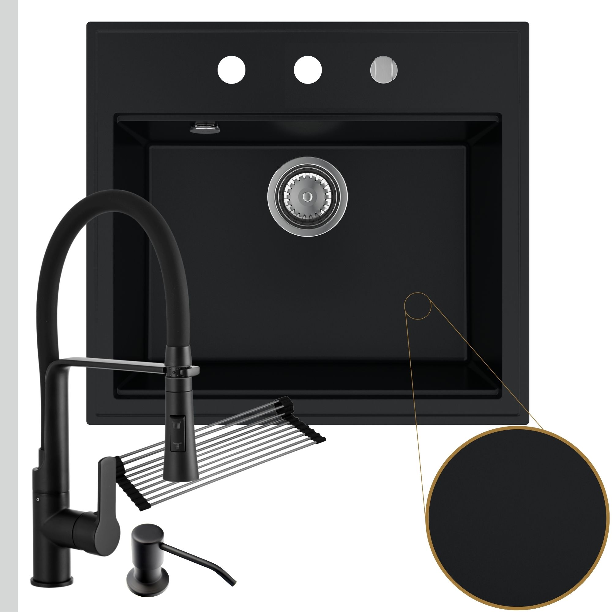 Praktyczna kuchnia: zlew + bateria + dozownik + syfon + mata