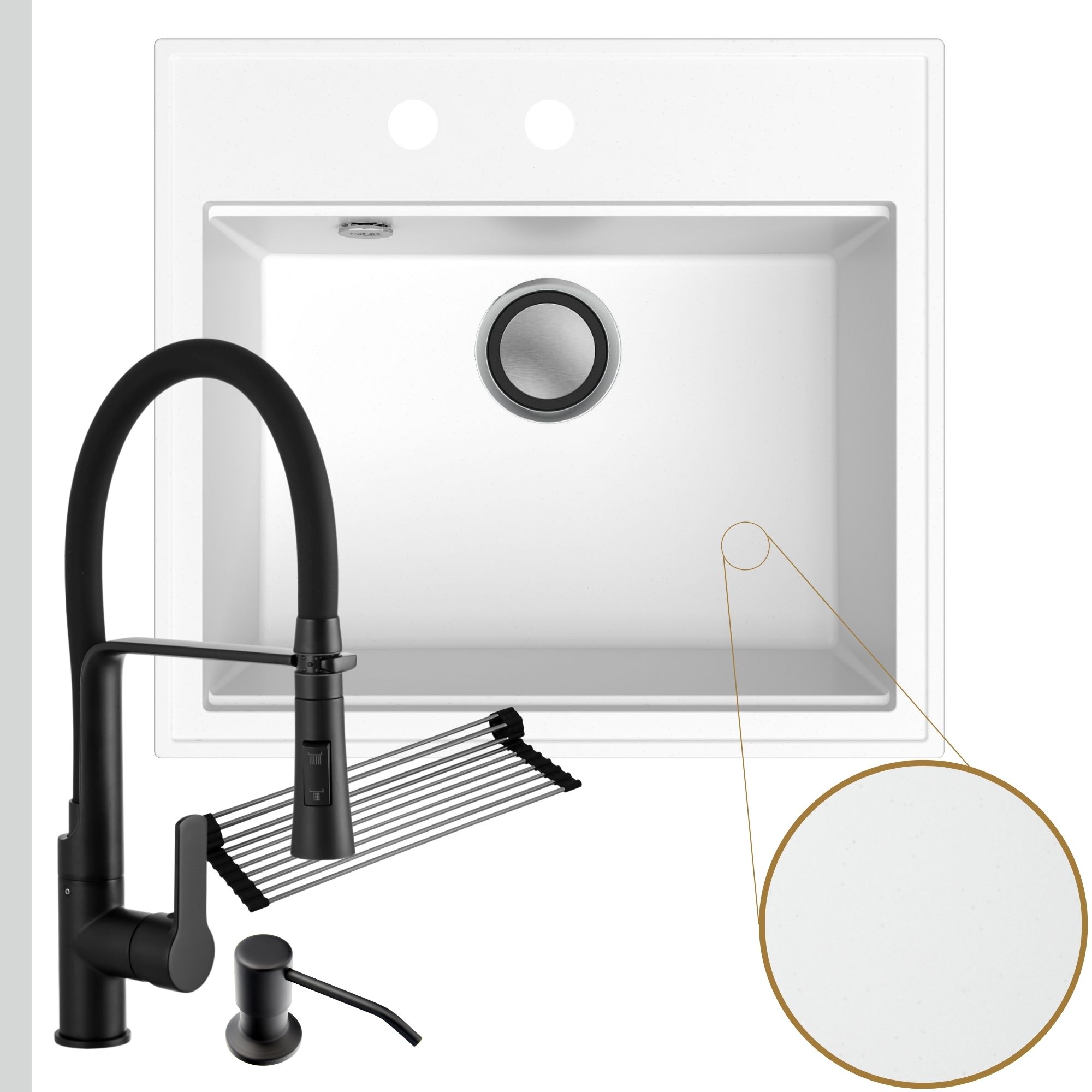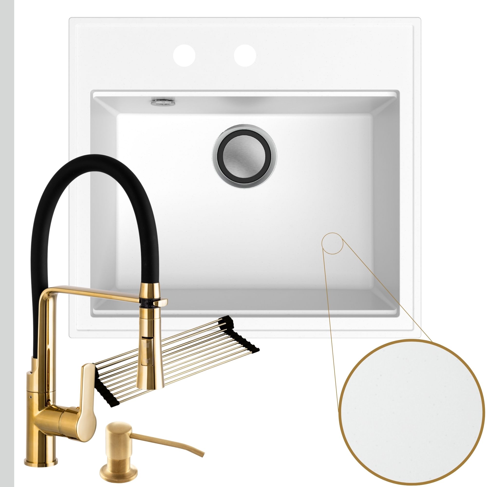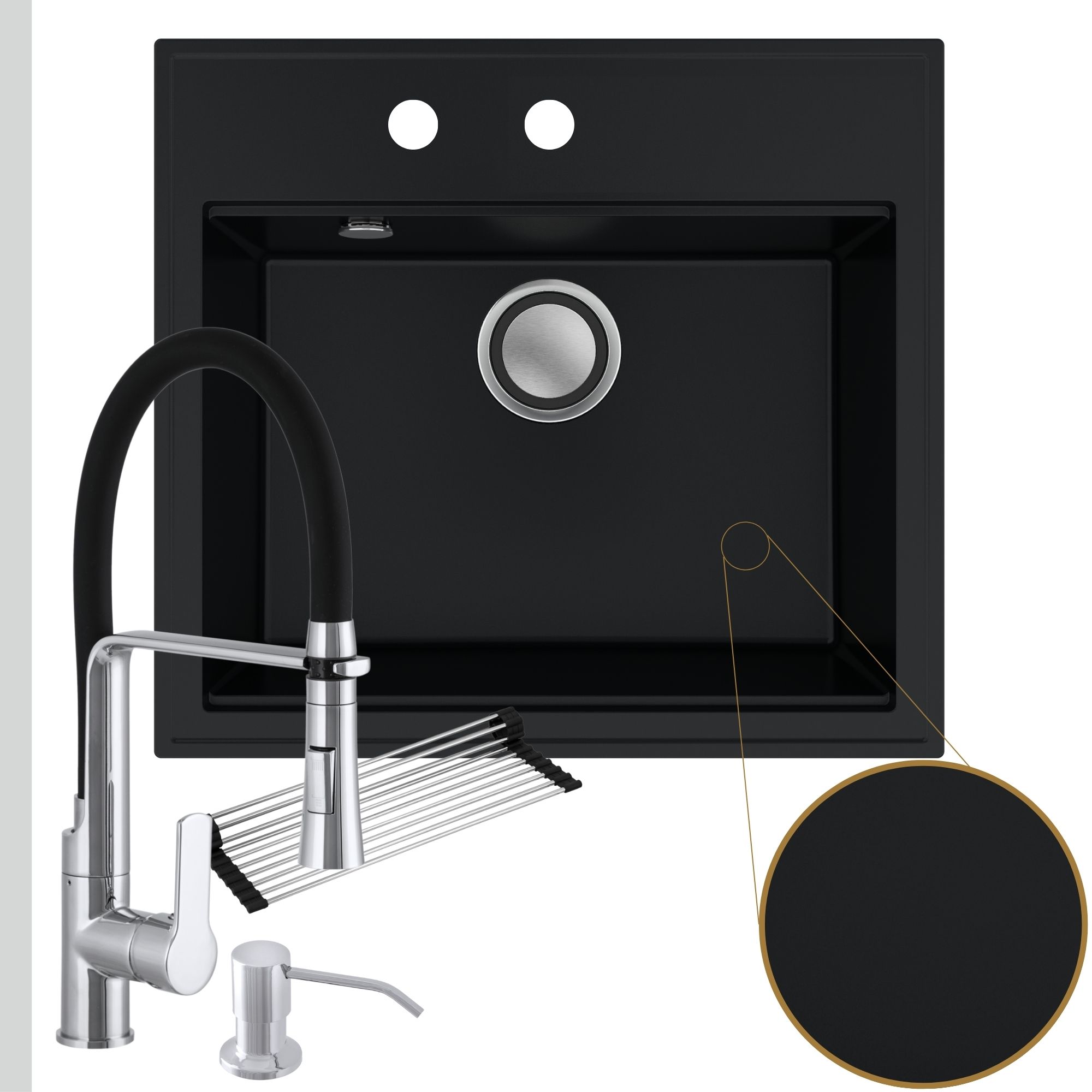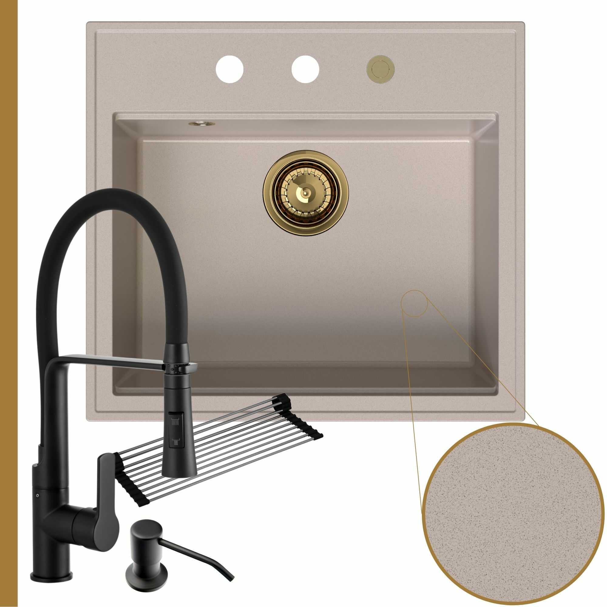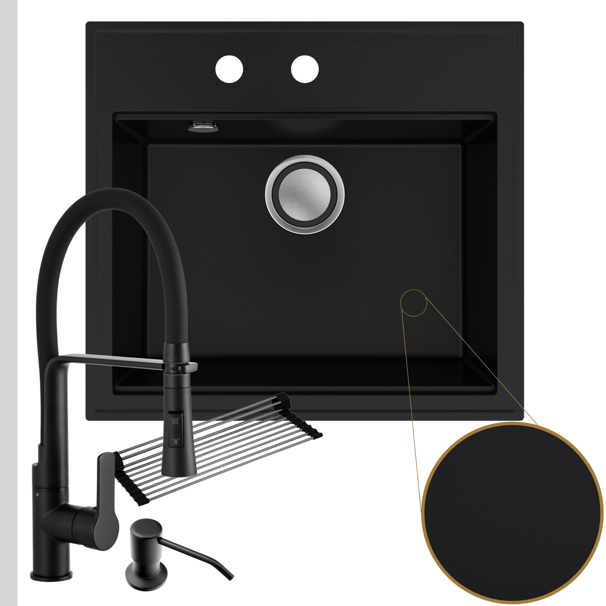 Praktyczna kuchnia: zlew + bateria + dozownik + syfon + mata