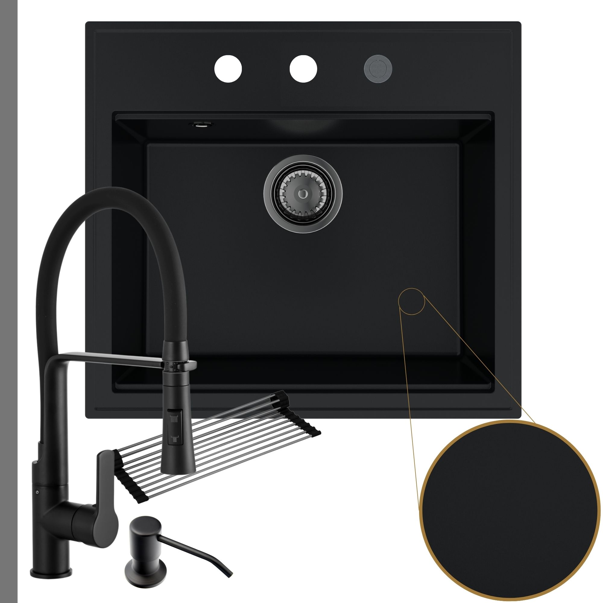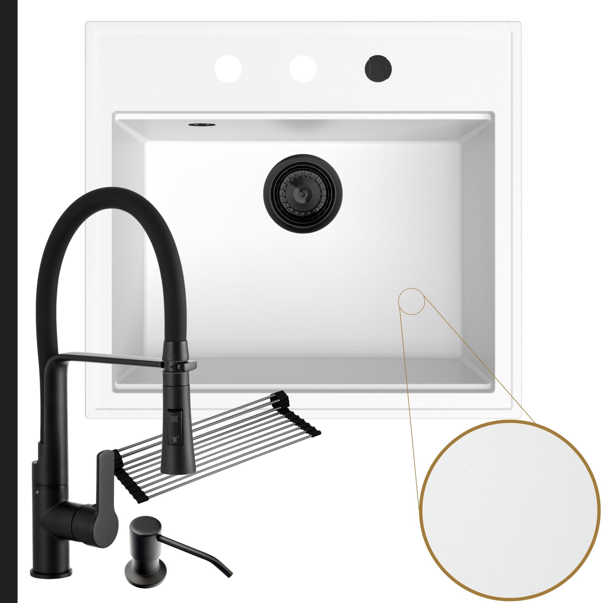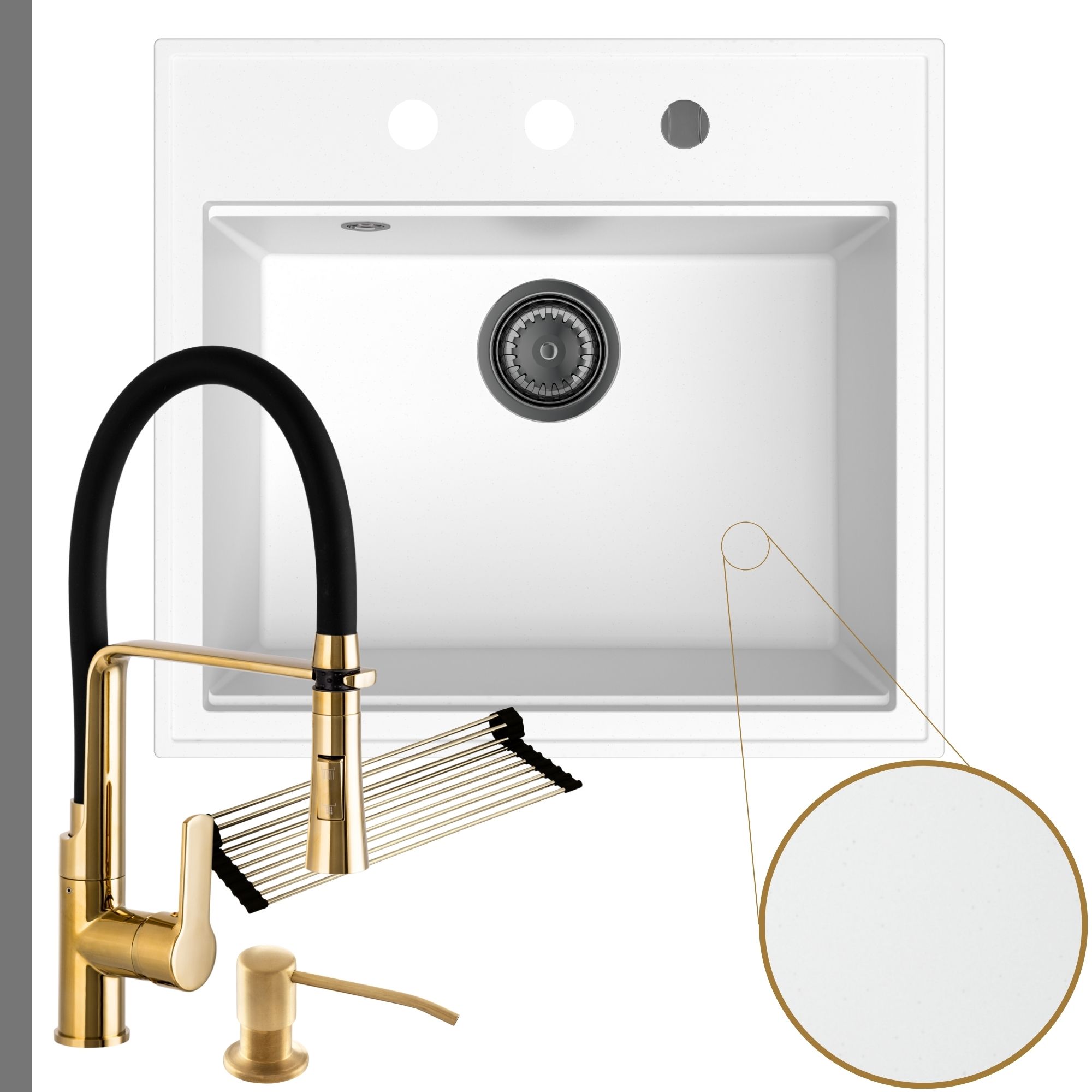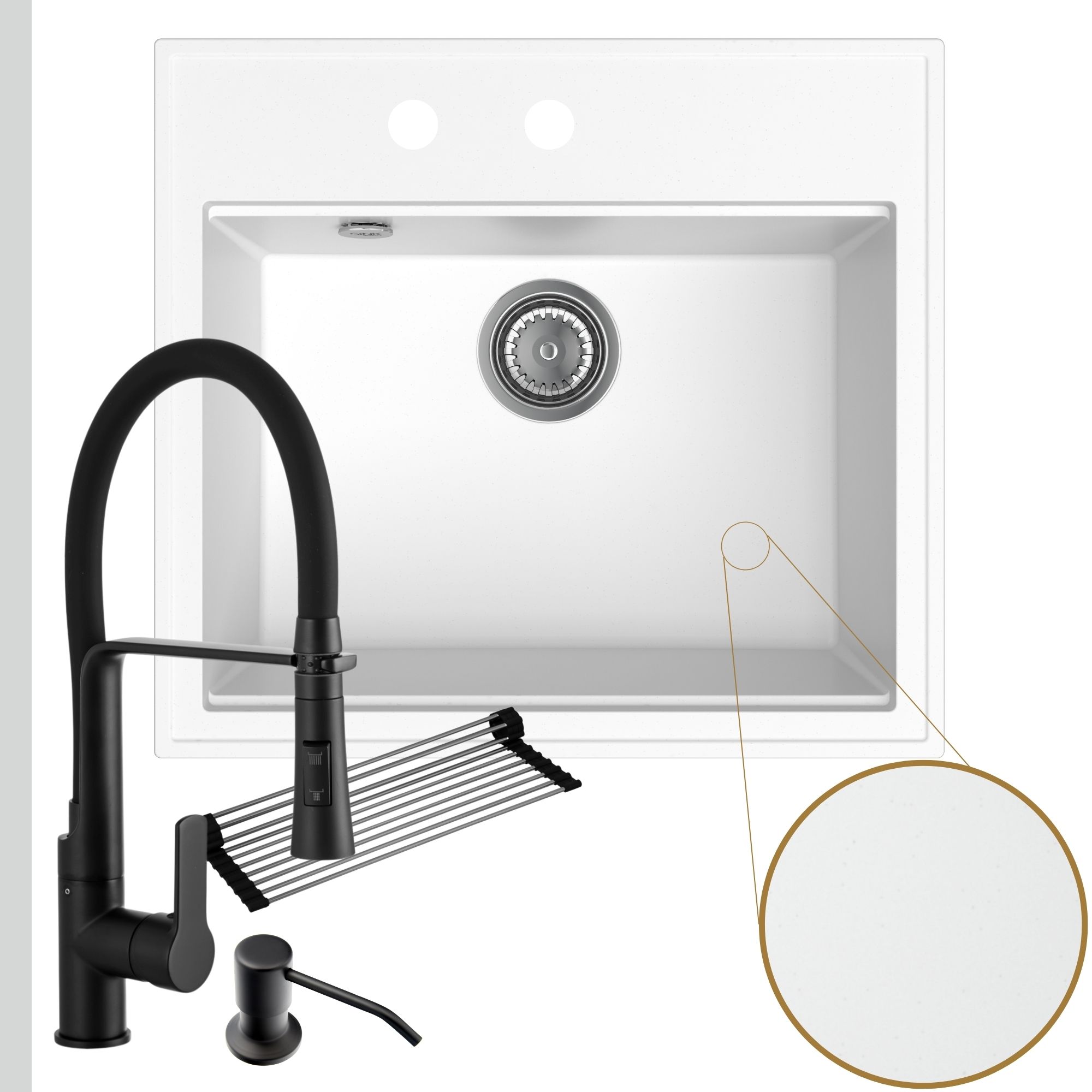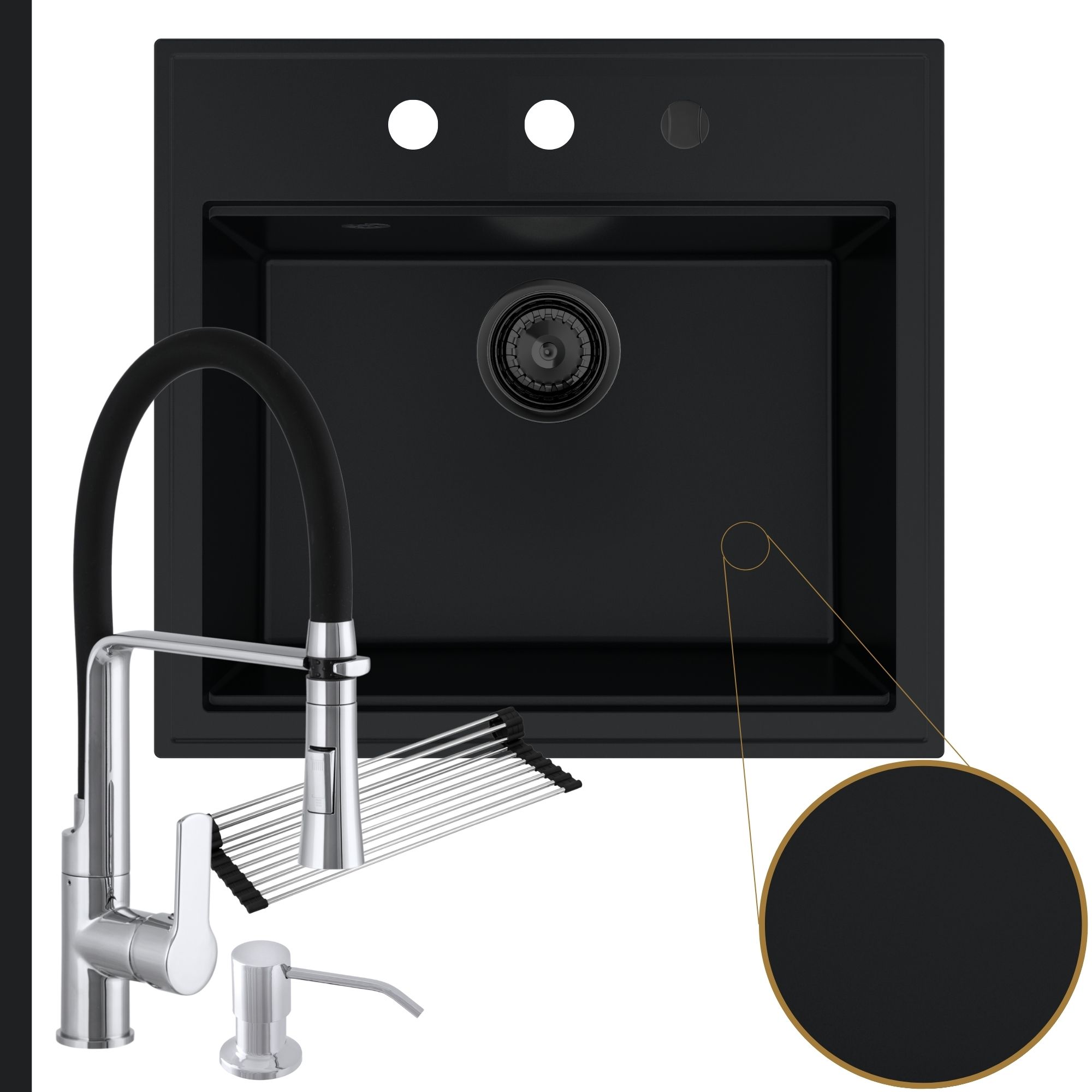 Praktyczna kuchnia: zlew + bateria + dozownik + syfon + mata
