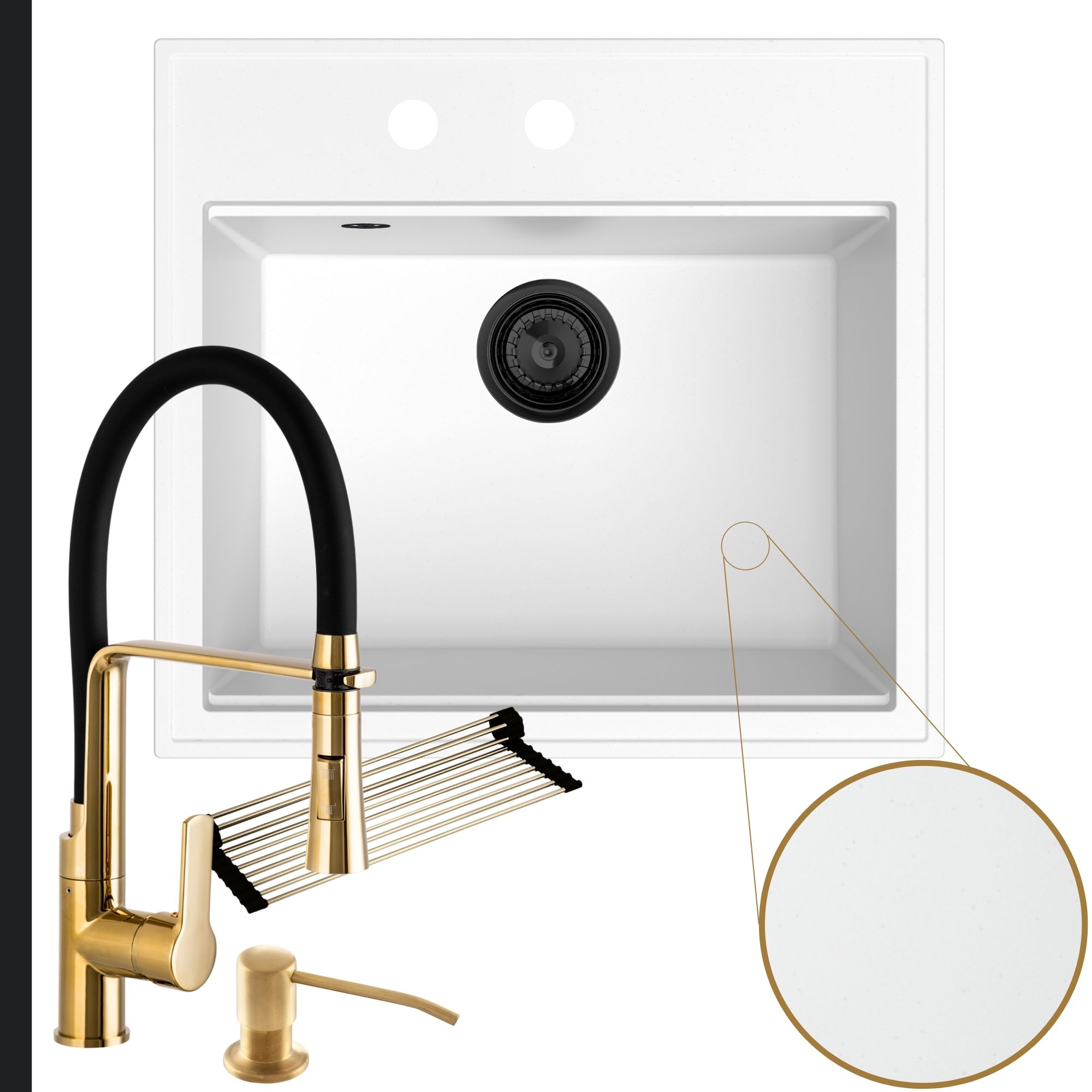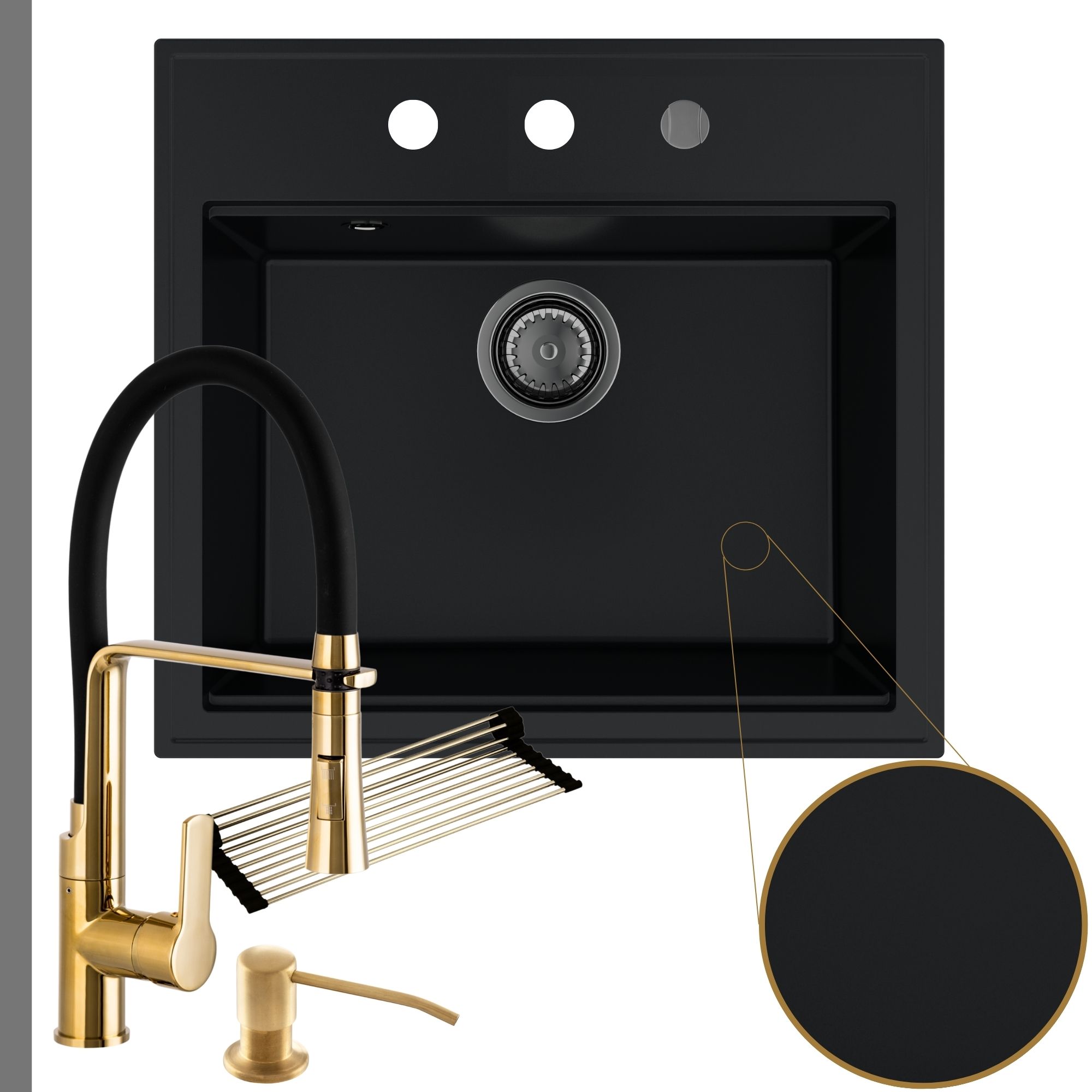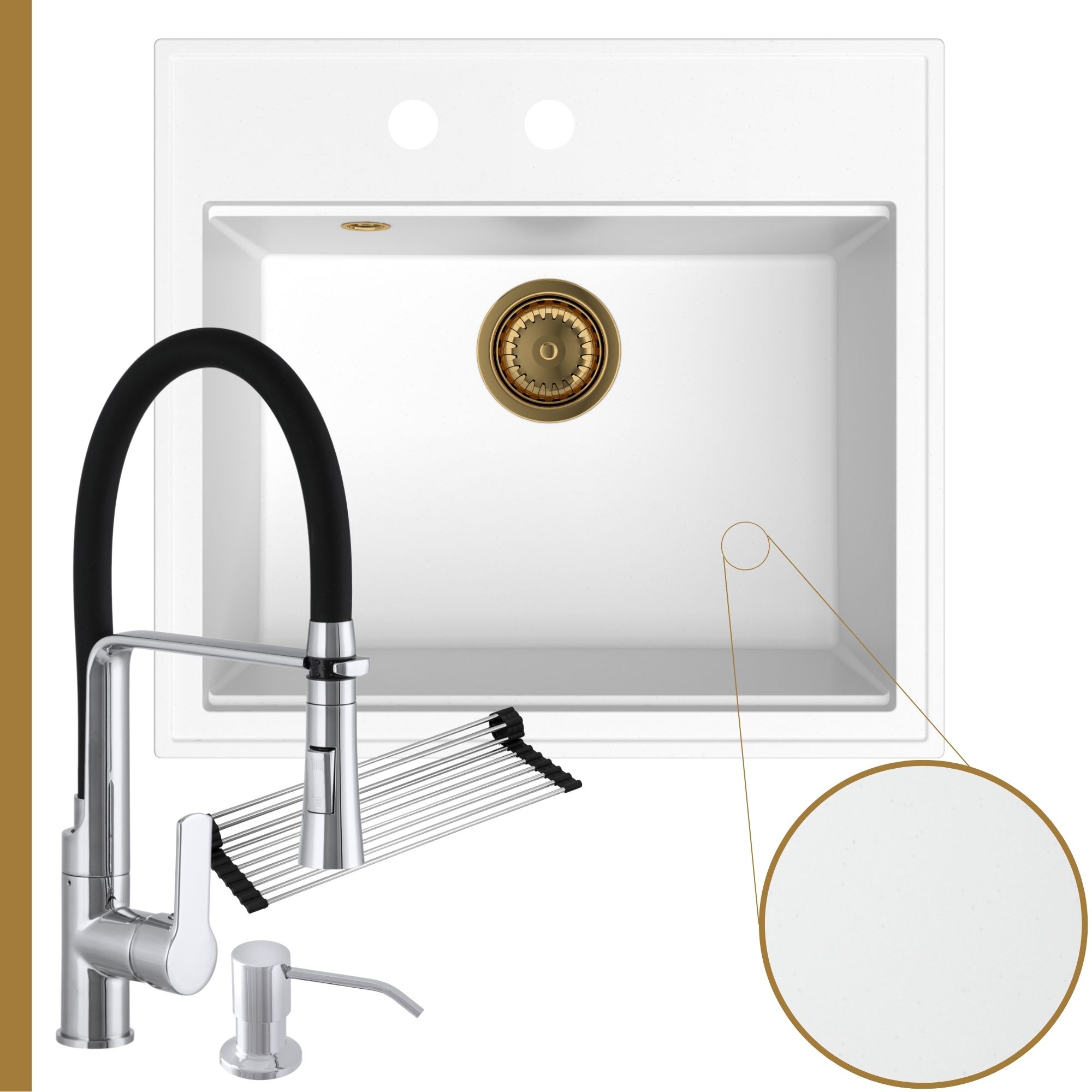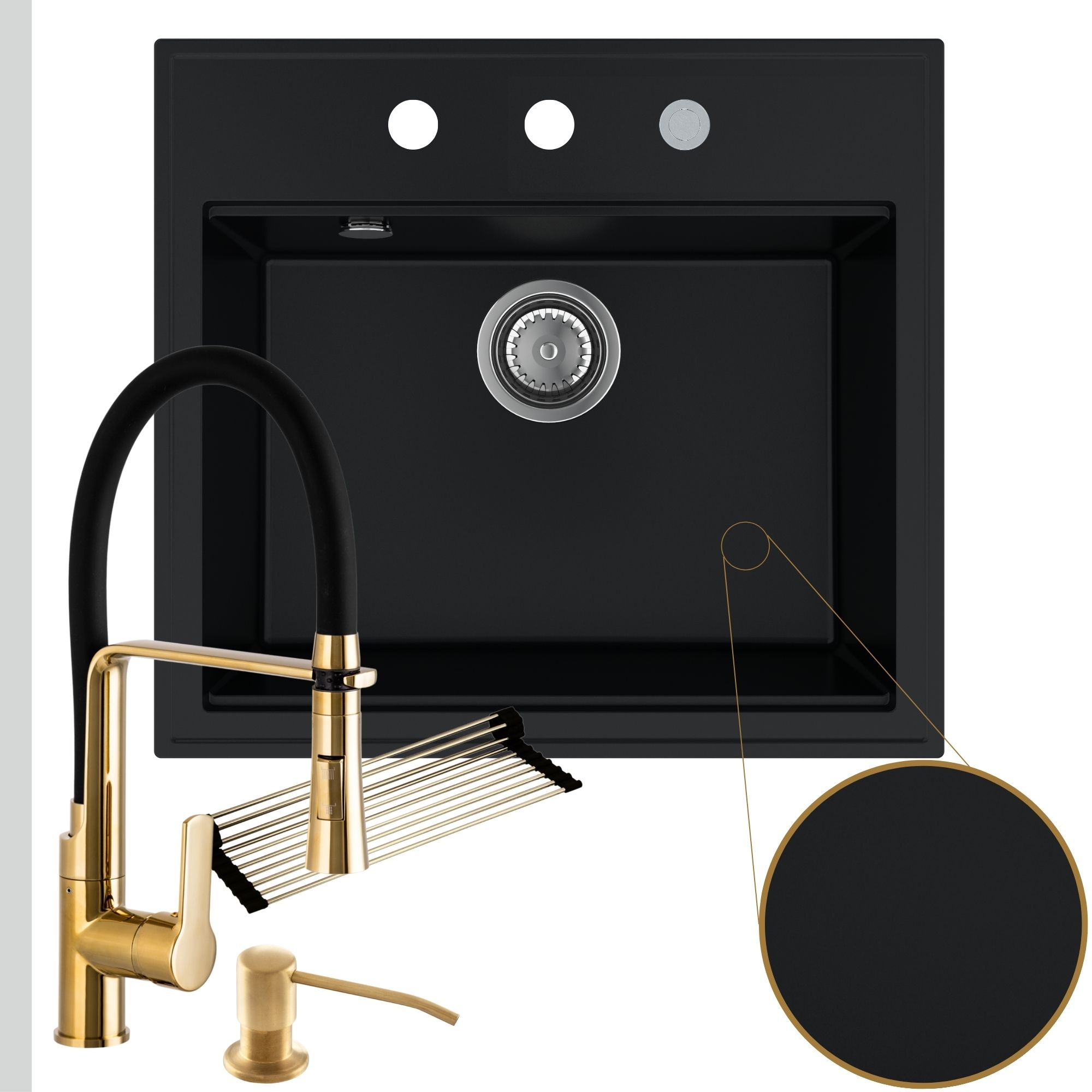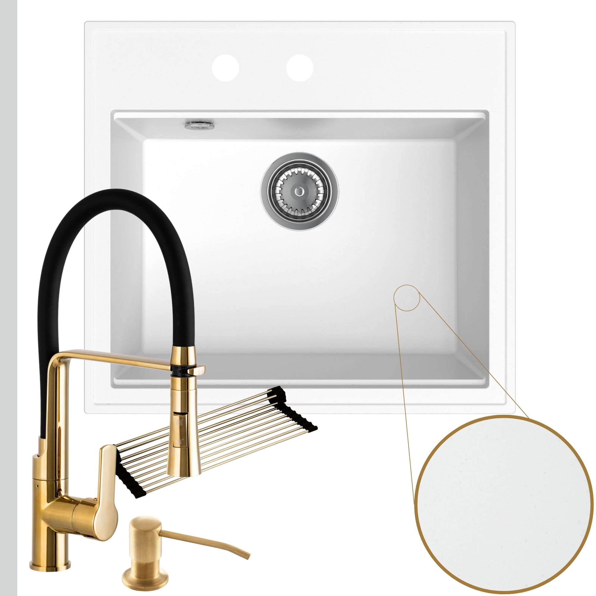 Praktyczna kuchnia: zlew + bateria + dozownik + syfon + mata