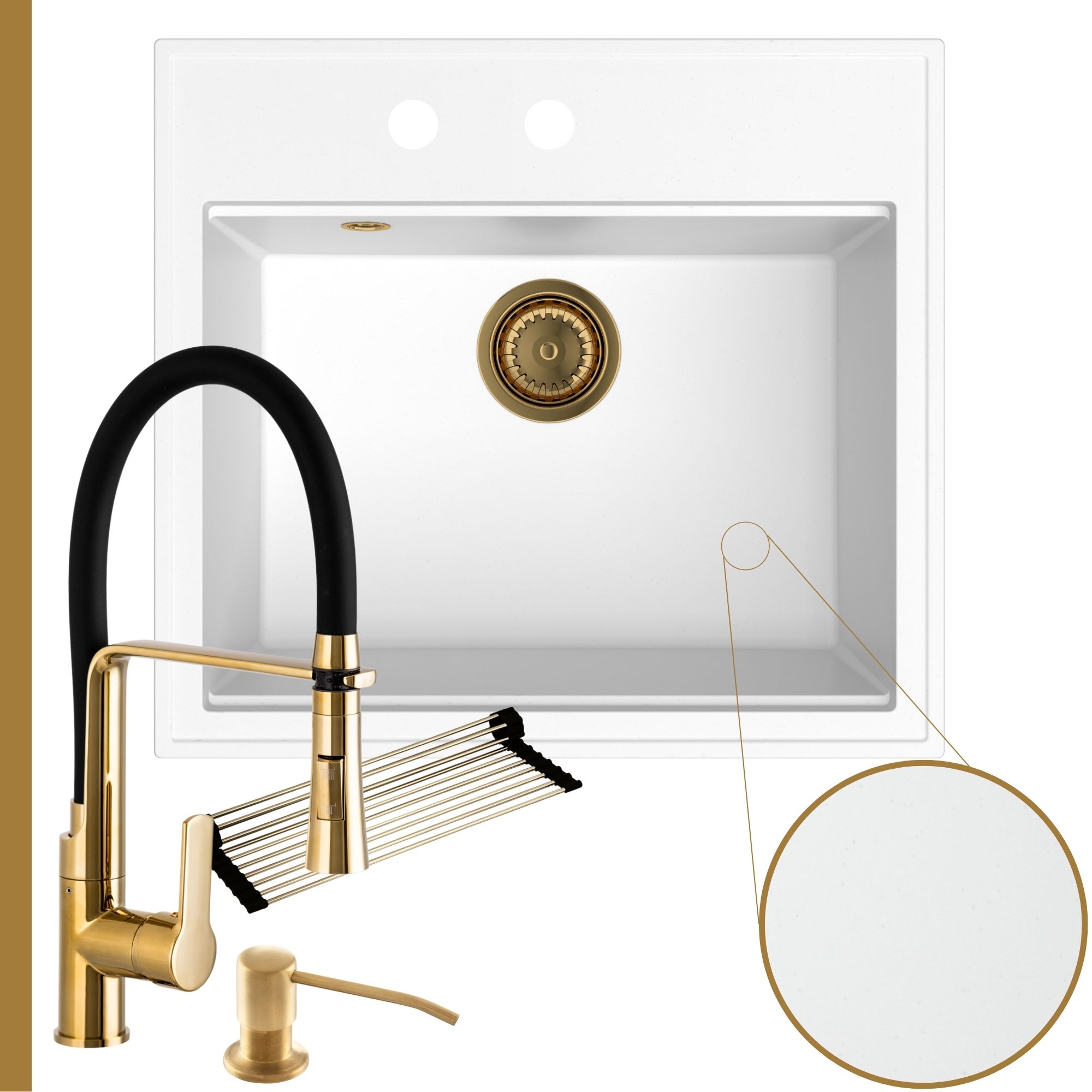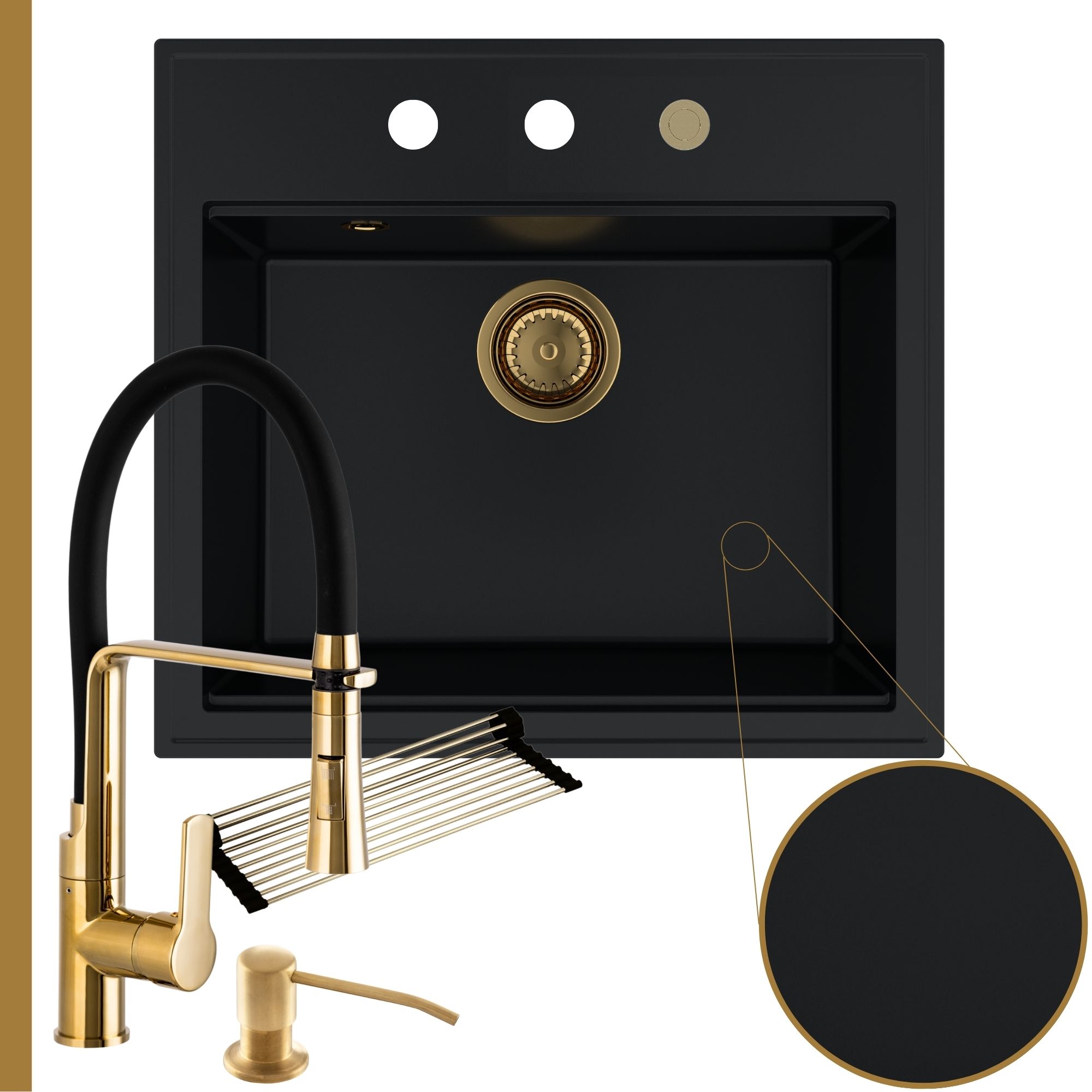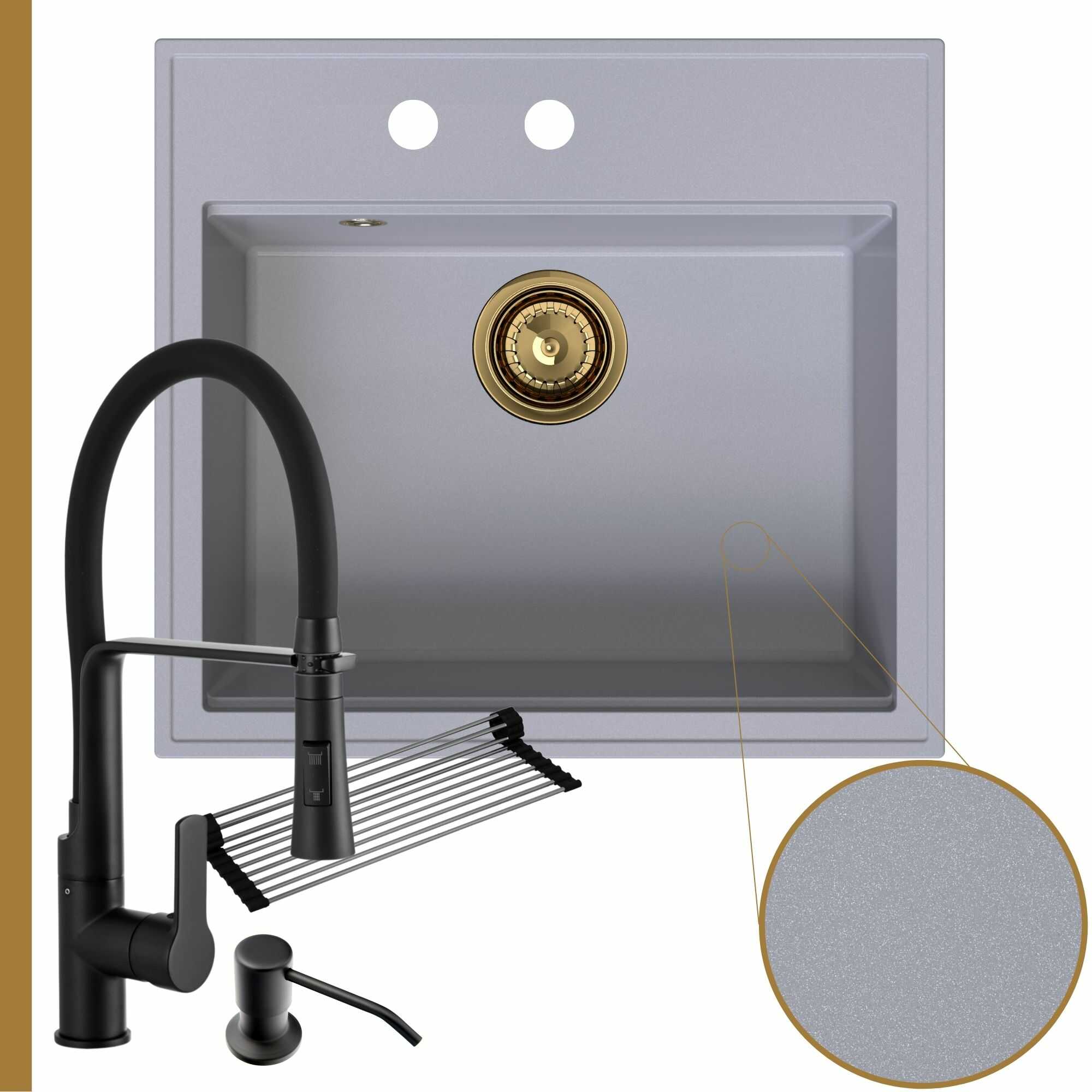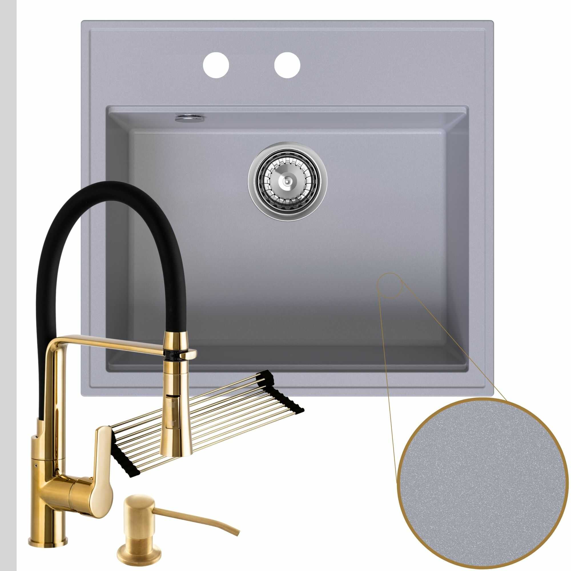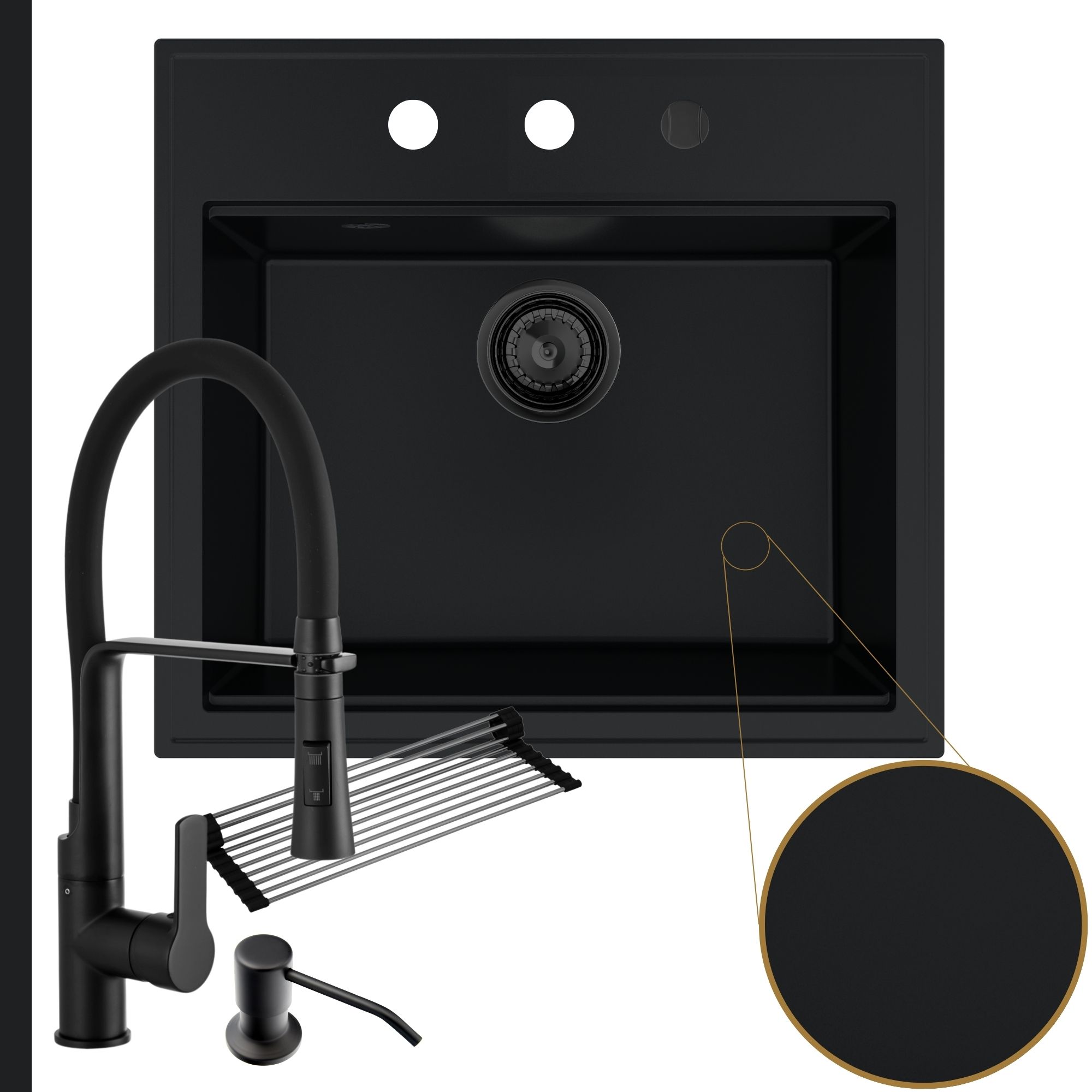 Praktyczna kuchnia: zlew + bateria + dozownik + syfon + mata