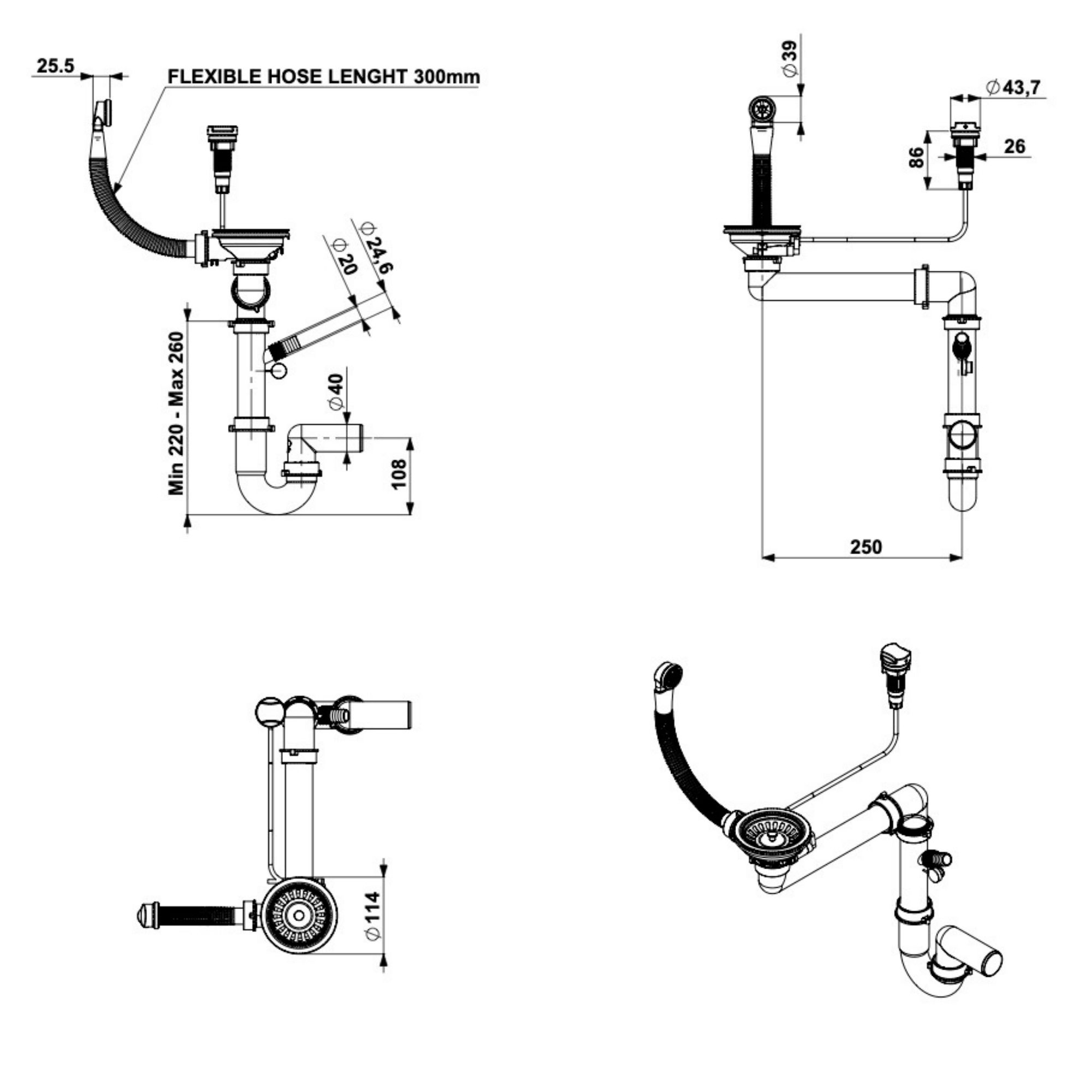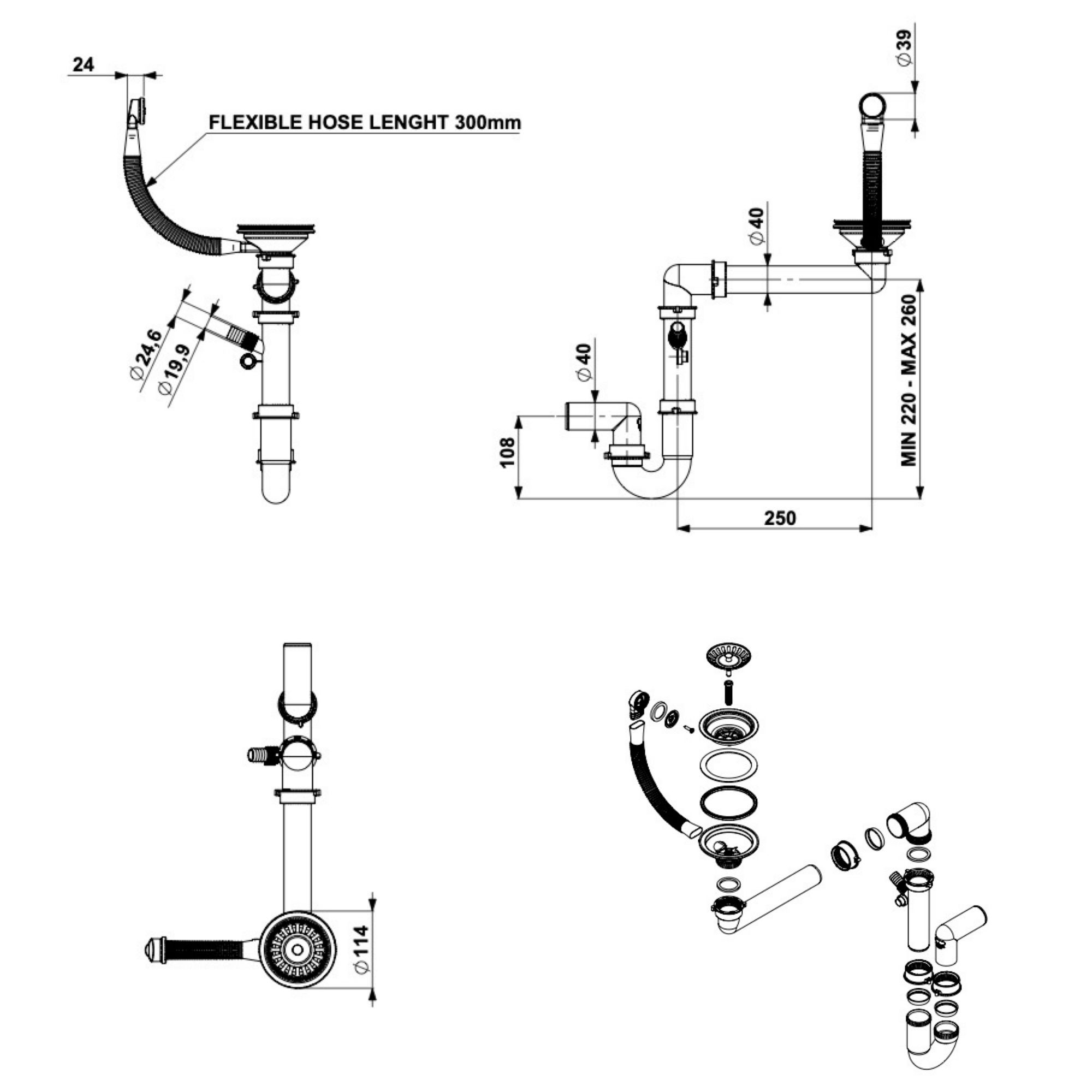 - Konstrukcja w kształcie U - pomaga uniknąć wydobywania się nieprzyjemnych zapachów z odpływu