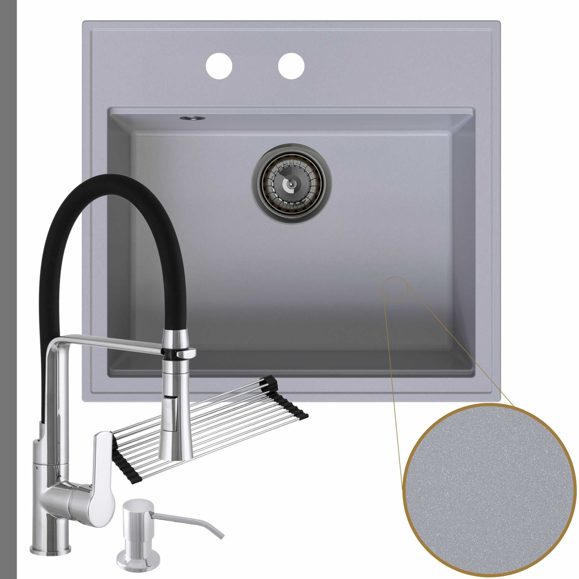 - Otrzymaj gratisy: impregnat do zlewu, który minimalizuje powstawanie zacieków i rolowana ociekarka w kolorze srebrnym przedłużająca blat roboczy.