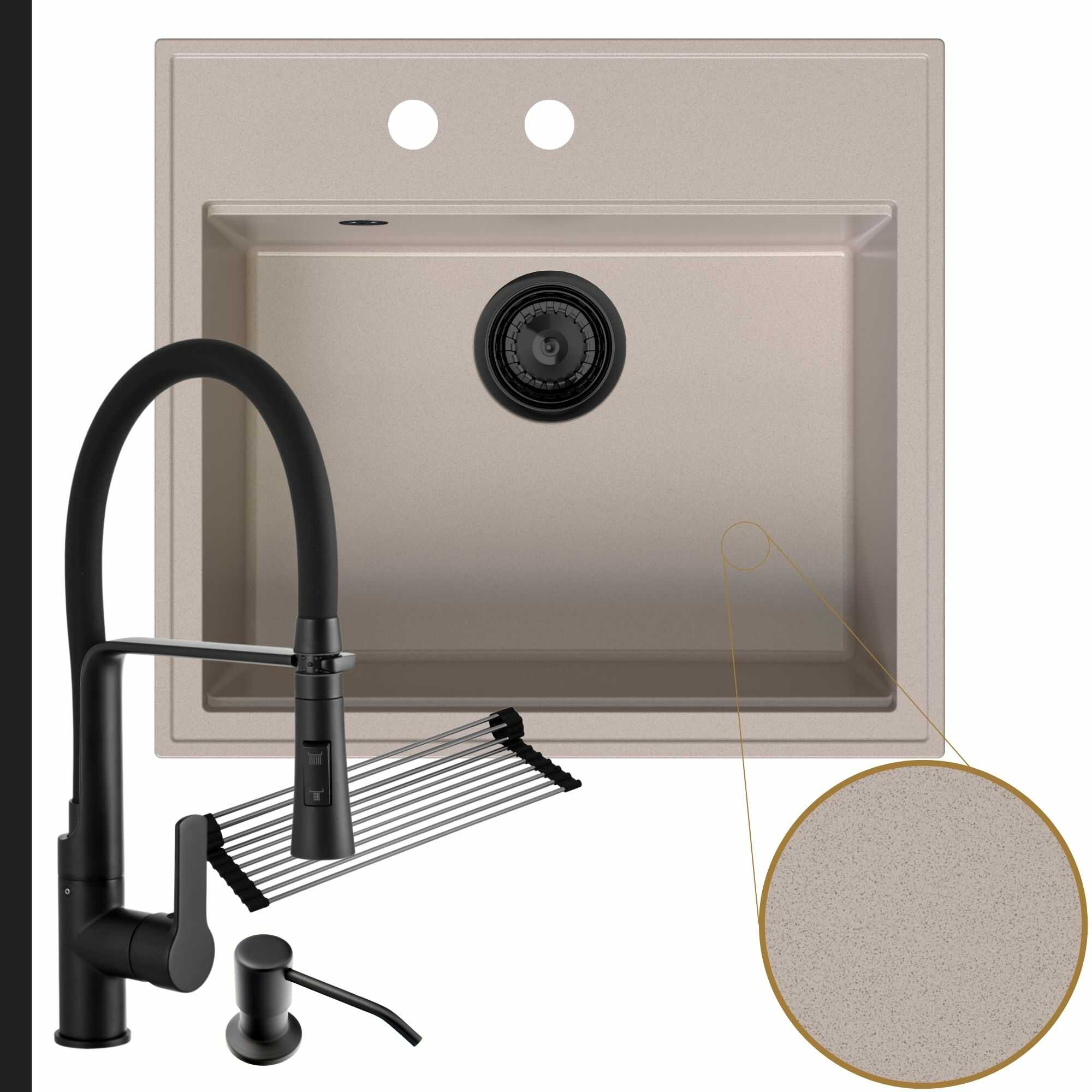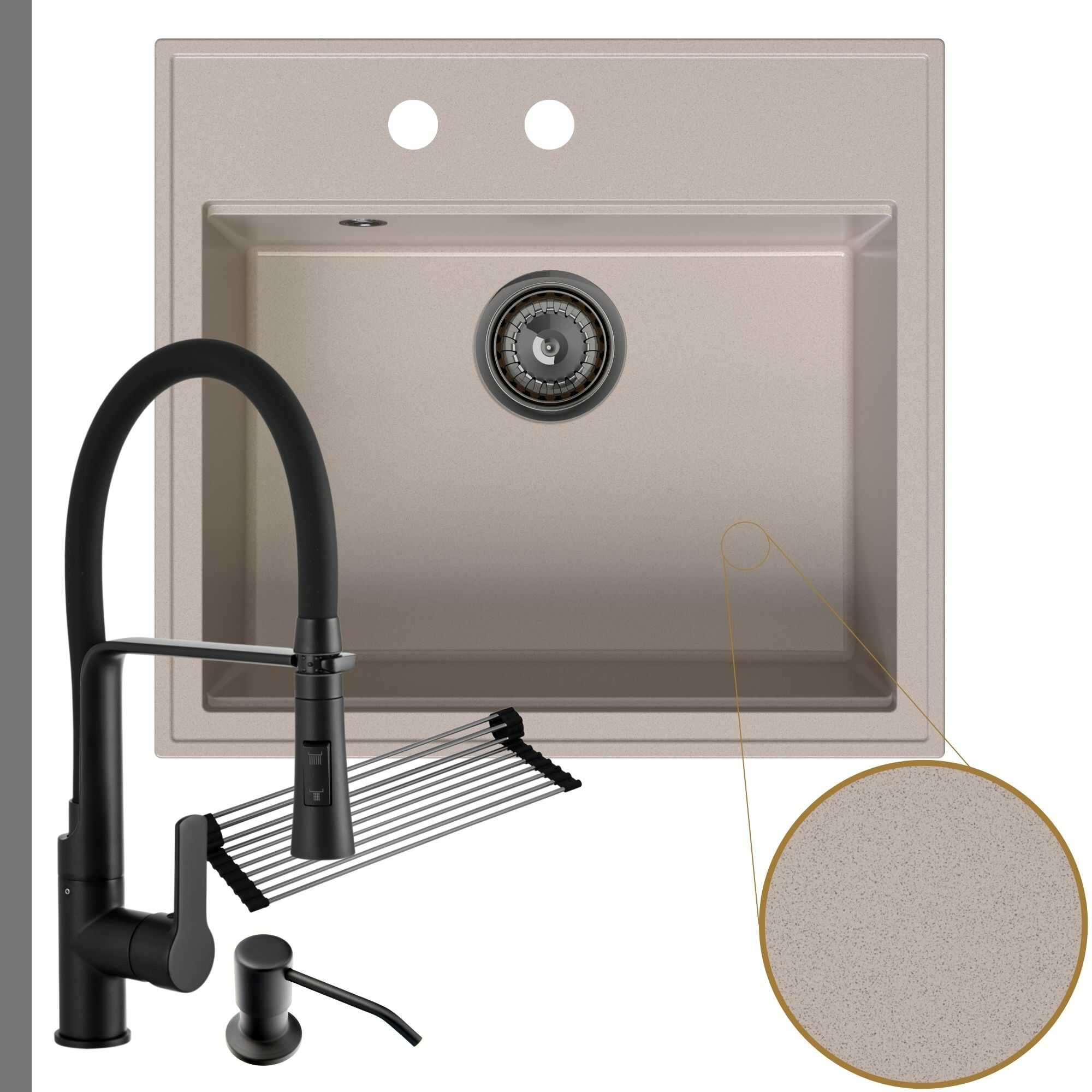 | Materiał zlewu | 80% kruszywo granitowe, 20% żywica |