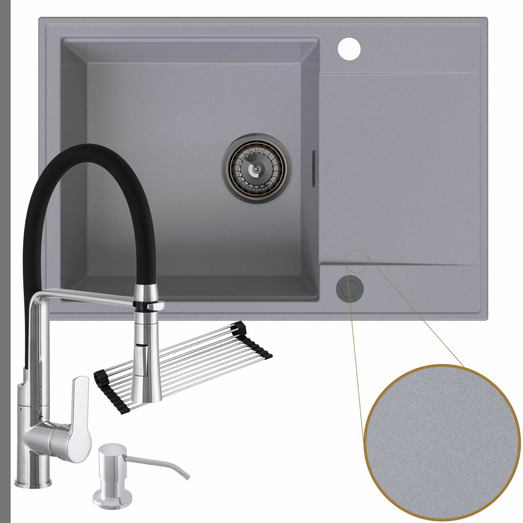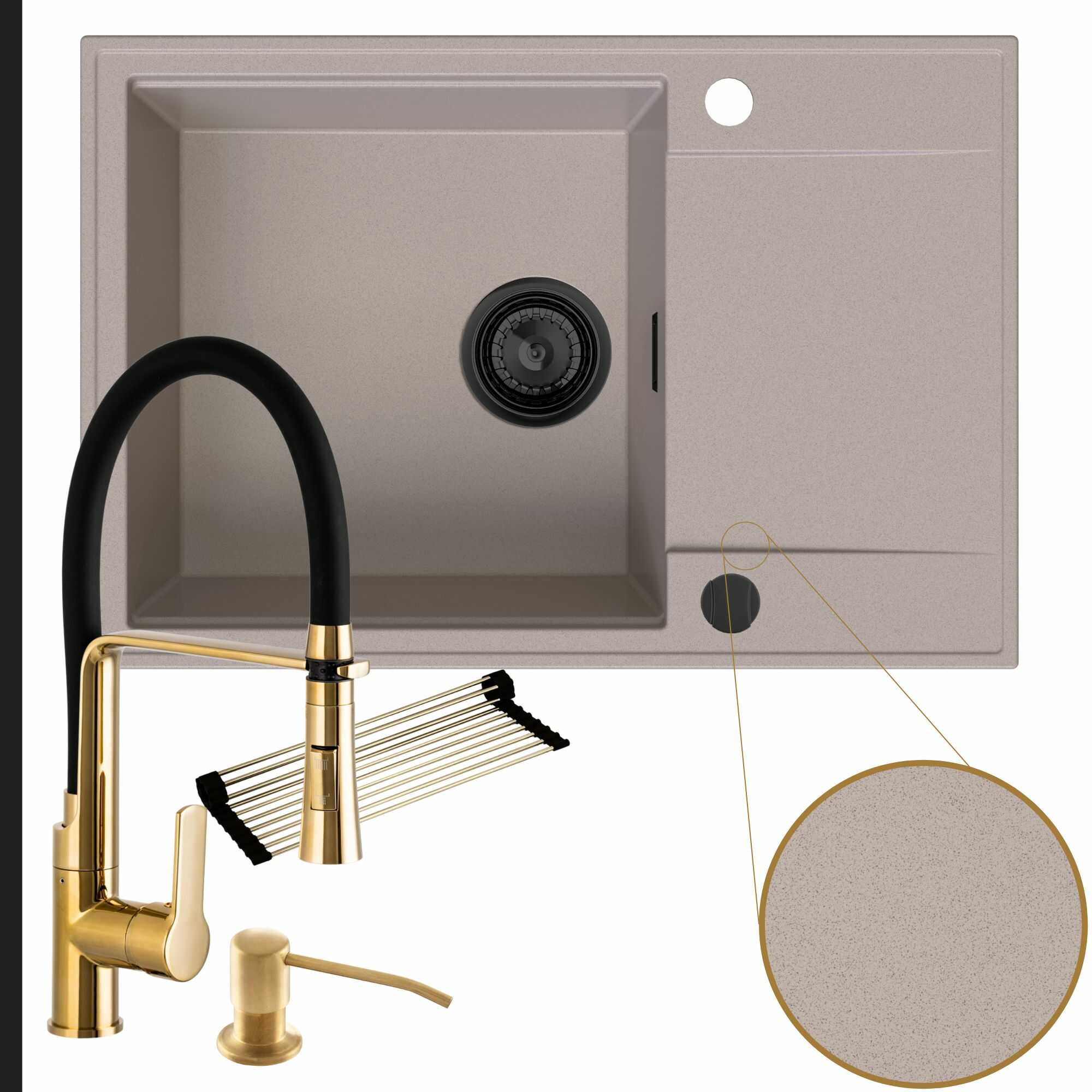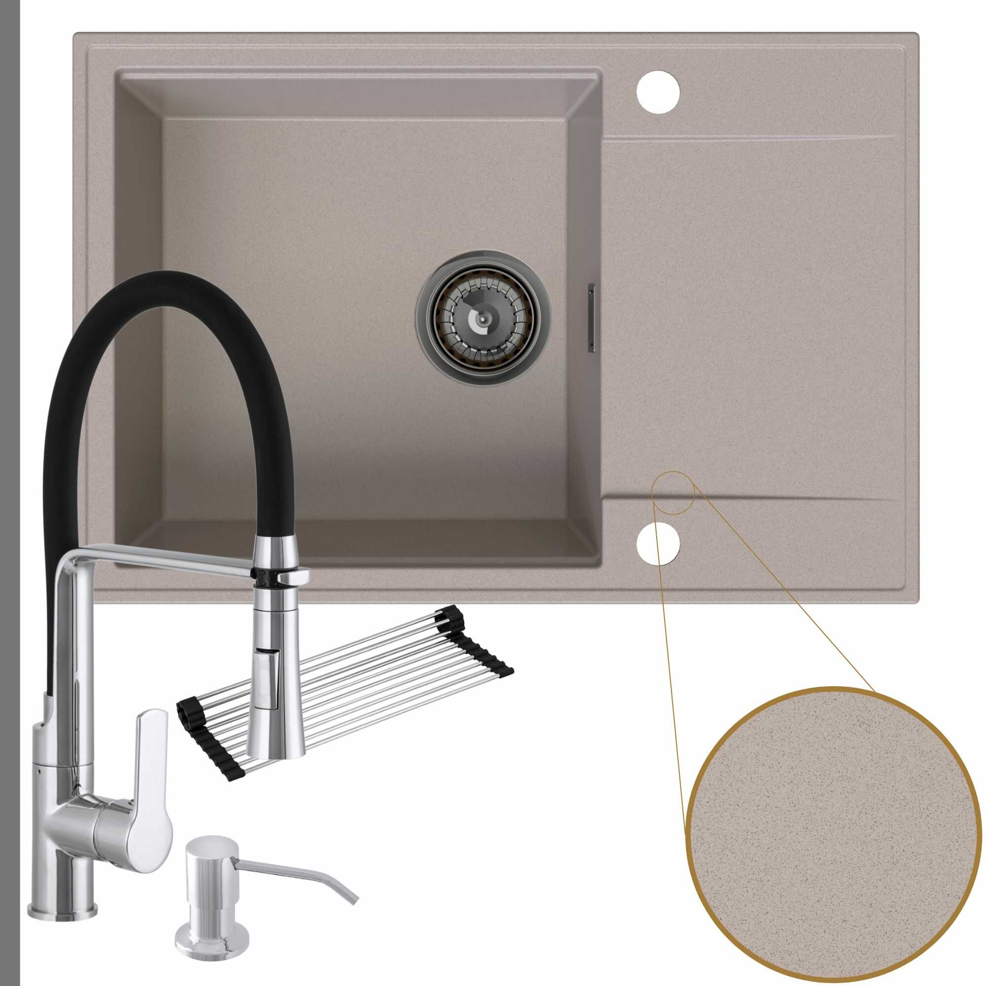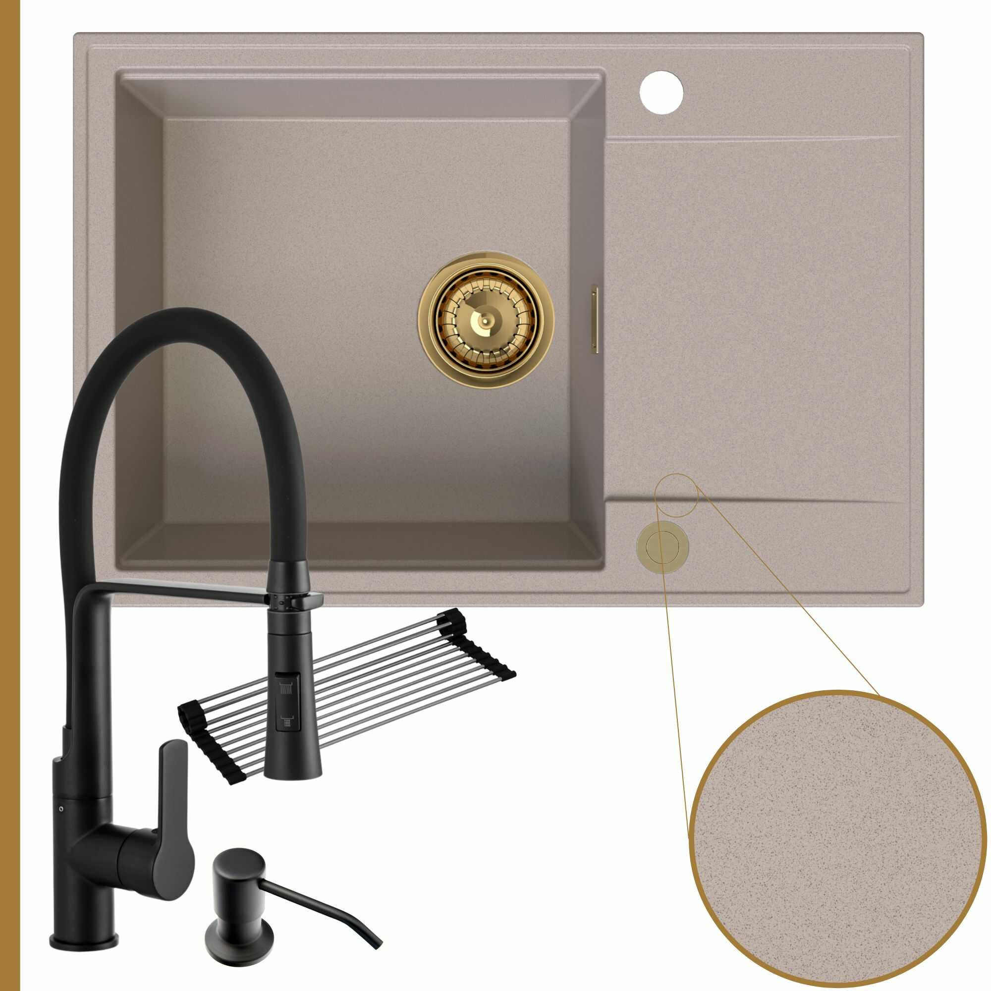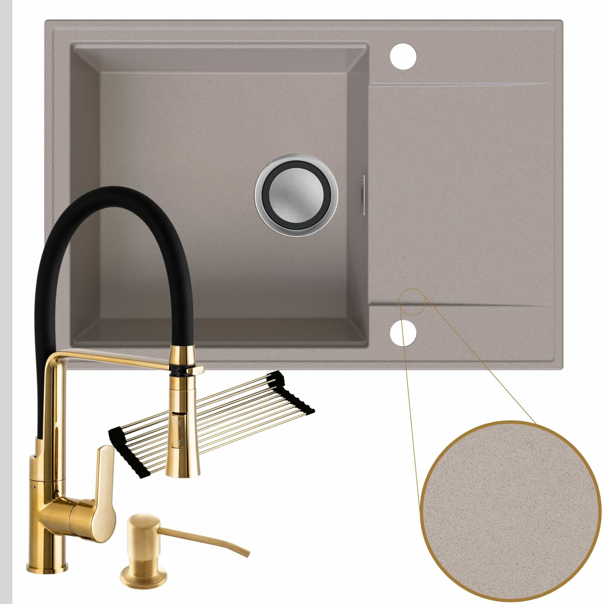 Przestronna kuchnia: zlew + bateria + dozownik + syfon + mata