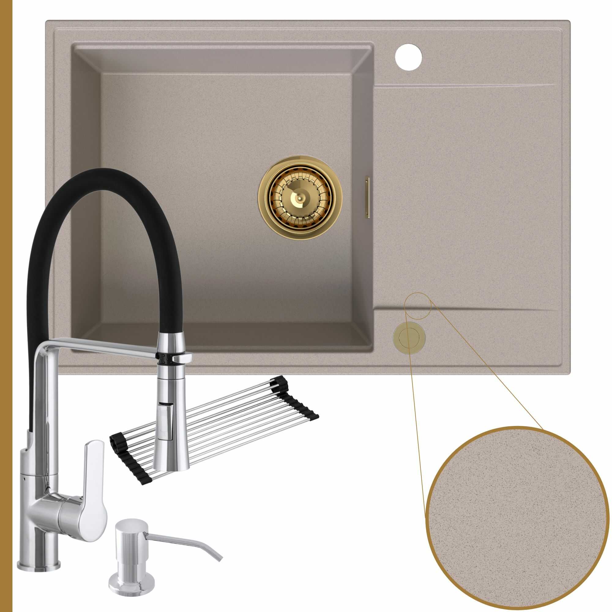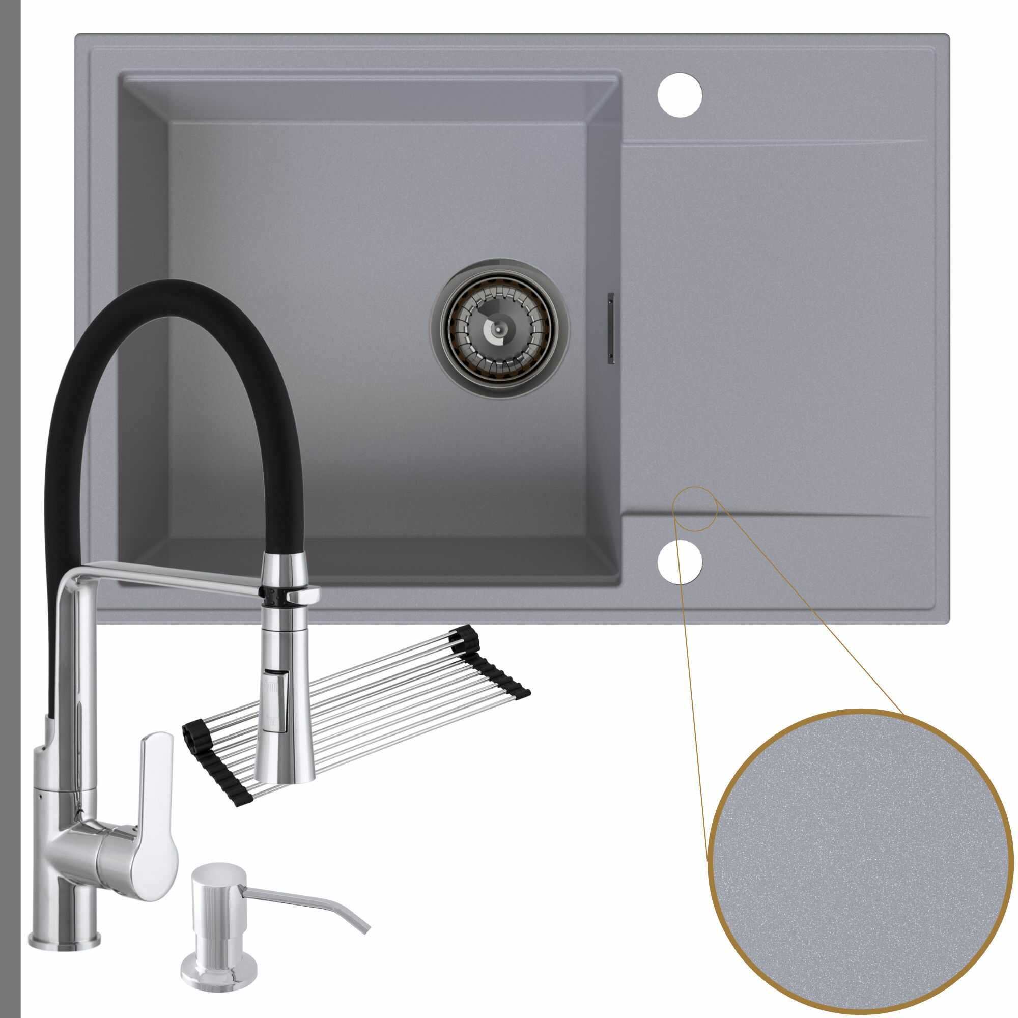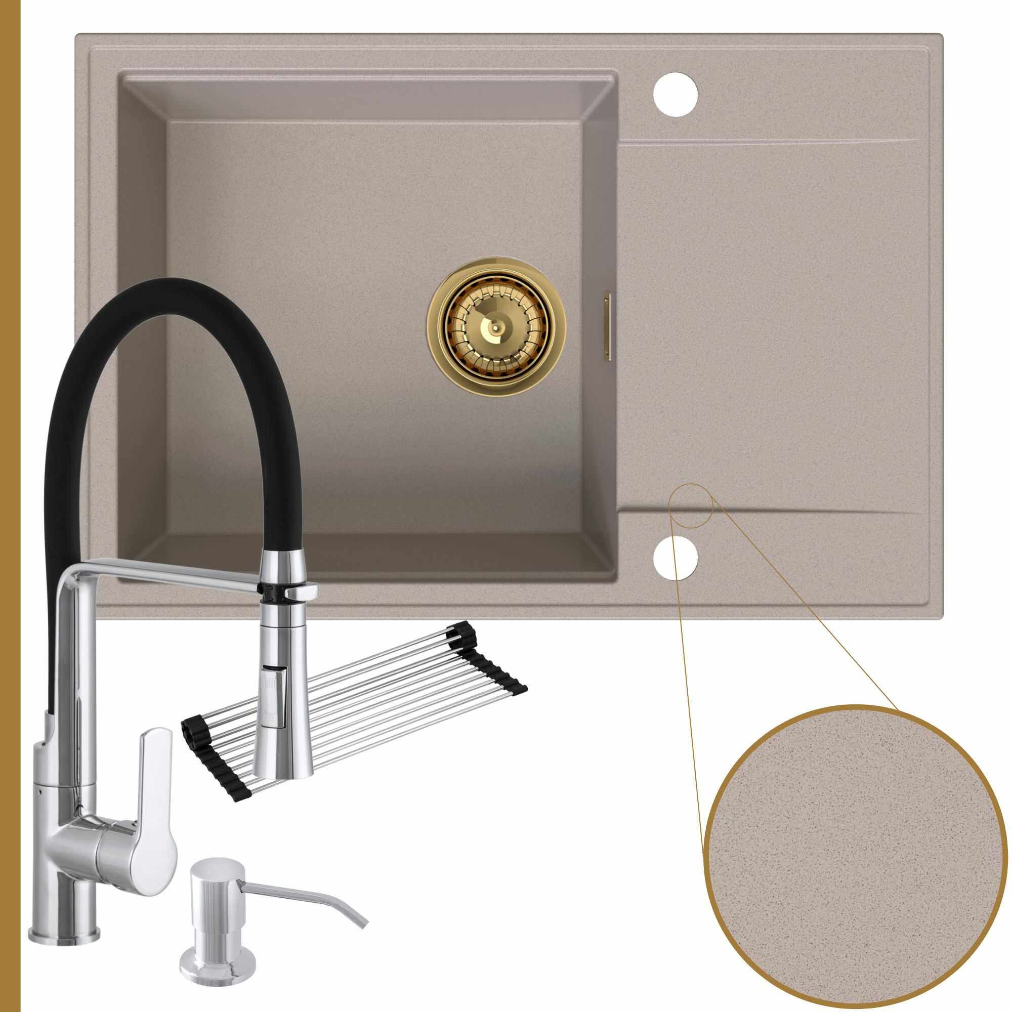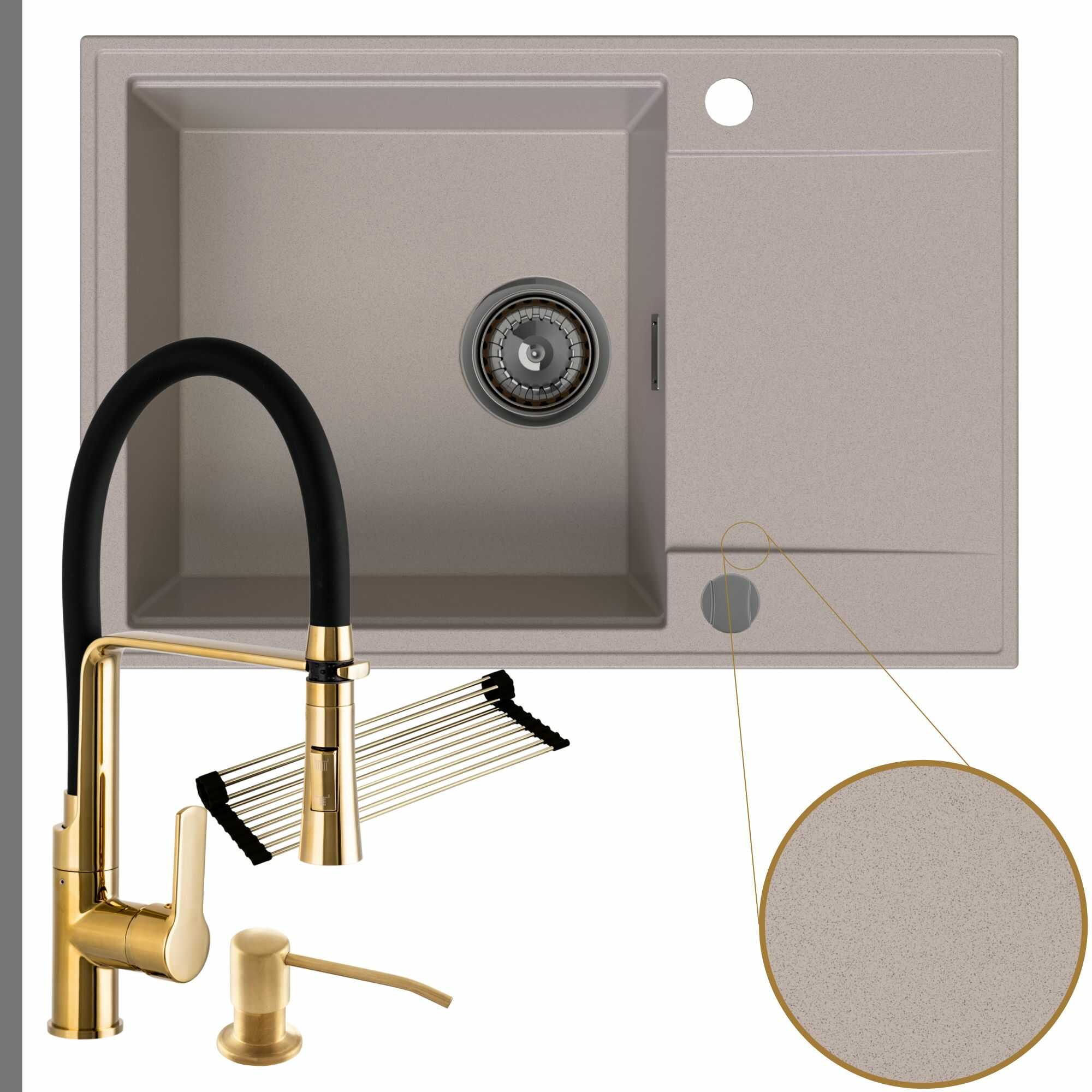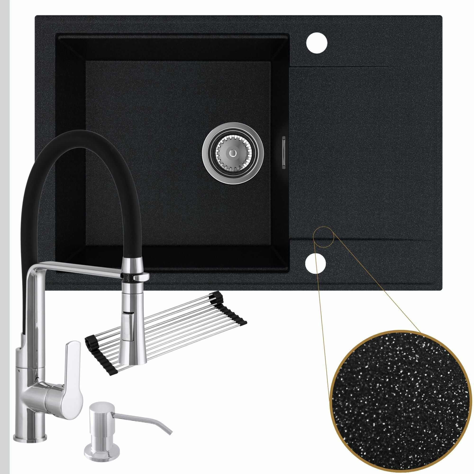 Przestronna kuchnia: zlew + bateria + dozownik + syfon + mata
