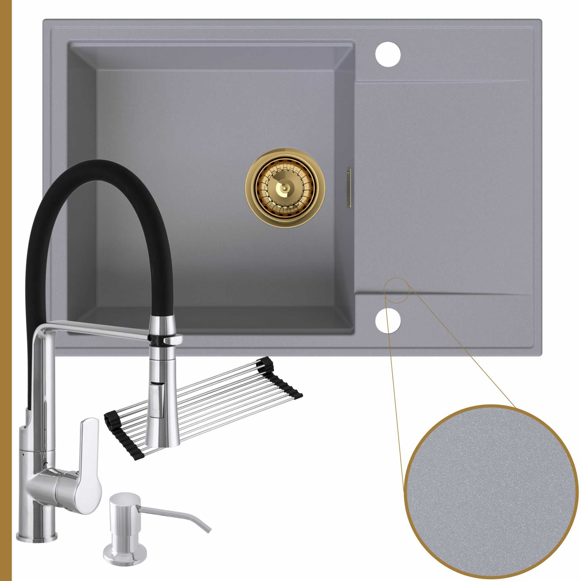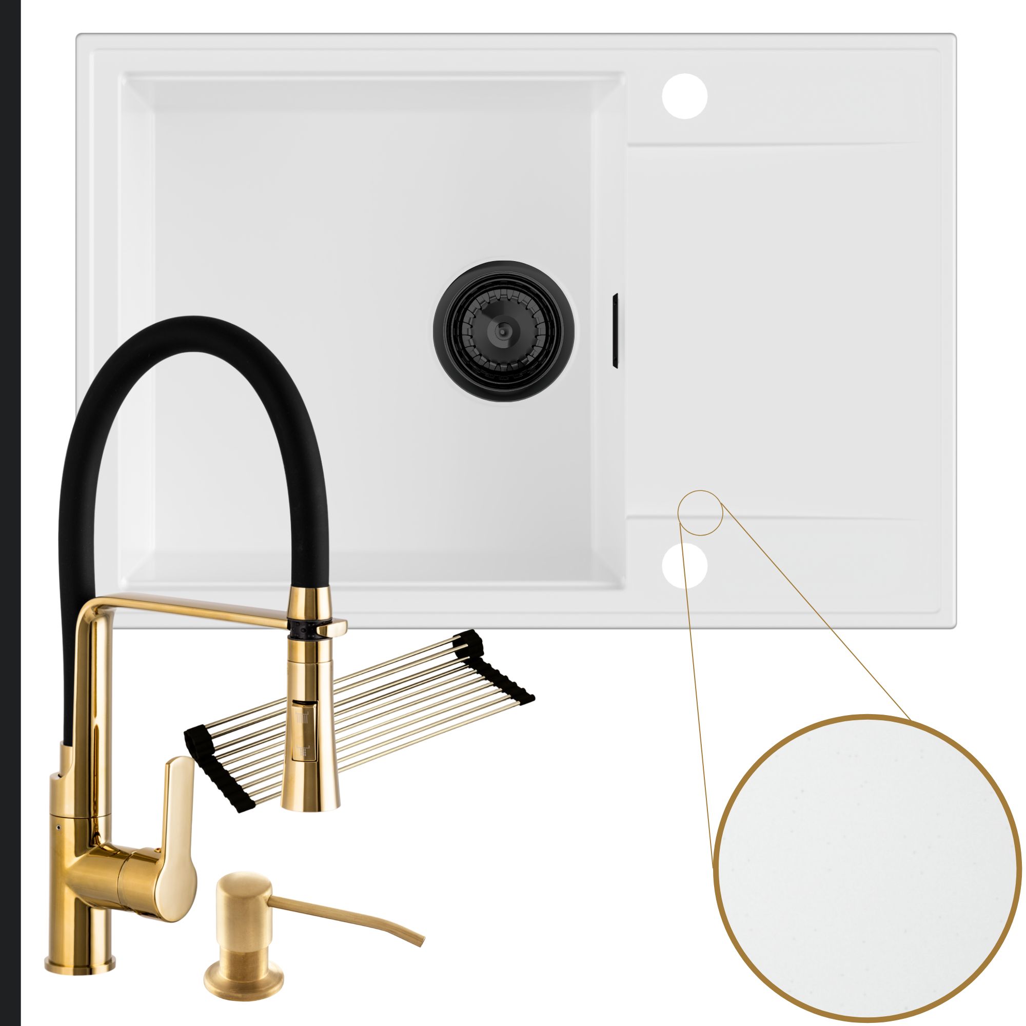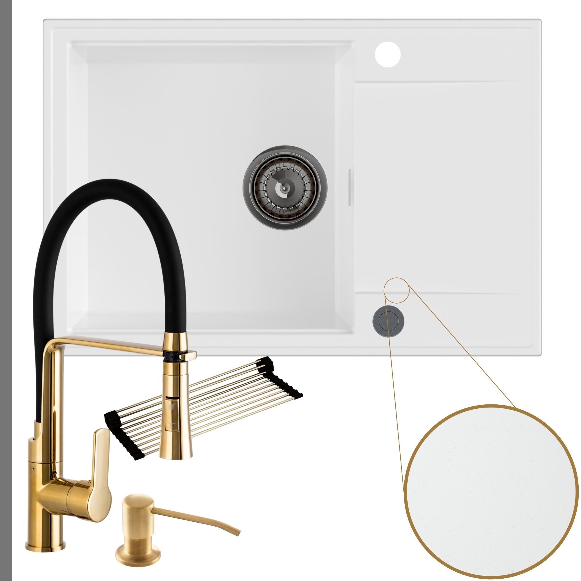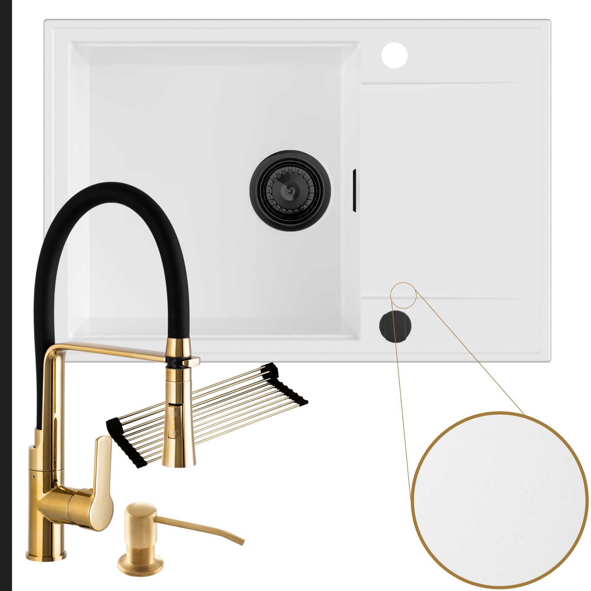 - Wybierz: jeden z siedmiu kolorów zlewu, dobierz jeden z dziesięciu syfonów i jeden z trzech kolorów zestawu bateria + dozownik